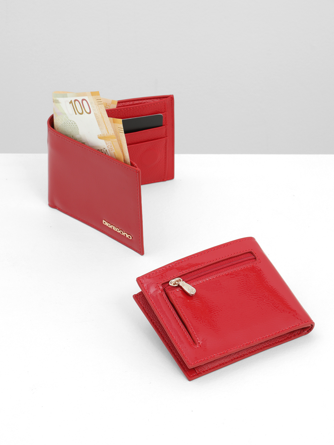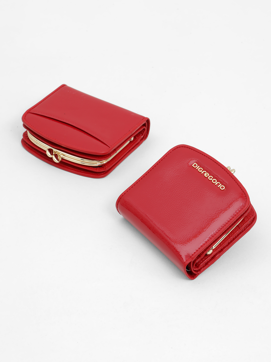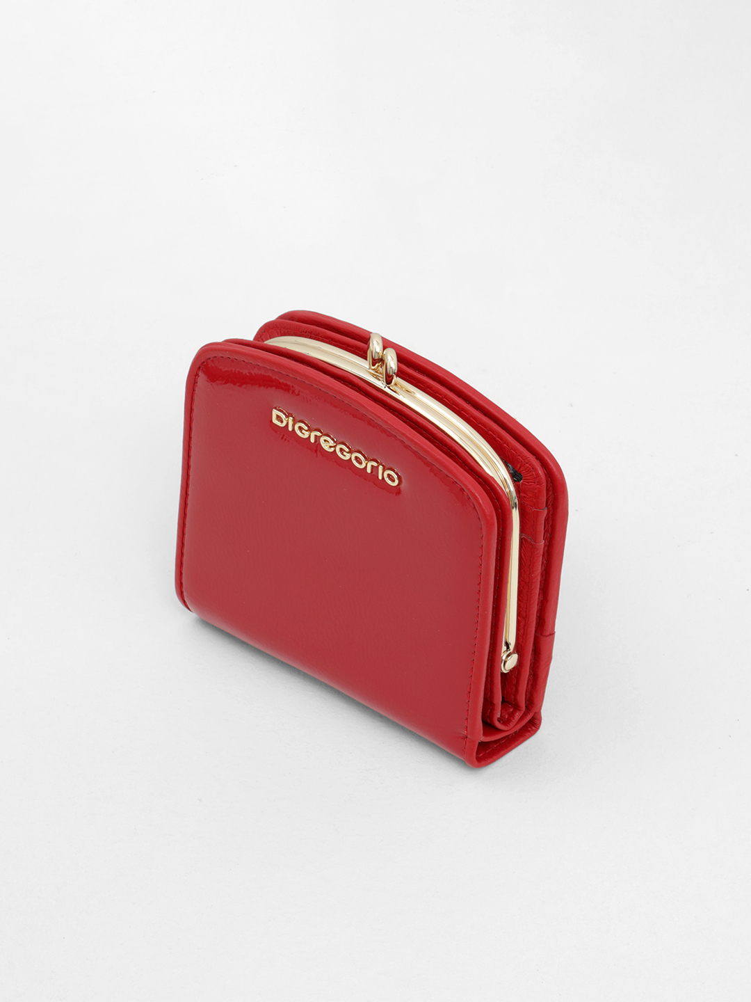 Полукруглый кошелёк среднего размера с фермуаром из лаковой кожи красного цвета от Di Gregorio