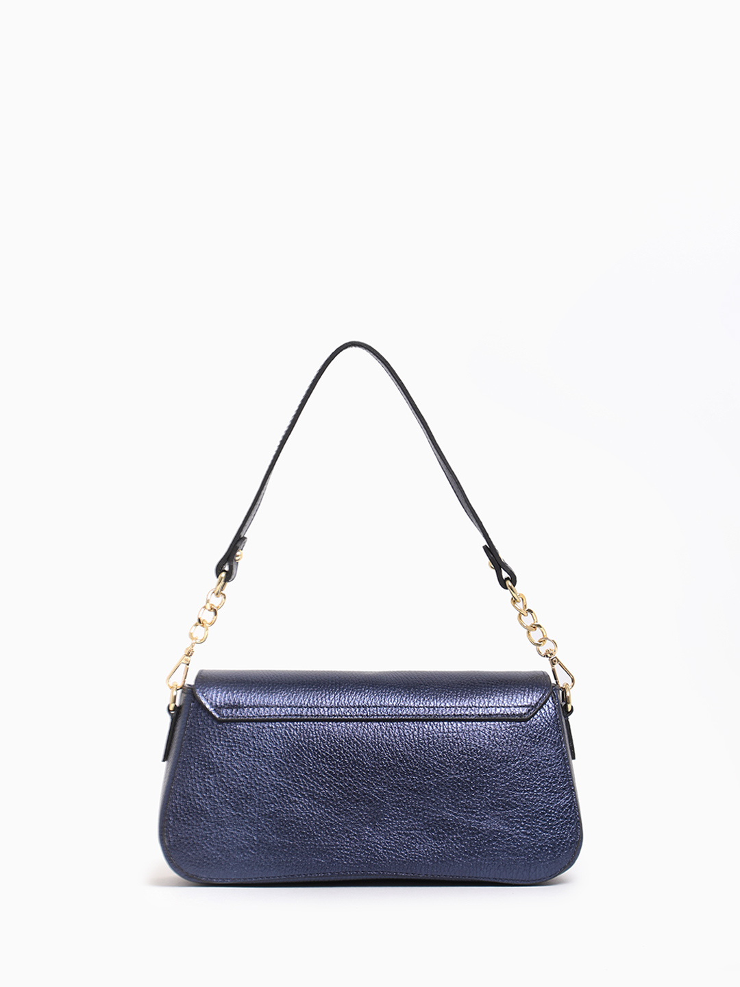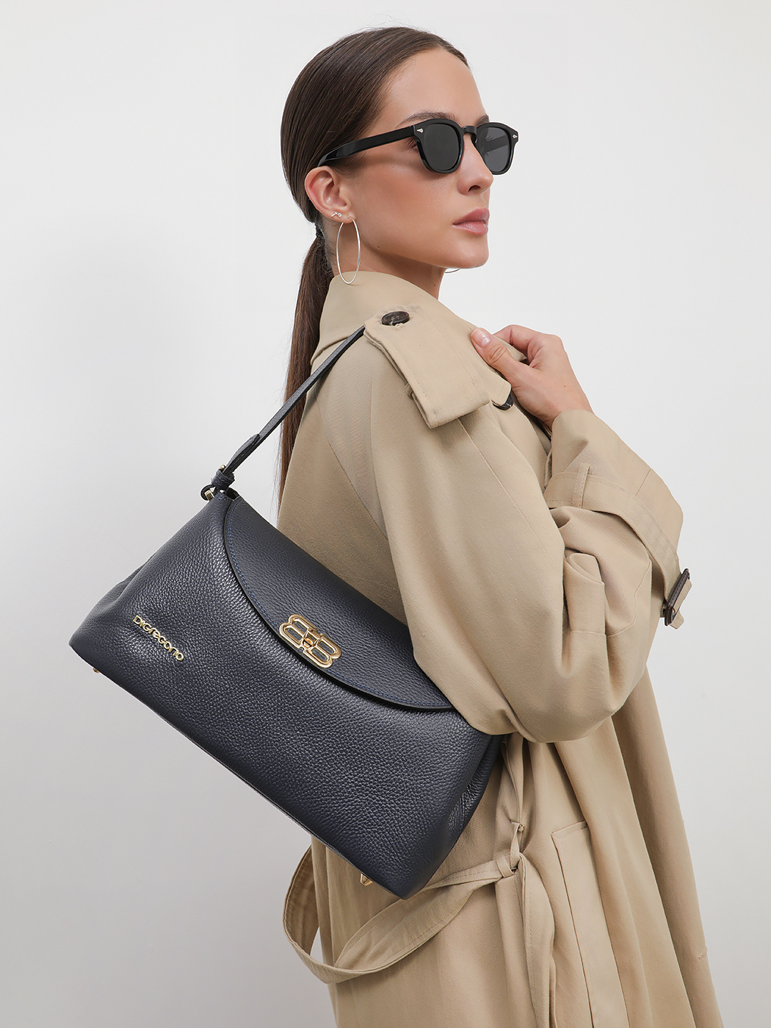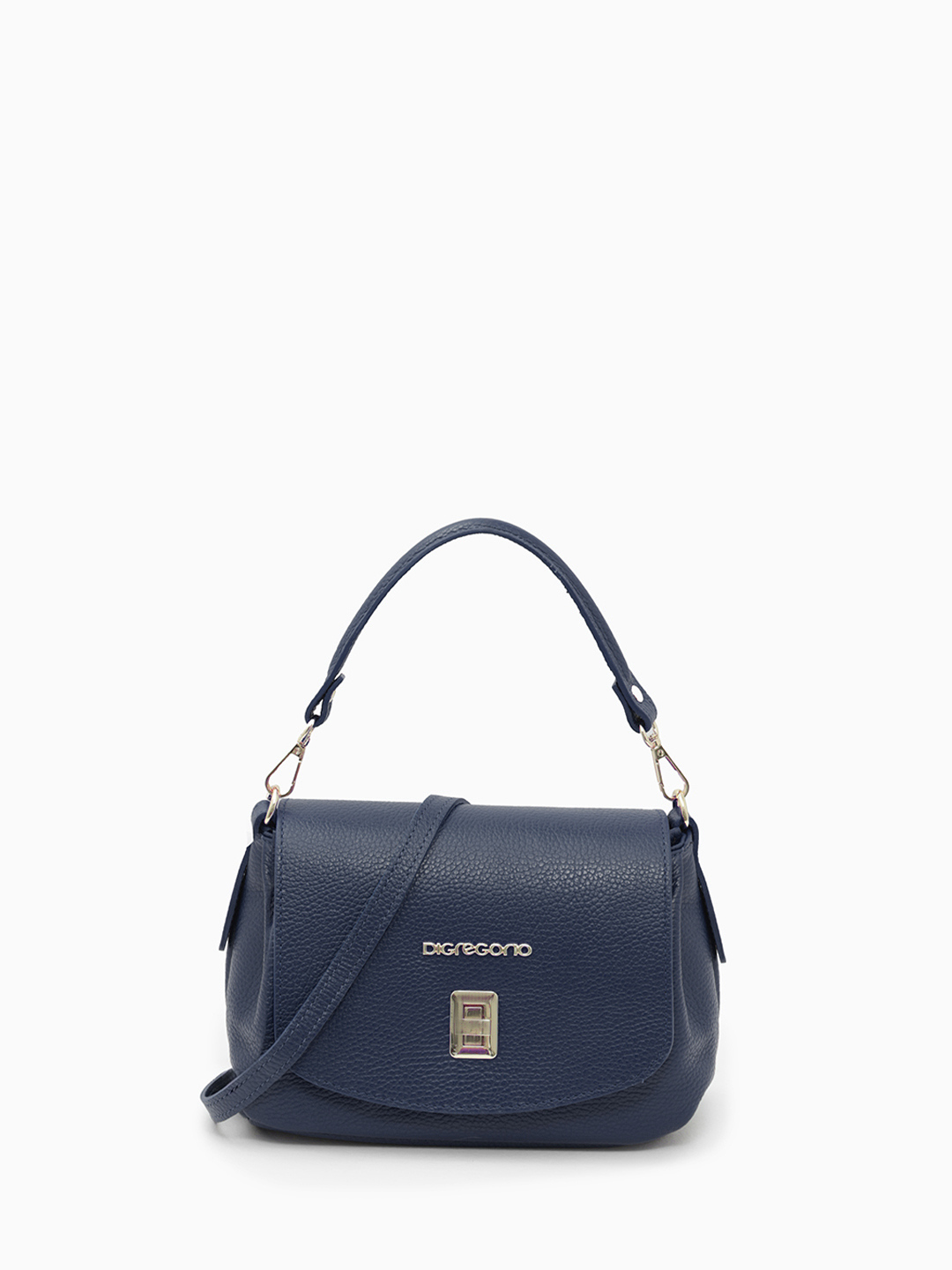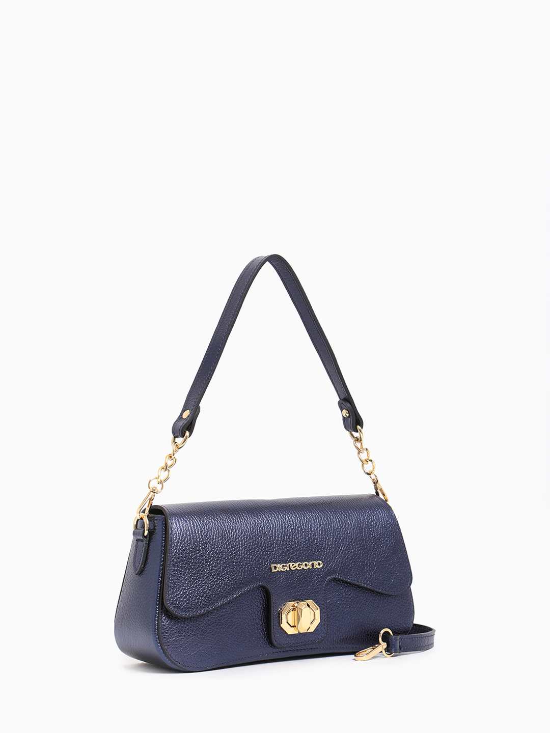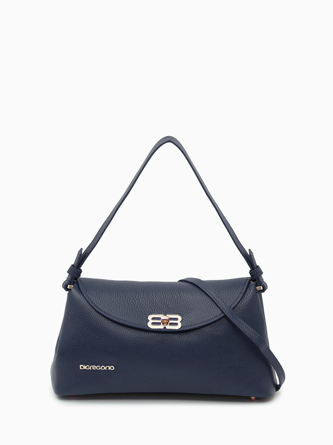 Сумка-багет с изогнутым клапаном и золотистым замком от Di Gregorio в синем цвете