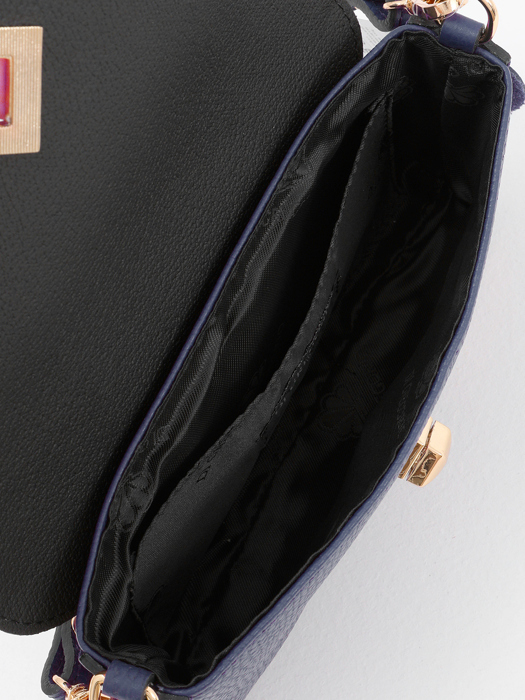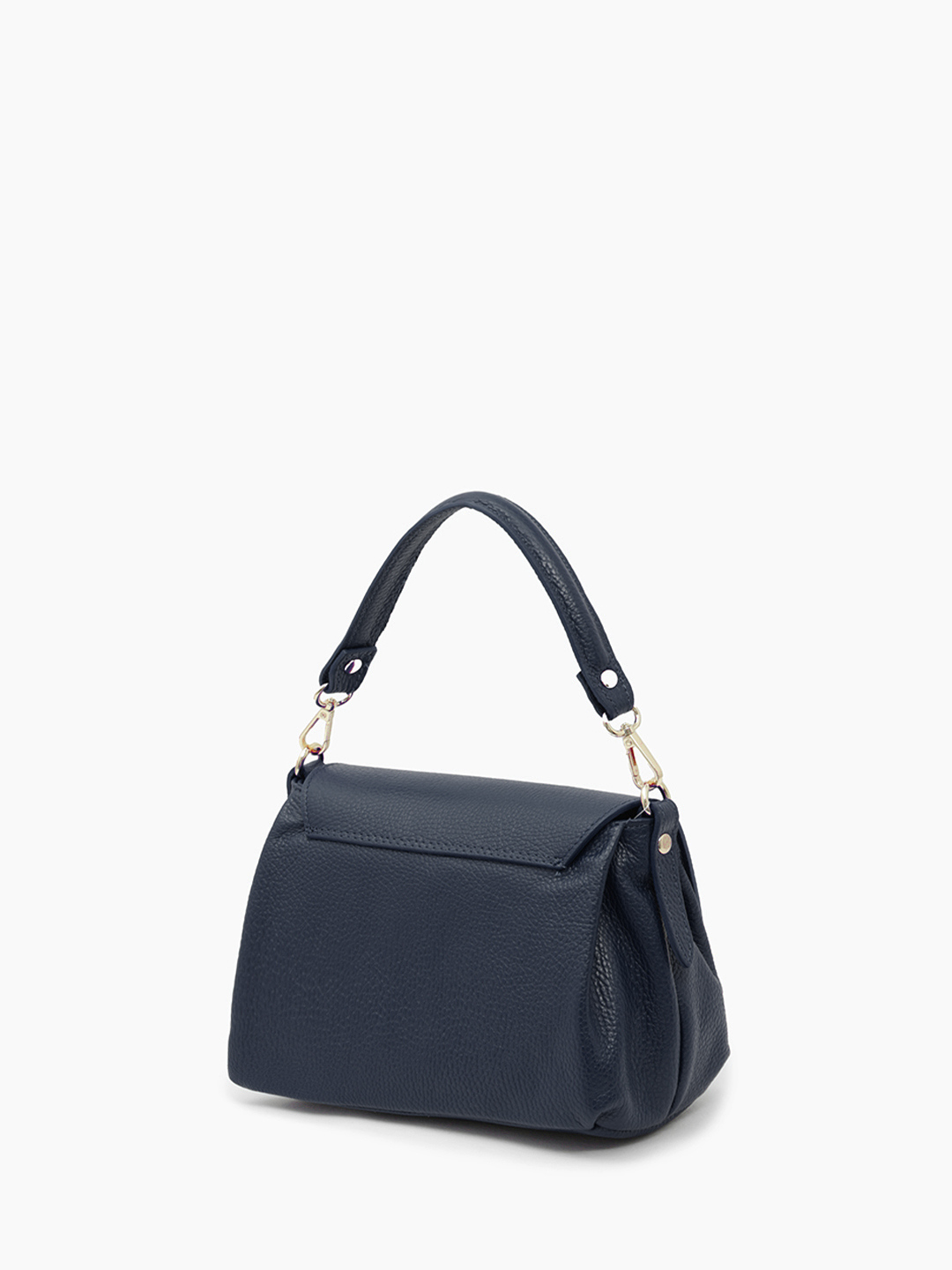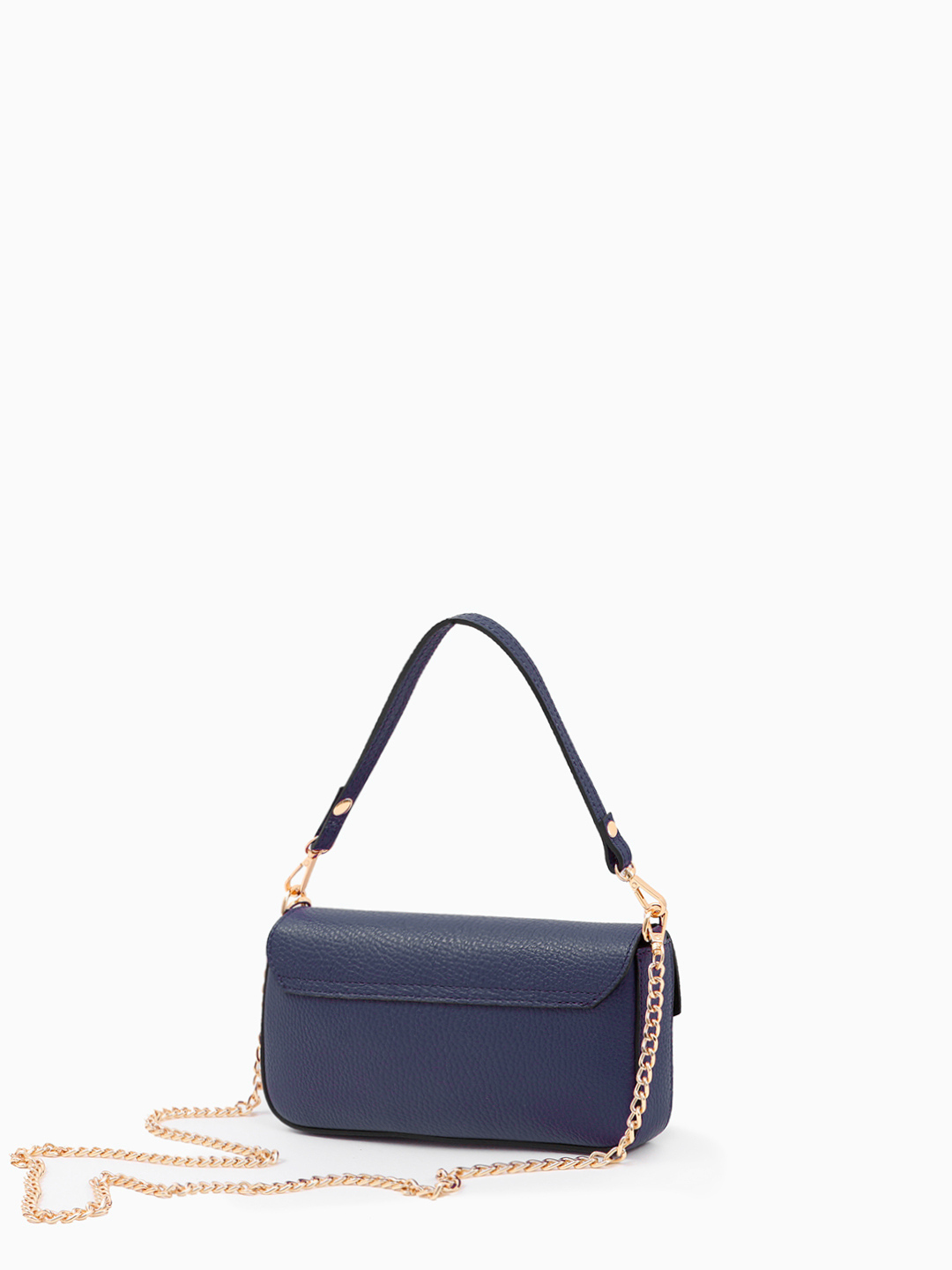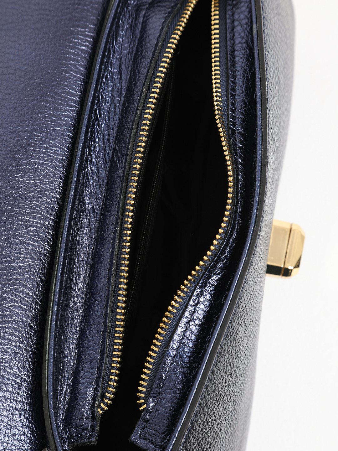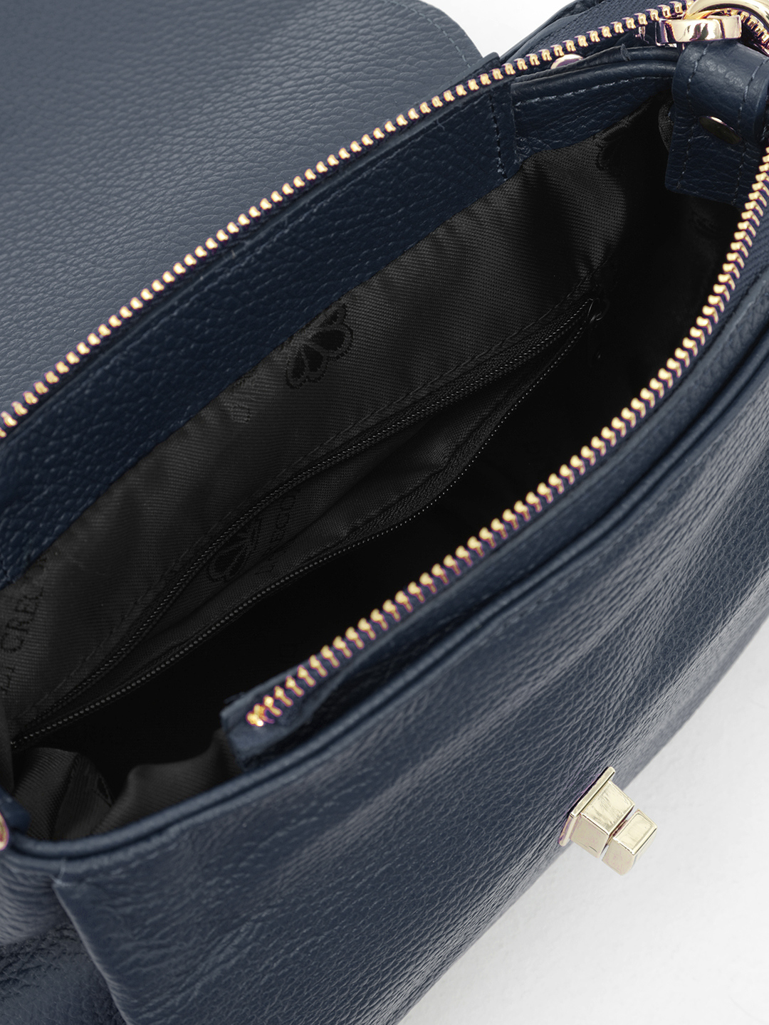 Сумка-багет с изогнутым клапаном и золотистым замком от Di Gregorio в синем цвете