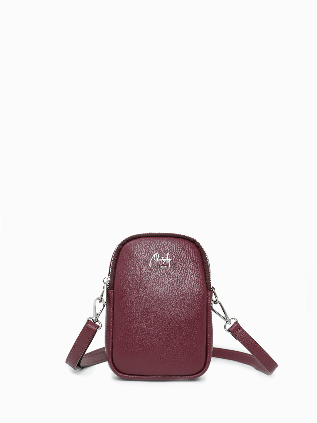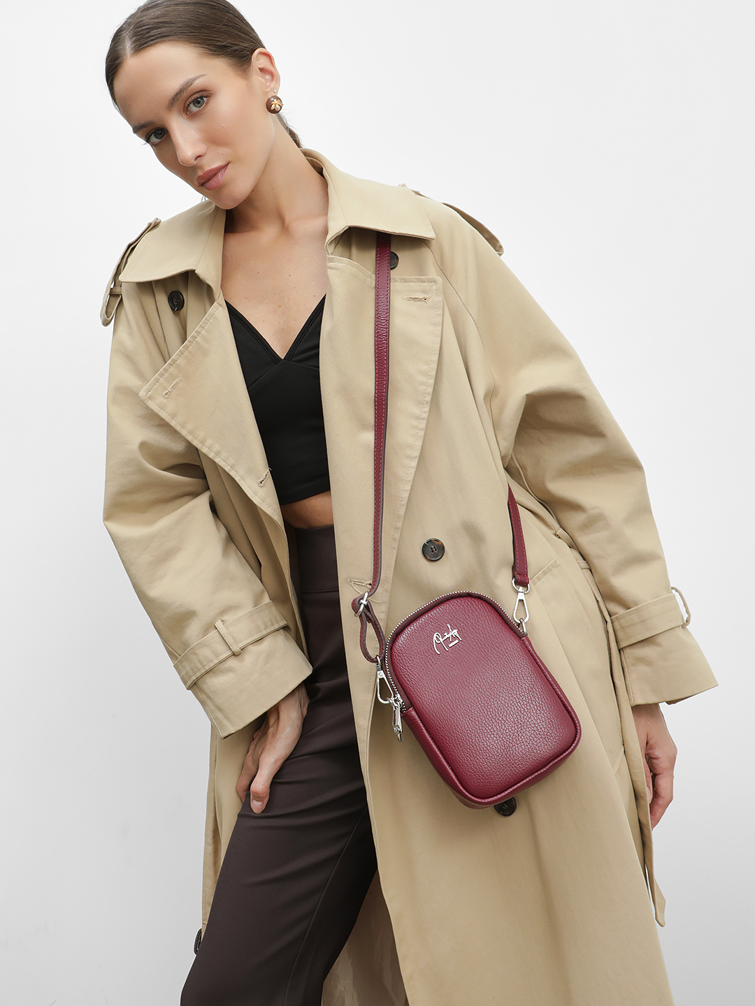 Мини-сумка для телефона с двумя отделениями на молнии от Renato Angi бордового цвета