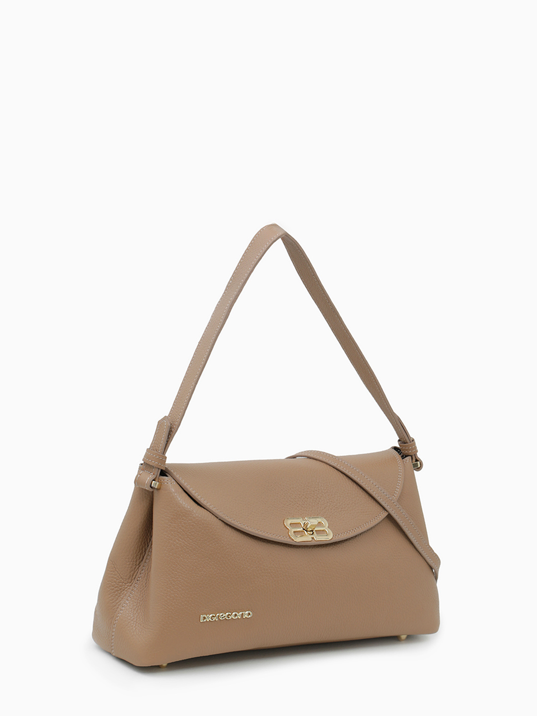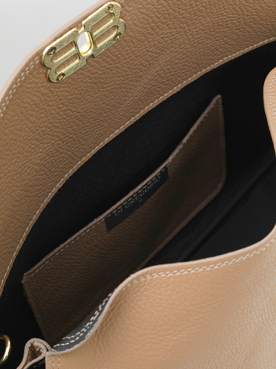 Сэтчел с декоративной пряжкой от Di Gregorio в бежевом оттенке
