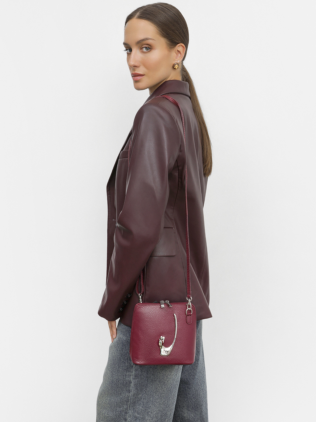 Однорукий сэтчел от Renato Angi с овальной фурнитурой с гравировкой в бордовом цвете