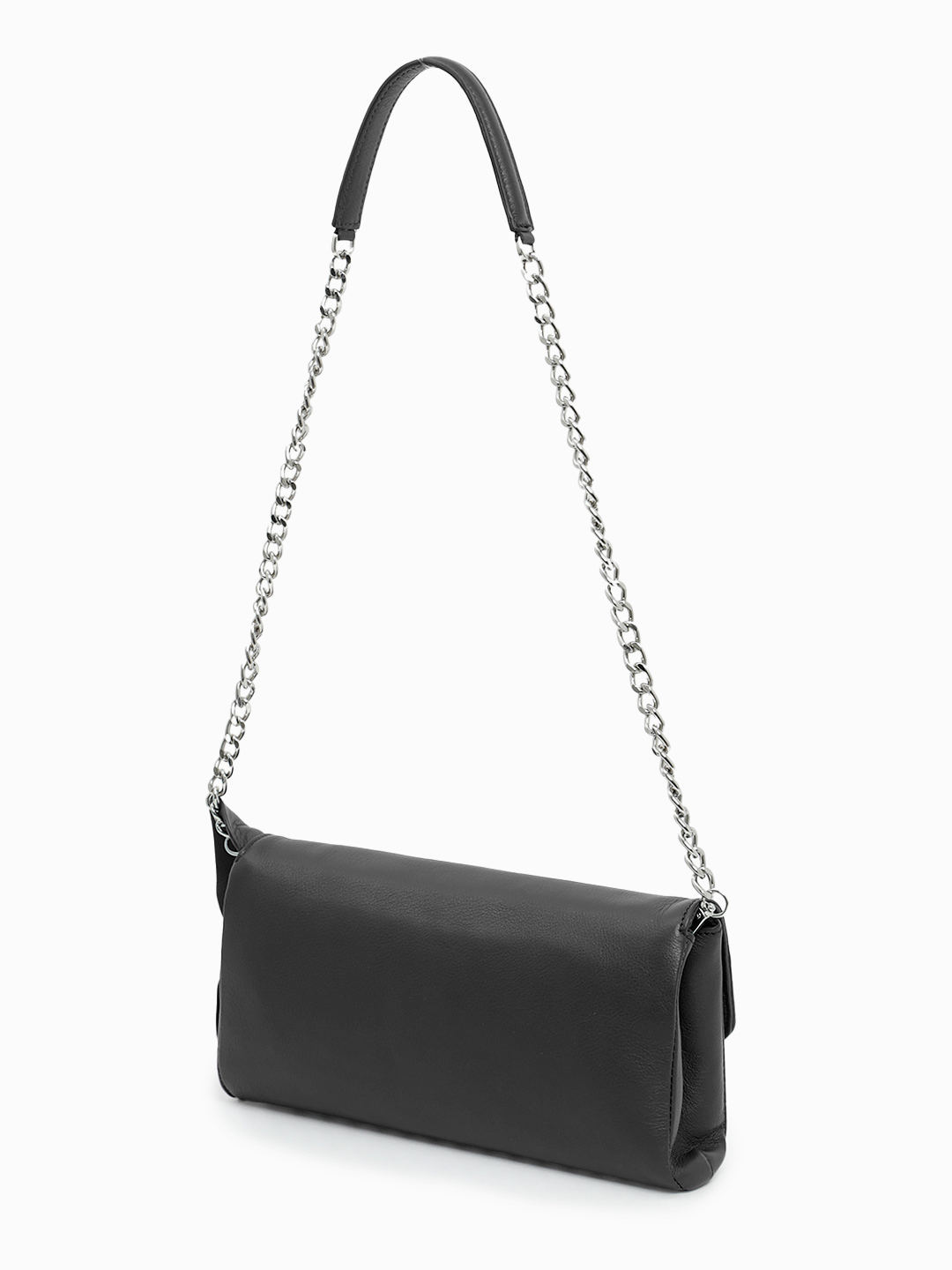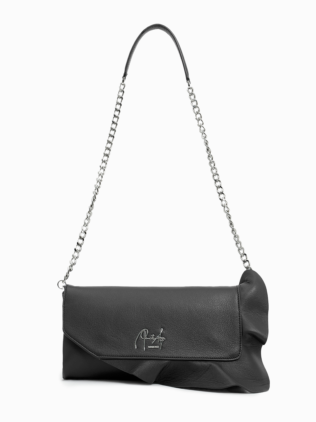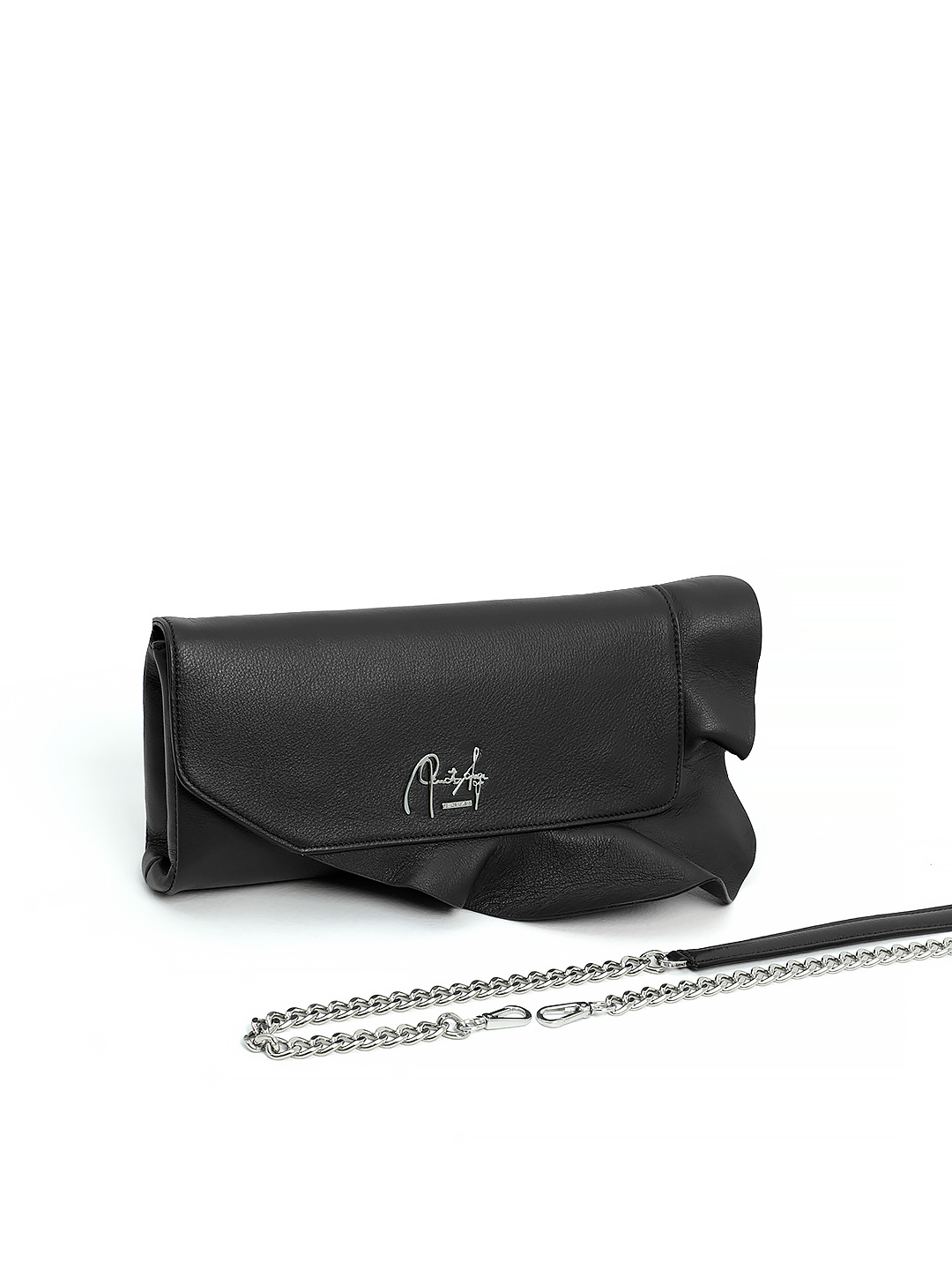 Сумка-клатч с ремнём-цепочкой и именным подкладом от Renato Angi в чёрном цвете