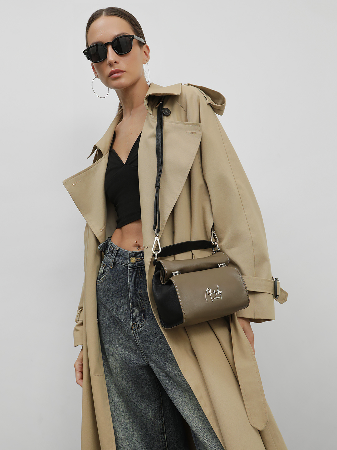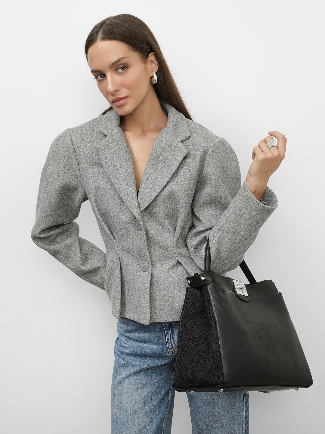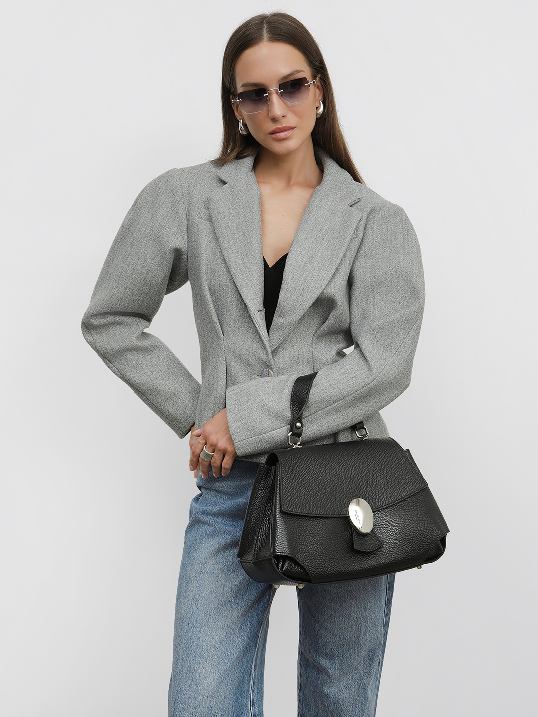 Однорукий сэтчел от Renato Angi с овальной фурнитурой с гравировкой в чёрном цвете