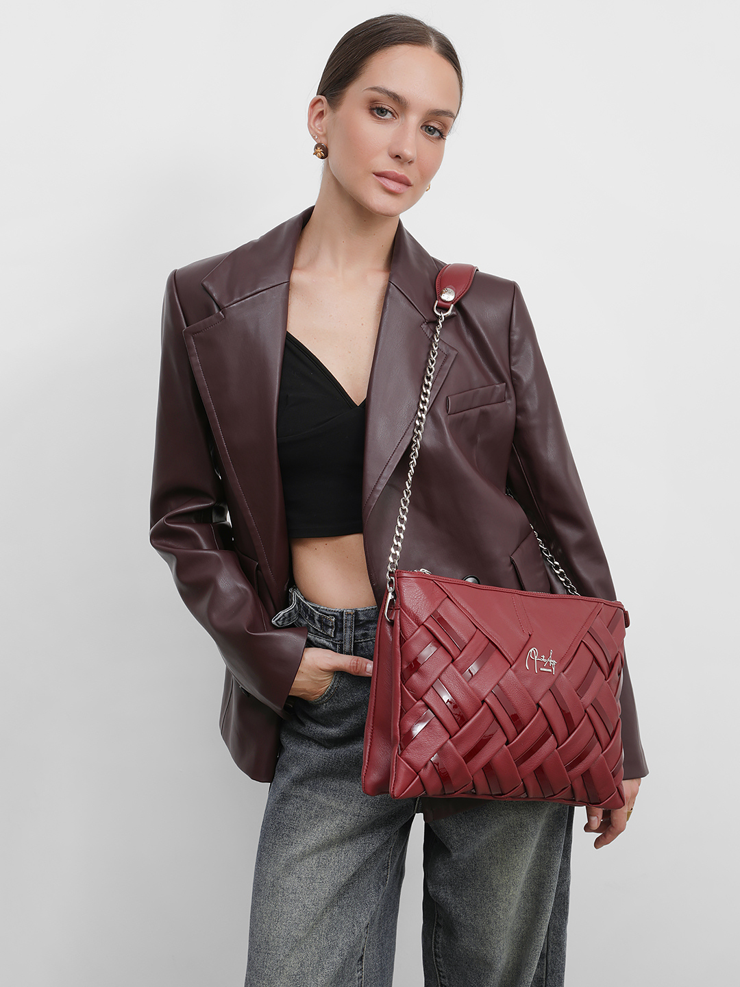 Кросс-боди на плечо с широким плетением от Renato Angi в бордовом цвете
