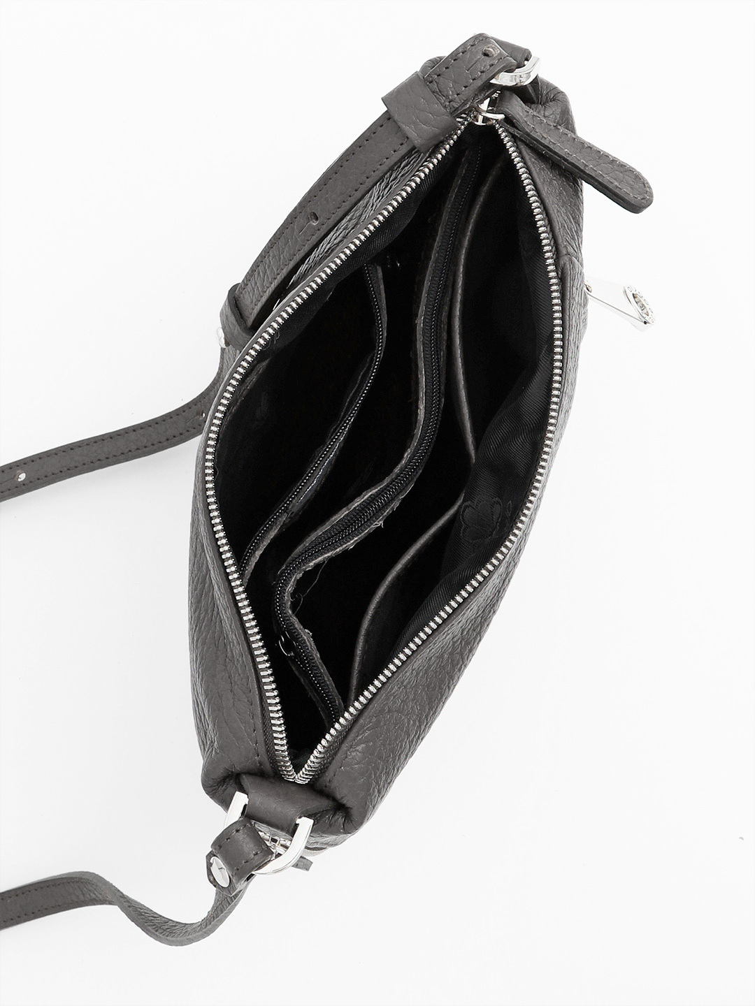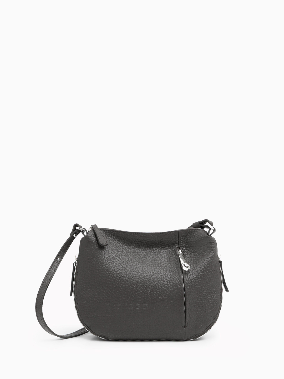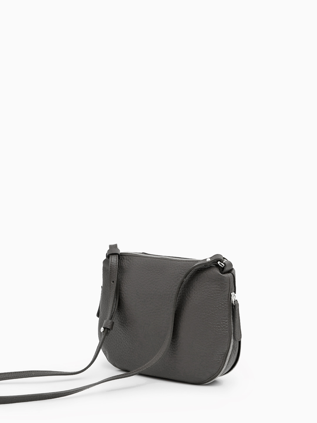 Полукруглая кросс-боди с молнией-расширителем и вертикальным карманом от Di Gregorio в сером оттенке asfalto