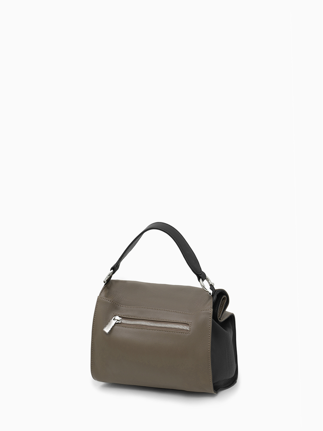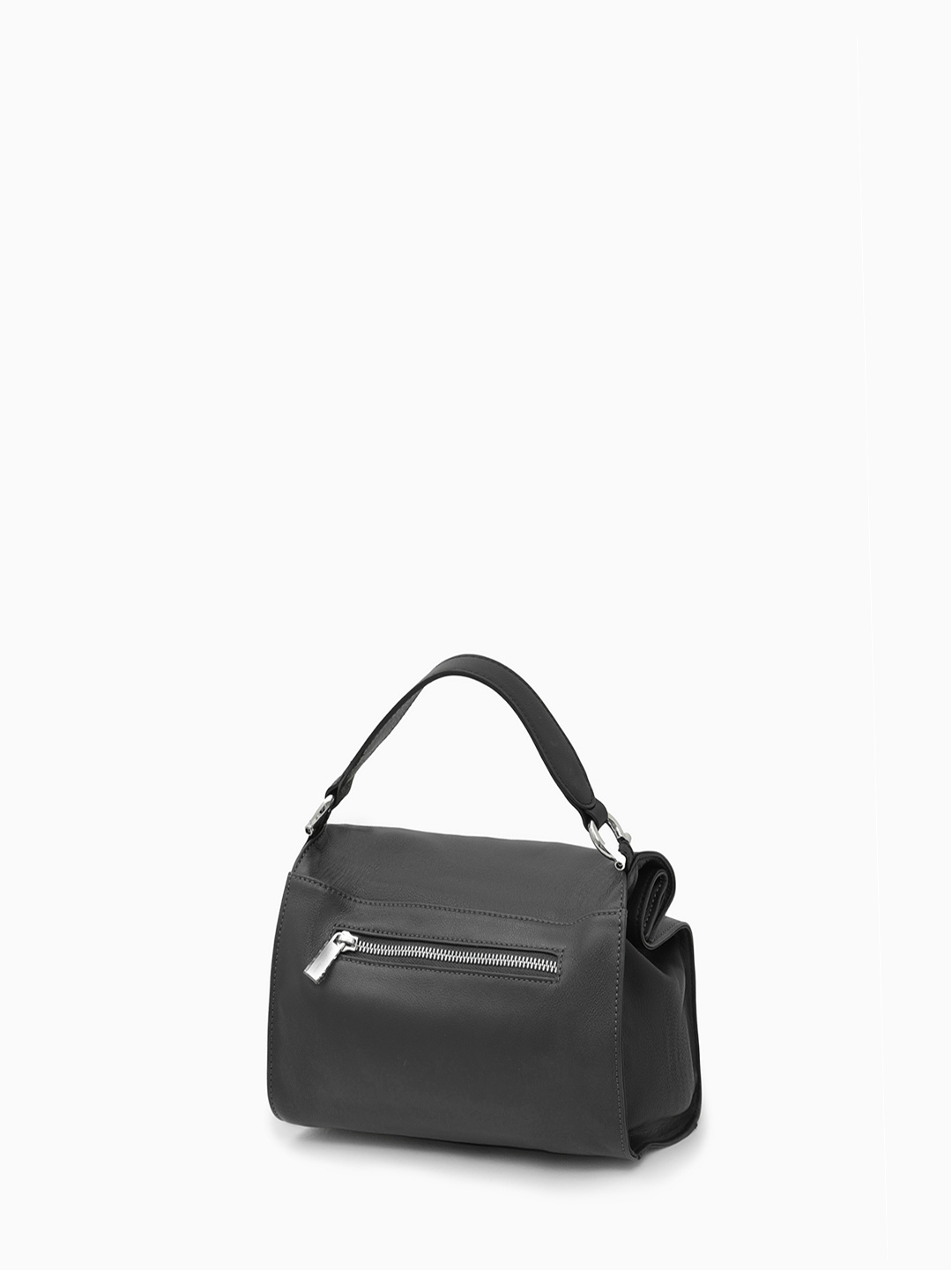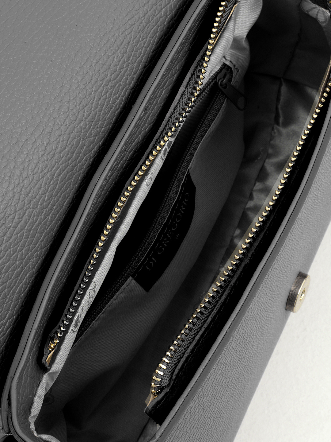 Полукруглая кросс-боди с молнией-расширителем и вертикальным карманом от Di Gregorio в сером оттенке asfalto