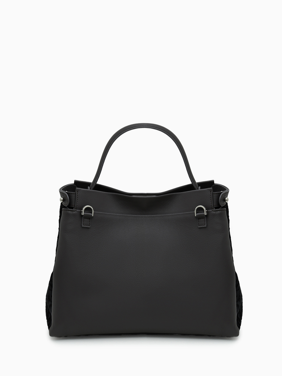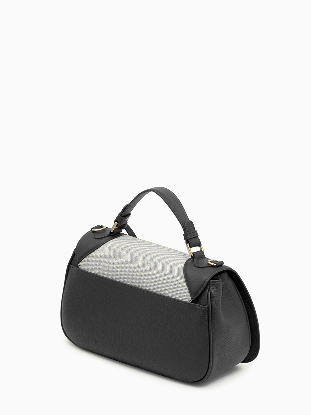 Сэтчел с вставками из натурального льна с золотистой фурнитурой от Di Gregorio в чёрном цвете