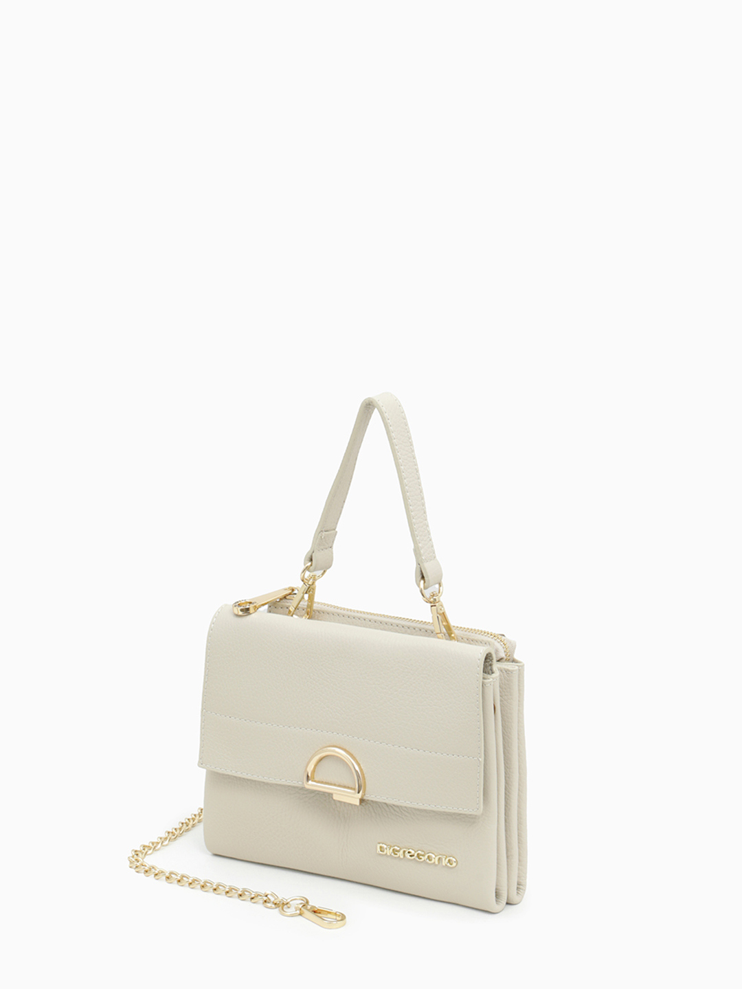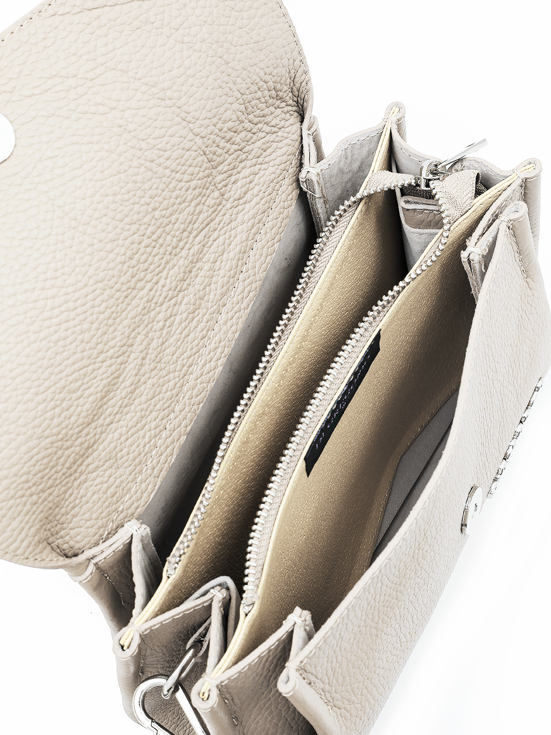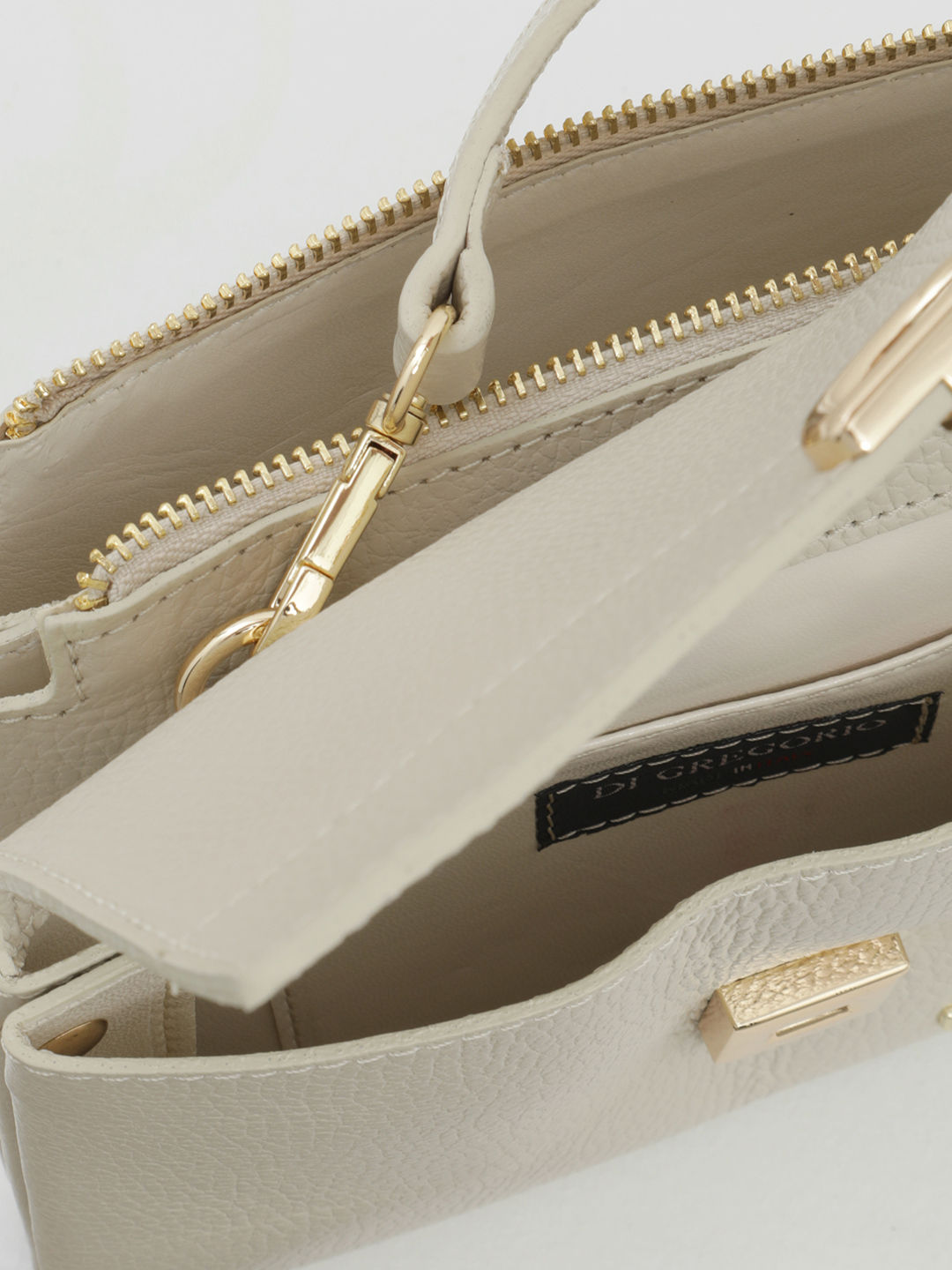 Небольшая кросс-боди с декоративной фурнитурой от Di Gregorio в бежевом оттенке