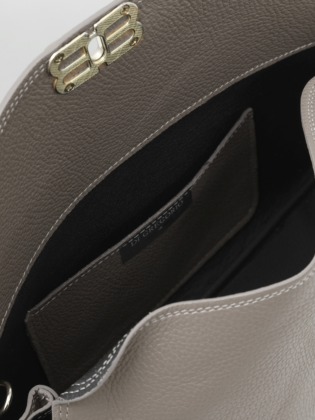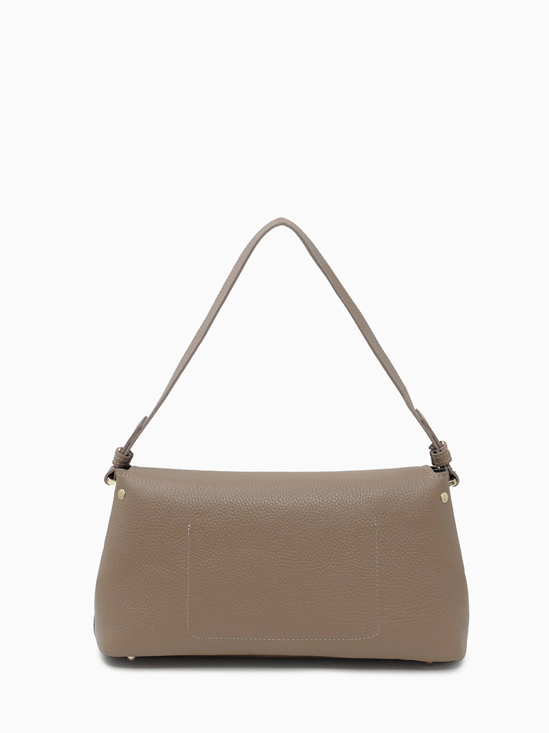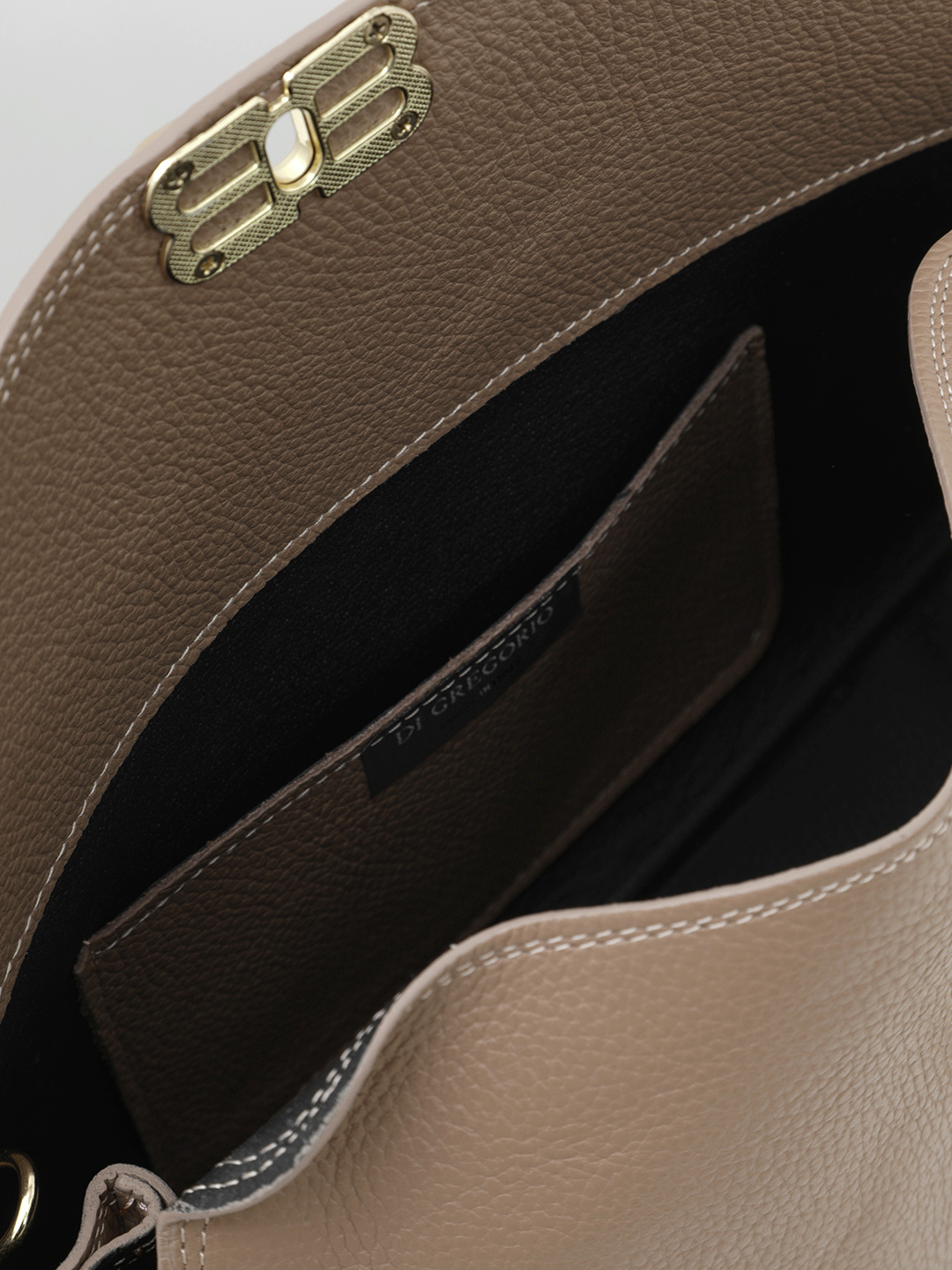 Сумка-багет с изогнутым клапаном и золотистым замком от Di Gregorio в оттенке тауп