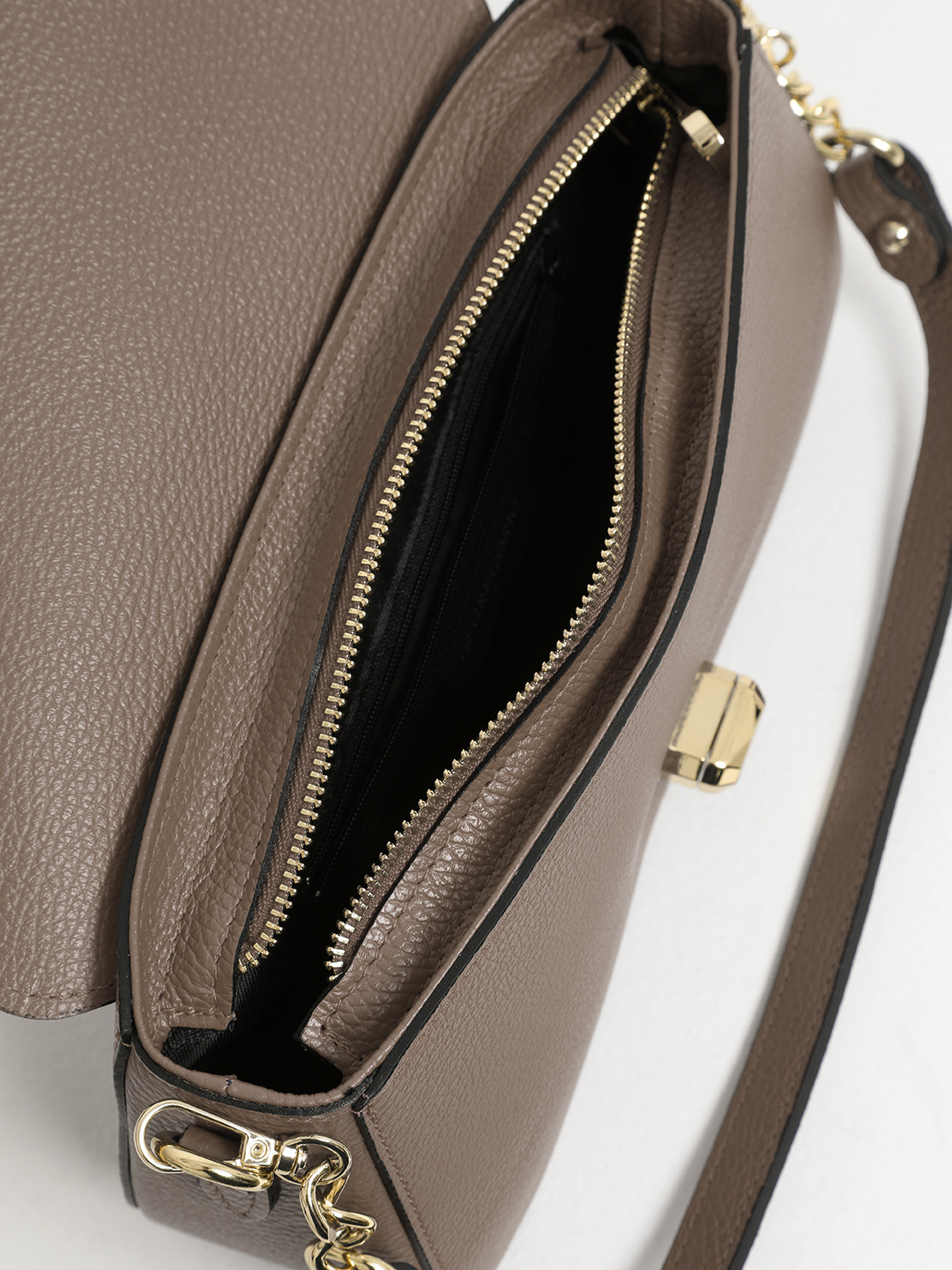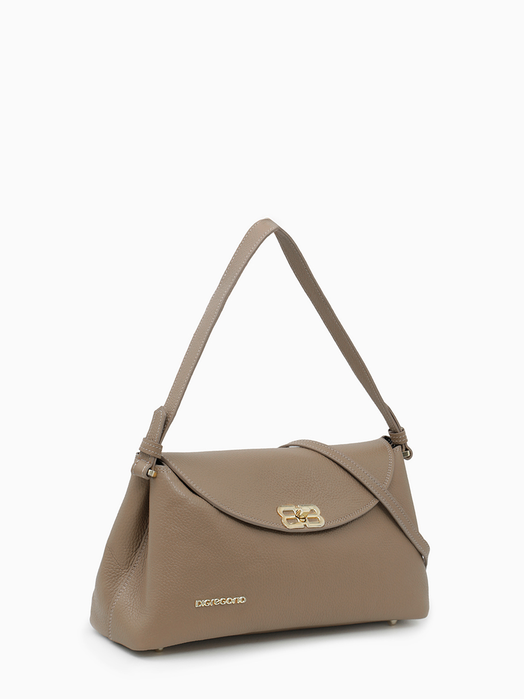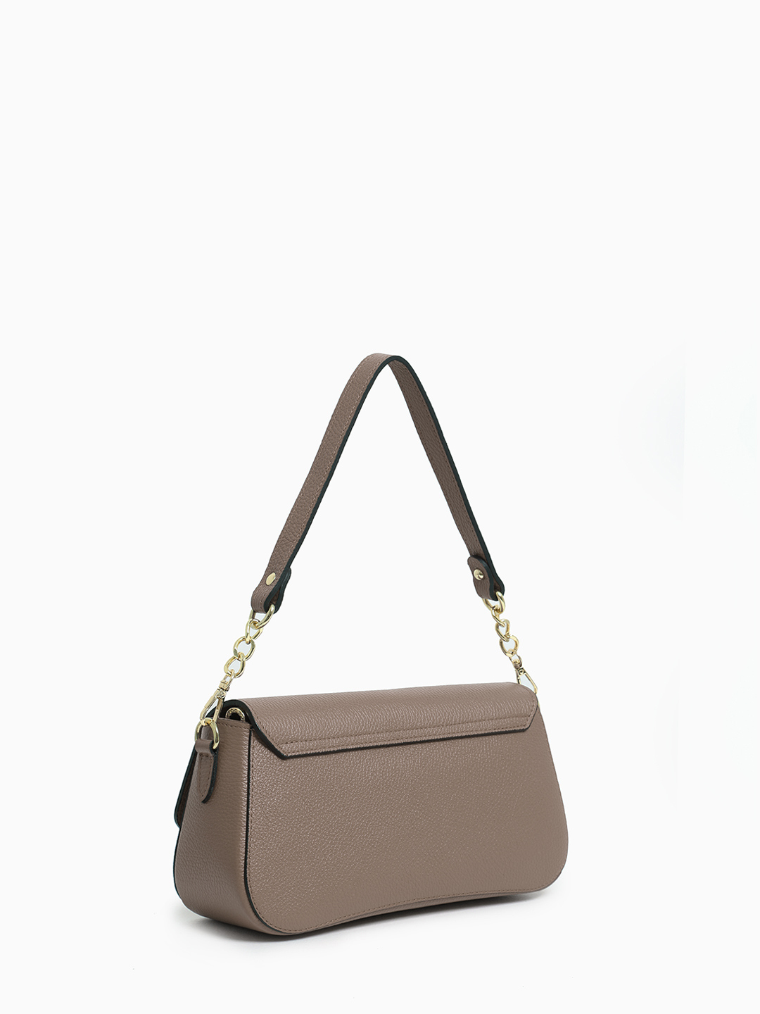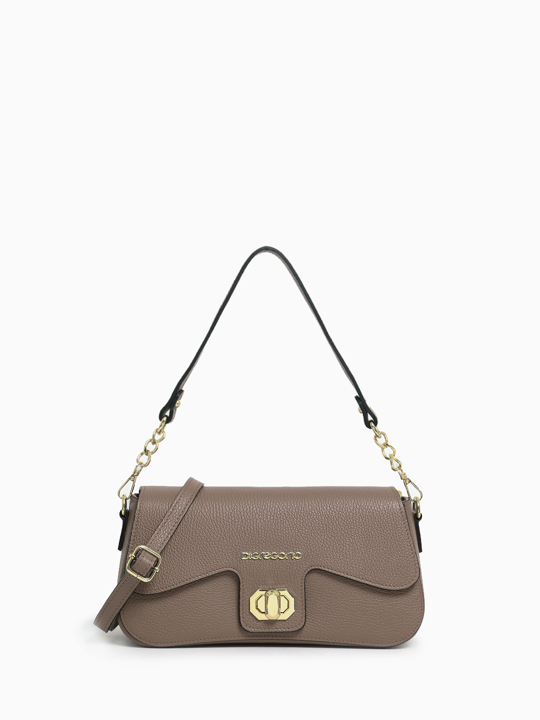 Сумка-багет с изогнутым клапаном и золотистым замком от Di Gregorio в оттенке тауп