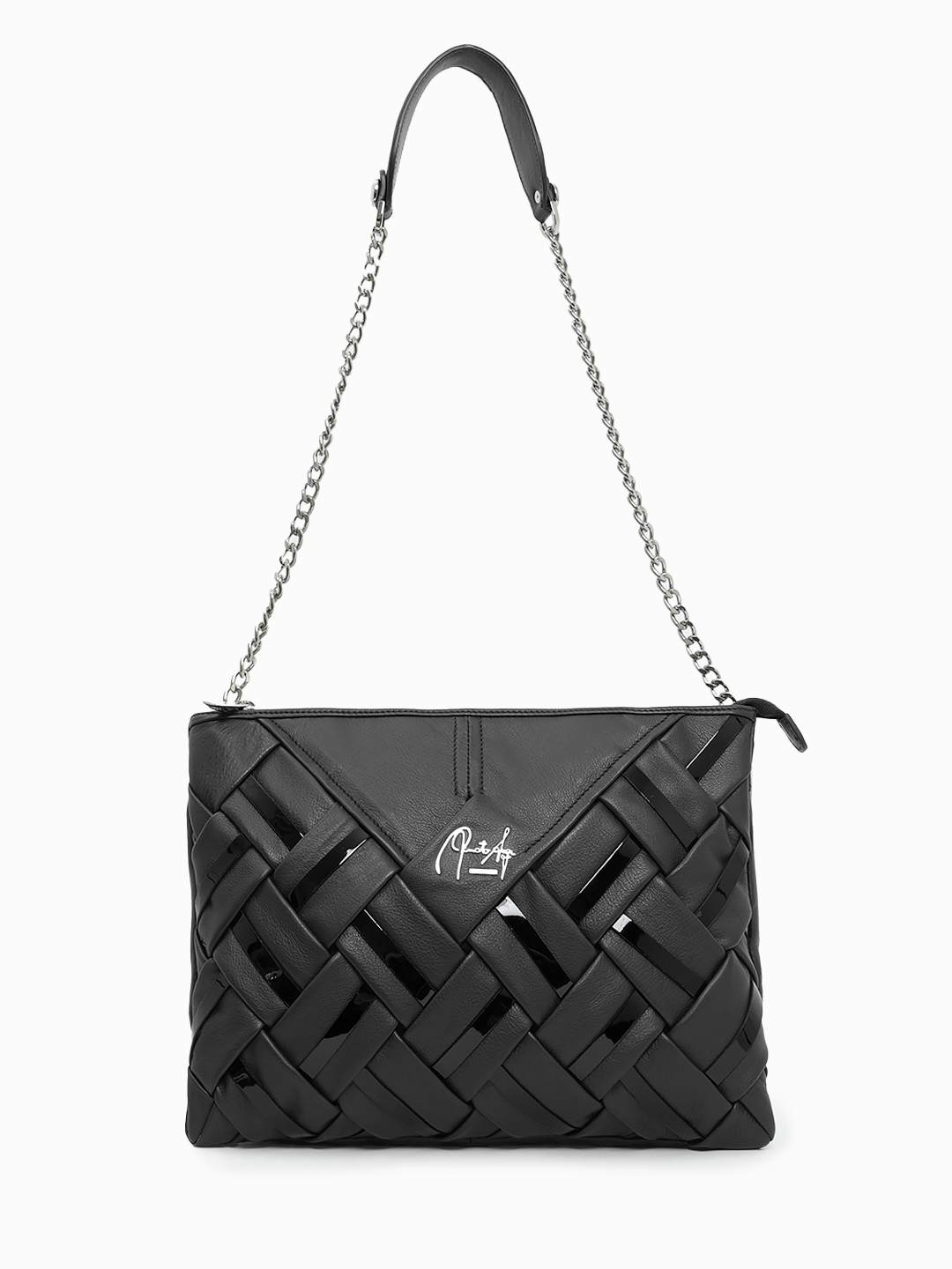 Кросс-боди на плечо с широким плетением от Renato Angi в чёрном цвете
