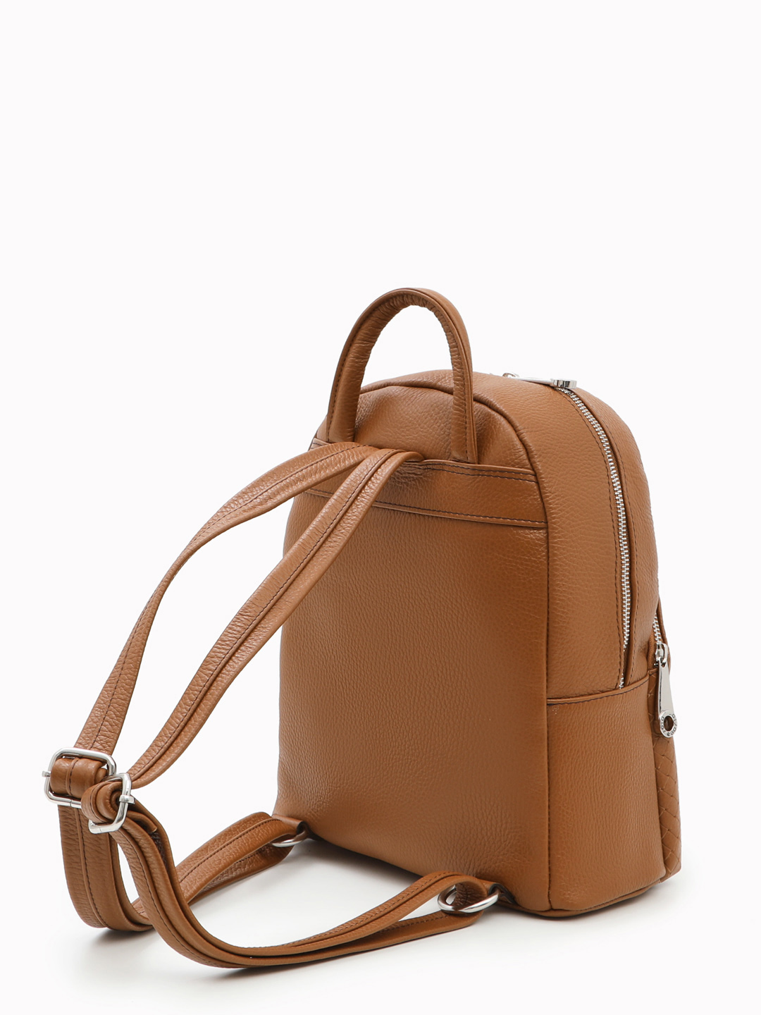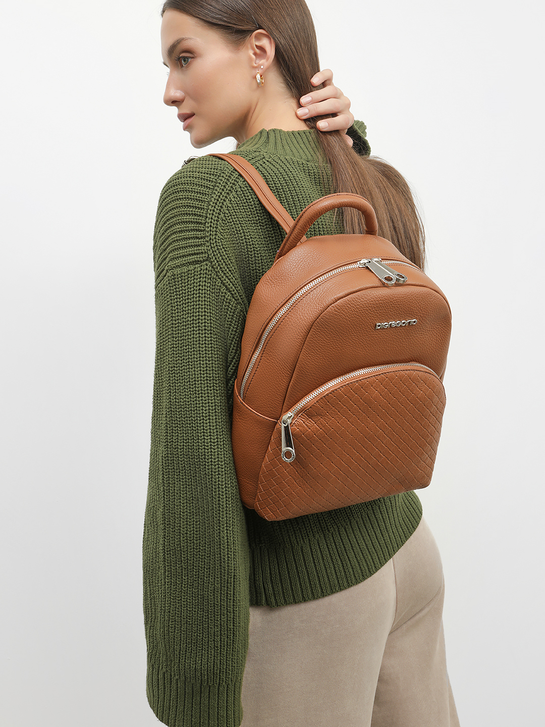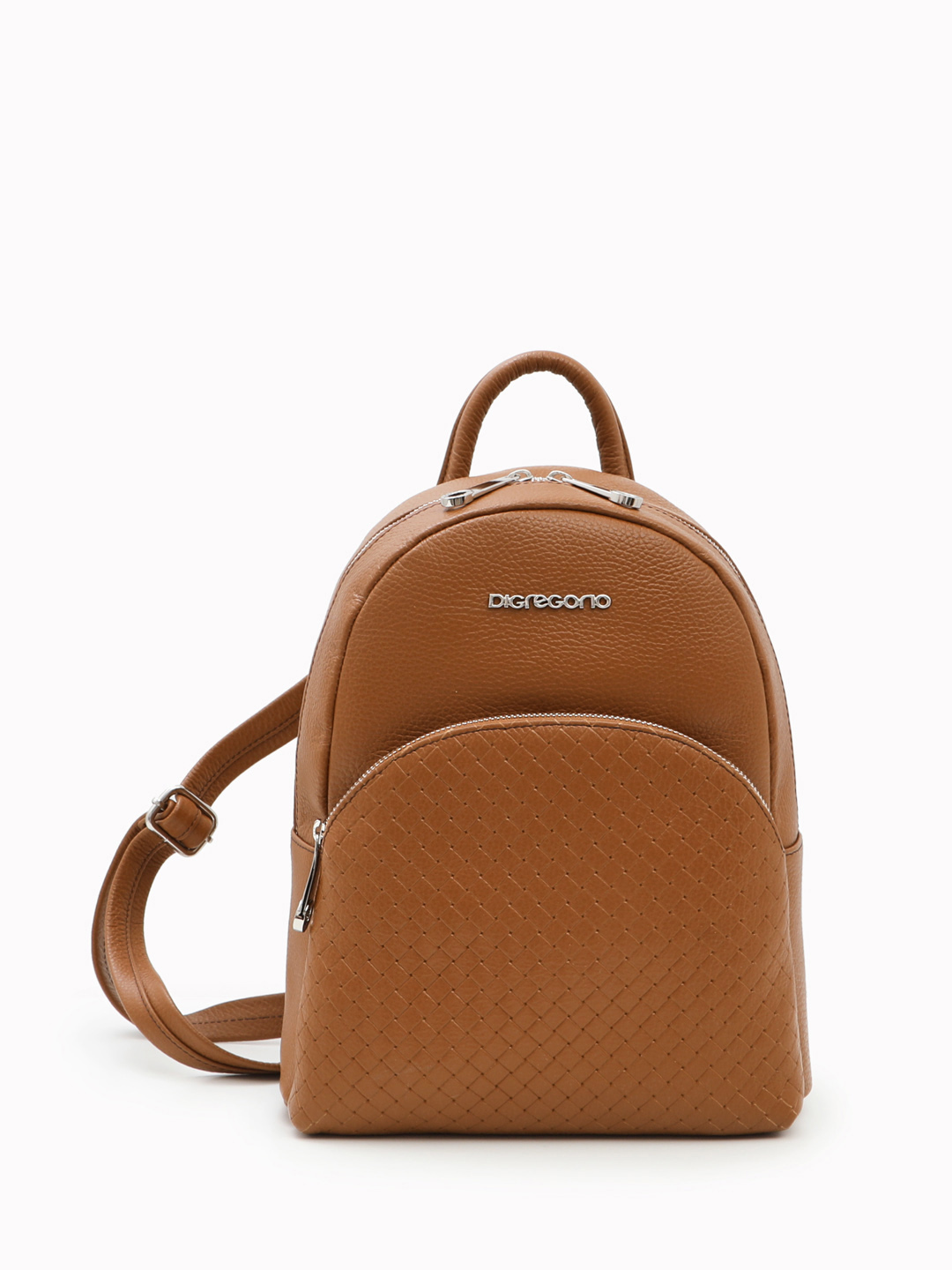 Базовый рюкзак с объёмным тиснением на внешнем кармане от Di Gregorio в рыжем оттенке
