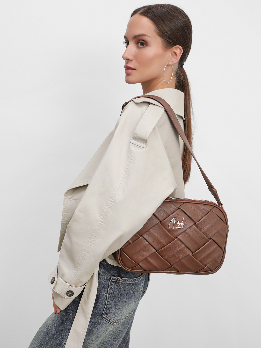 Кросс-боди на плечо с широким плетением от Renato Angi в коричневом цвете