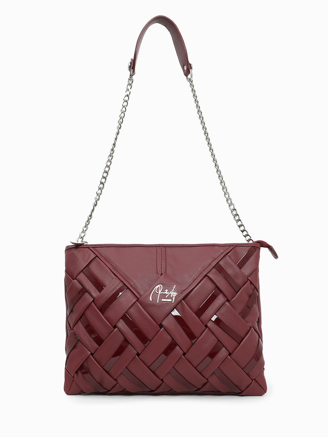 Прямоугольная сумка на плечо от Renato Angi с плетением зернистой и лаковой кожи в бордовом цвете