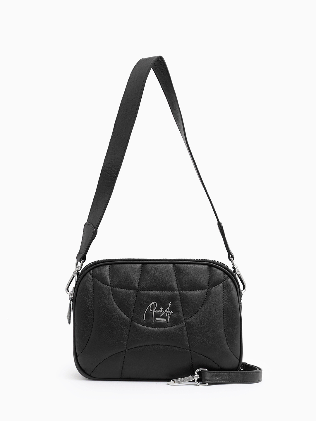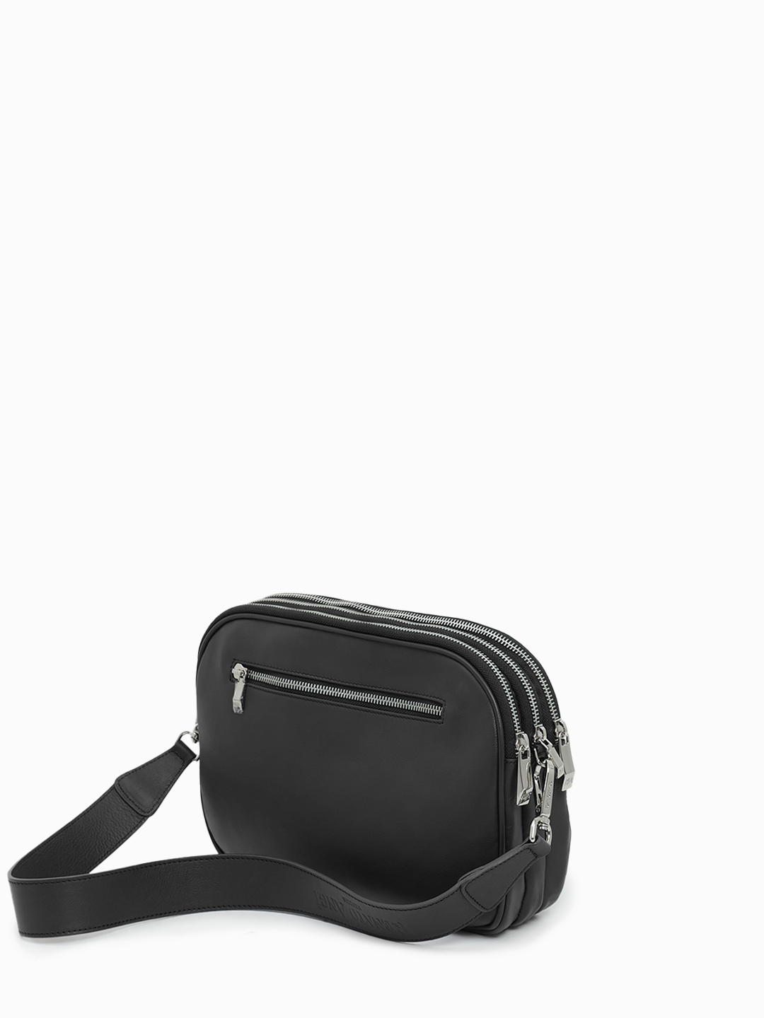 Стёганая кросс-боди с тремя отделениями и логотипом Renato Angi в чёрном цвете