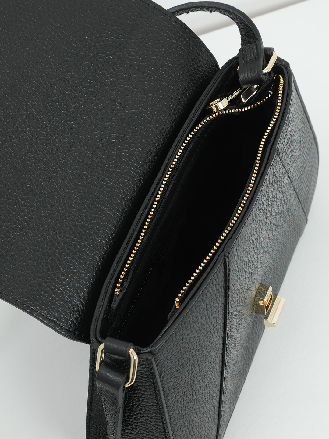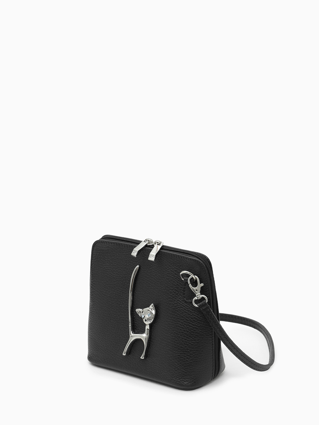 Чёрная кросс-боди в размере S от Renato Angi с фурнитурой-кошкой