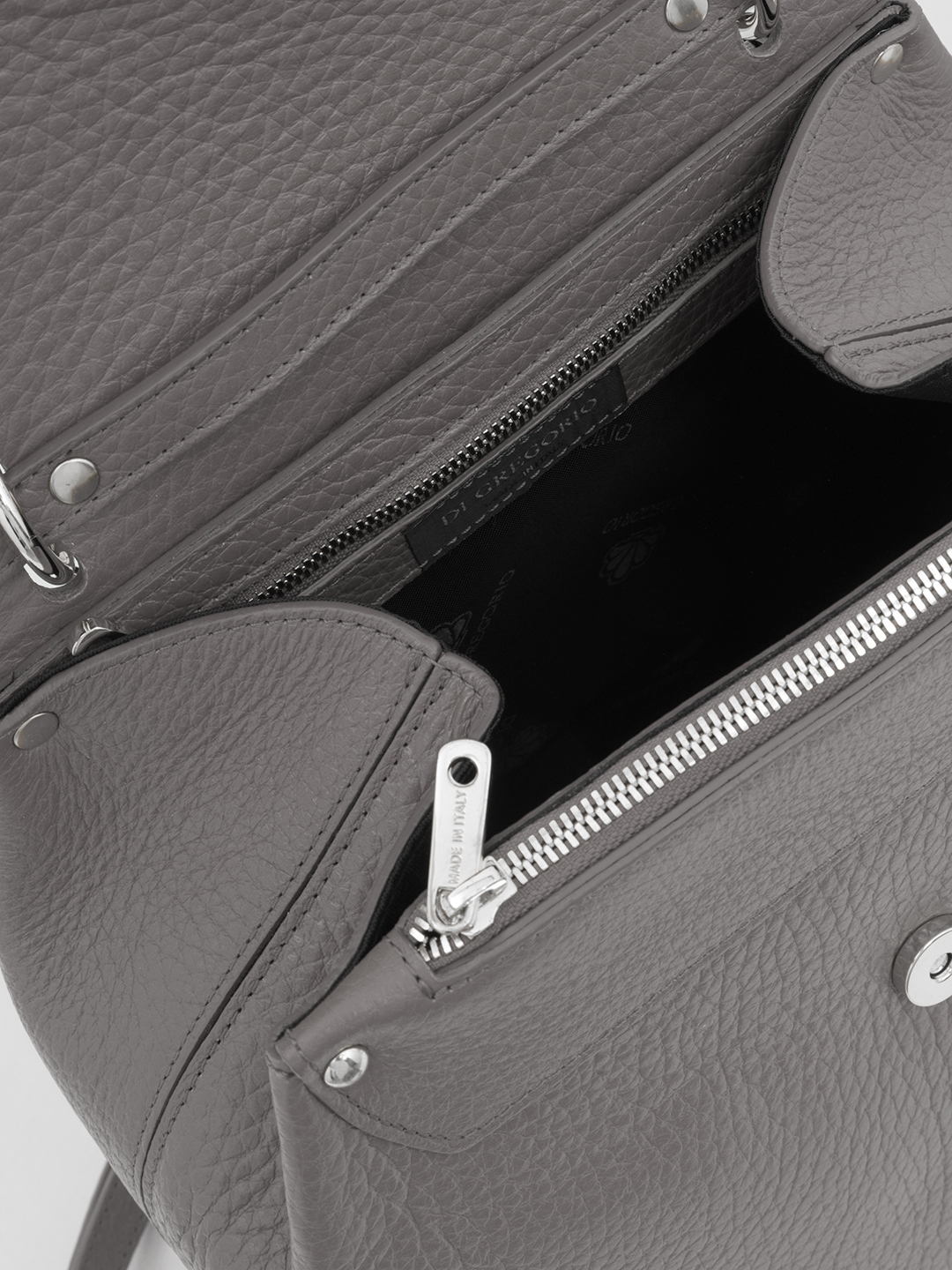 Сумка-рюкзак с фигурным клапаном от Di Gregorio в сером цвете