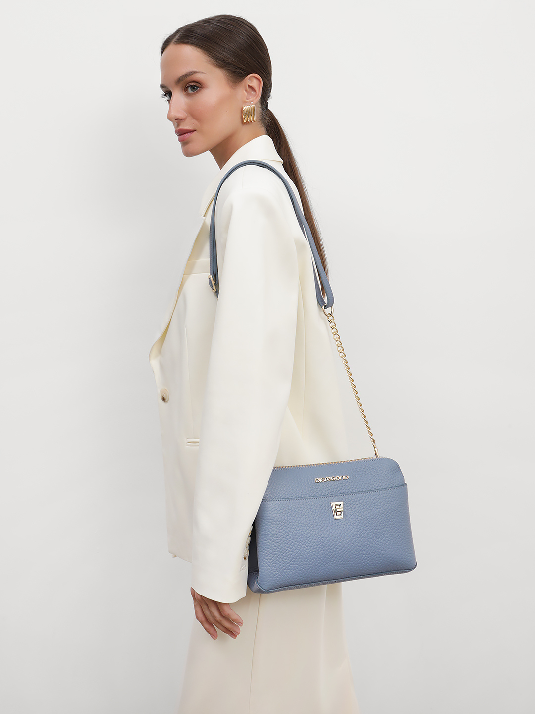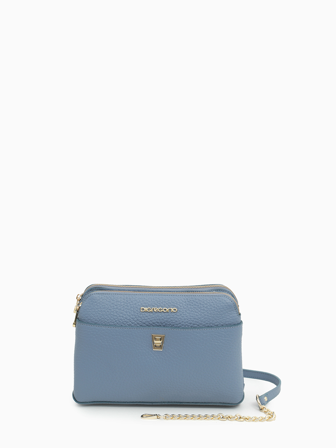 Кросс-боди с двумя отделениями и ремнём с элементами цепочки от Di Gregorio в голубом оттенке azul