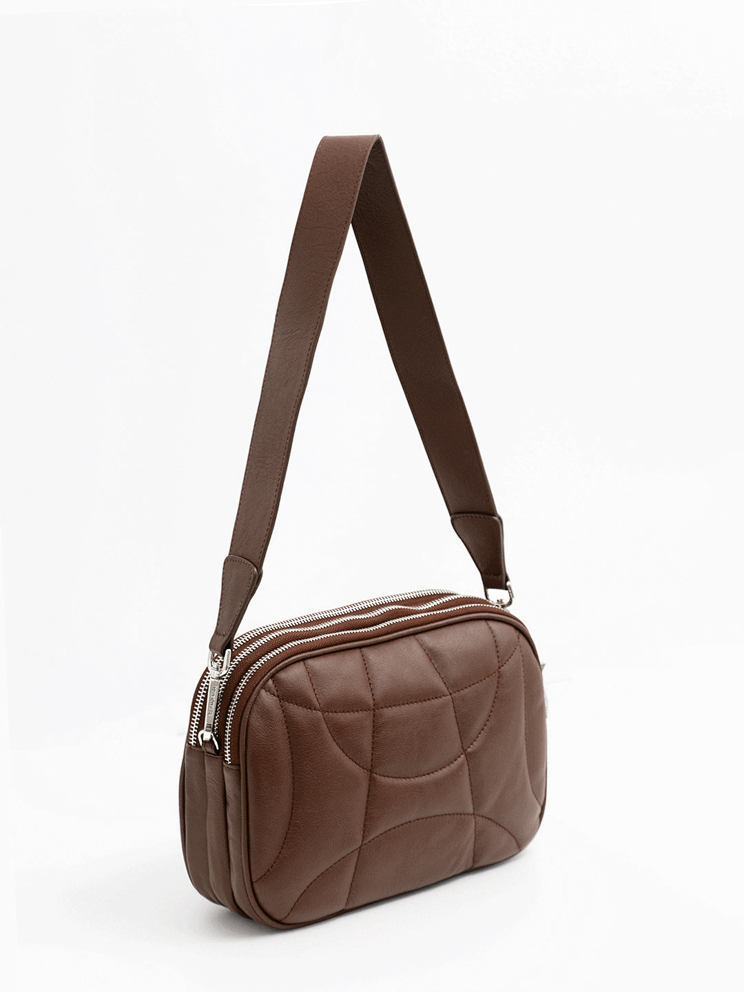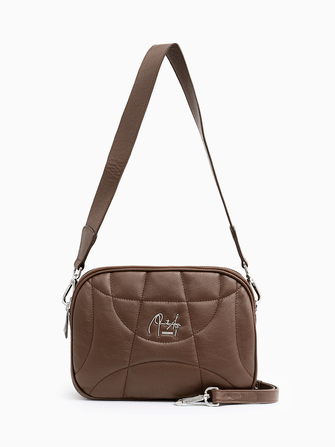 Стёганая кросс-боди с тремя отделениями и логотипом Renato Angi в коричневом цвете