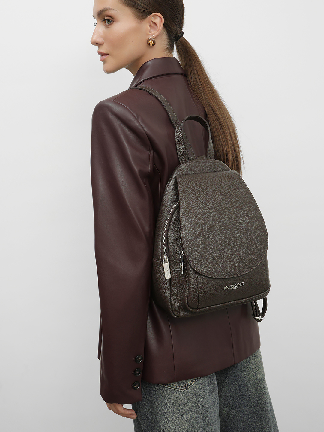 Рюкзак с полукруглым клапаном и именной гравировкой Renato Angi в коричневом оттенке