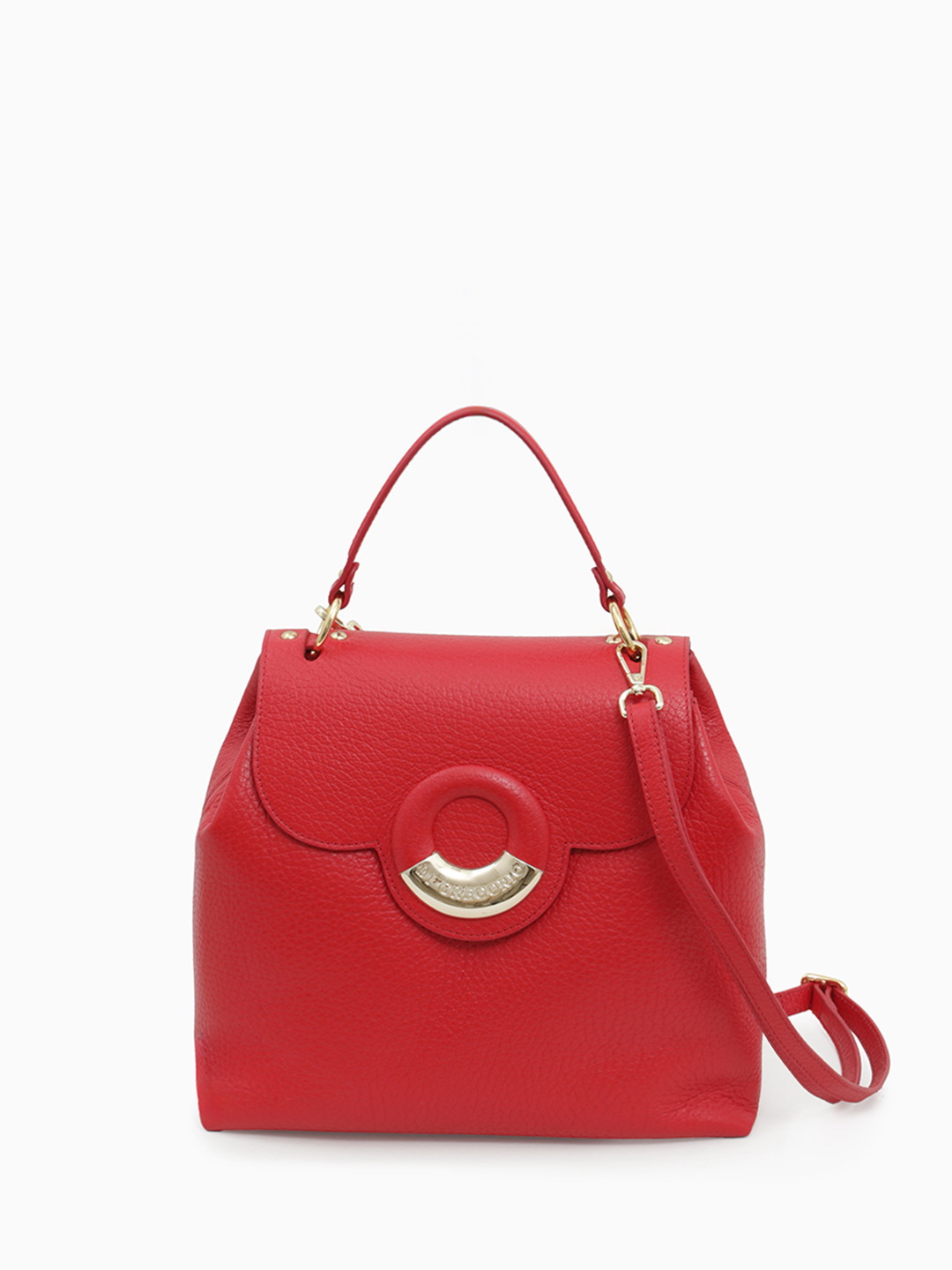 Сумка-рюкзак с фигурным клапаном от Di Gregorio в красном цвете