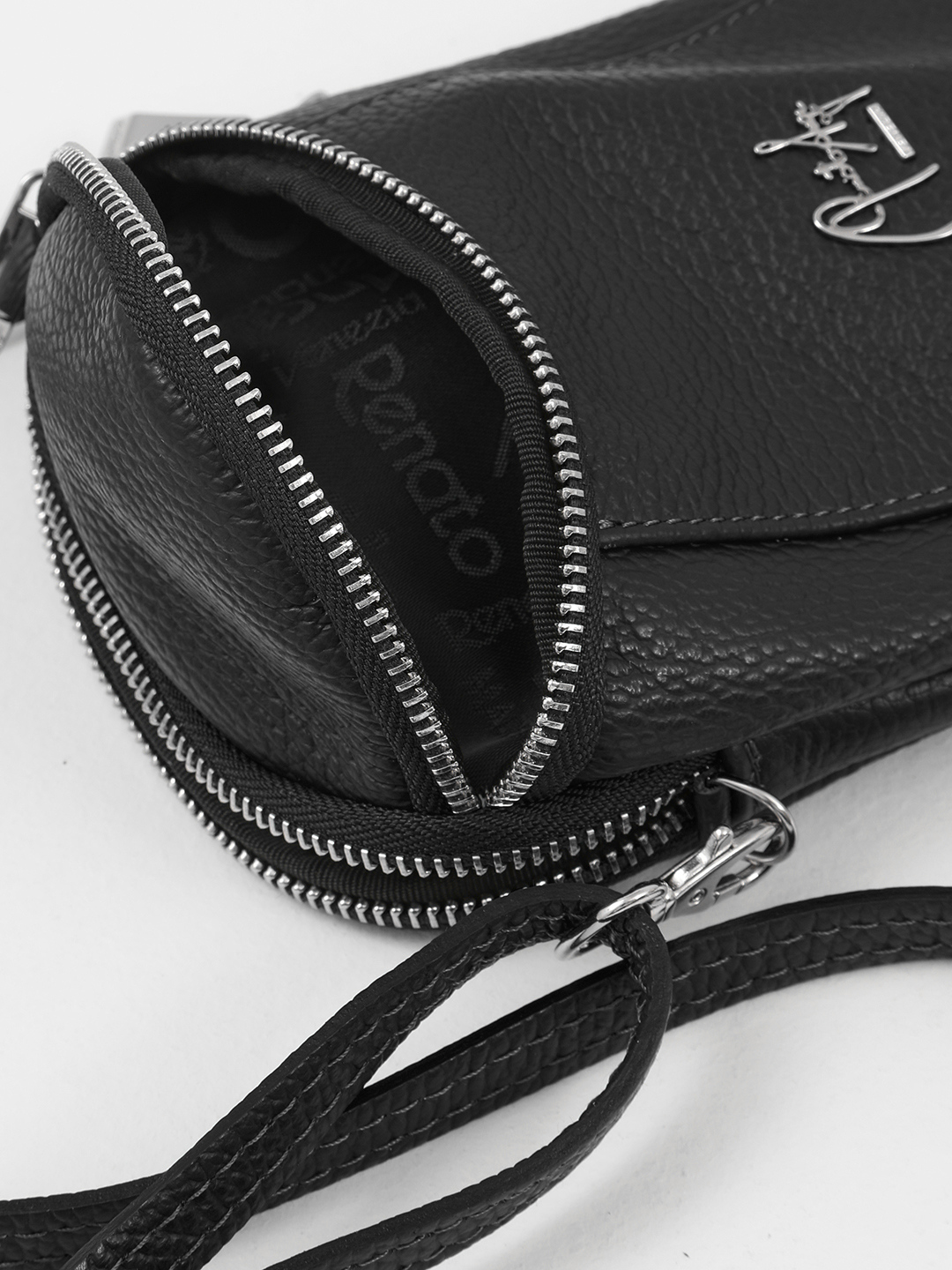 Мини-сумка для телефона с двумя отделениями на молнии от Renato Angi чёрного цвета