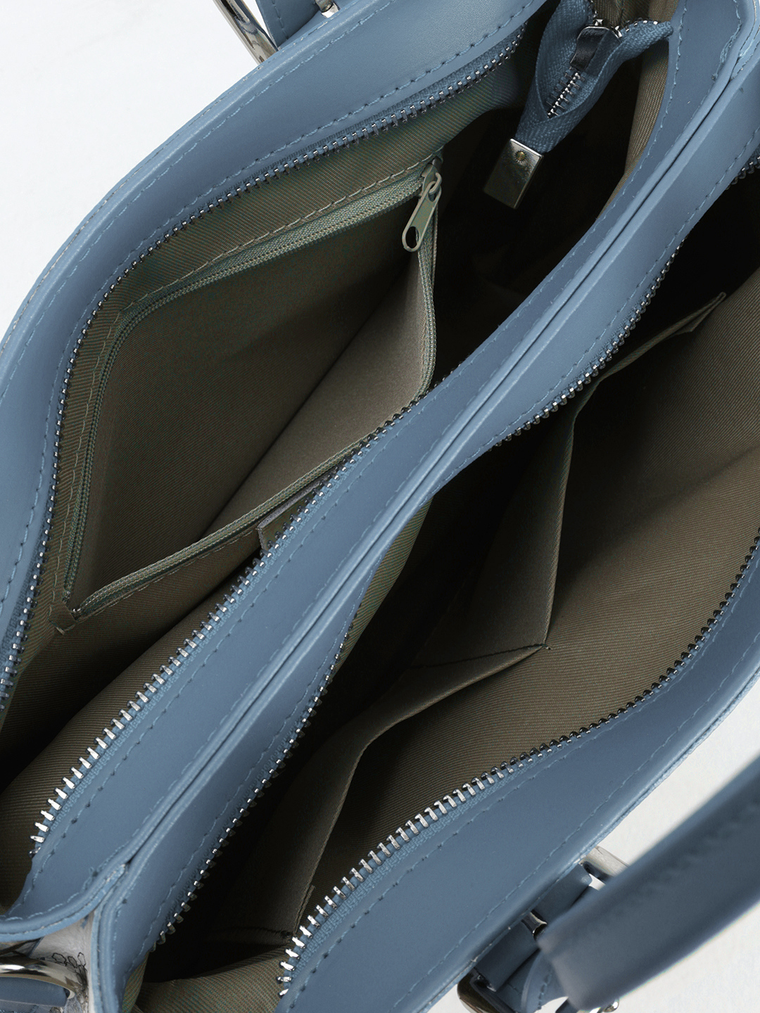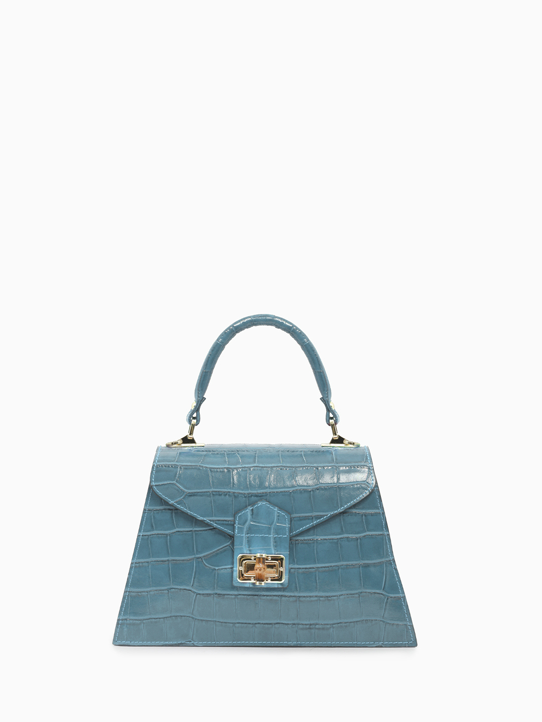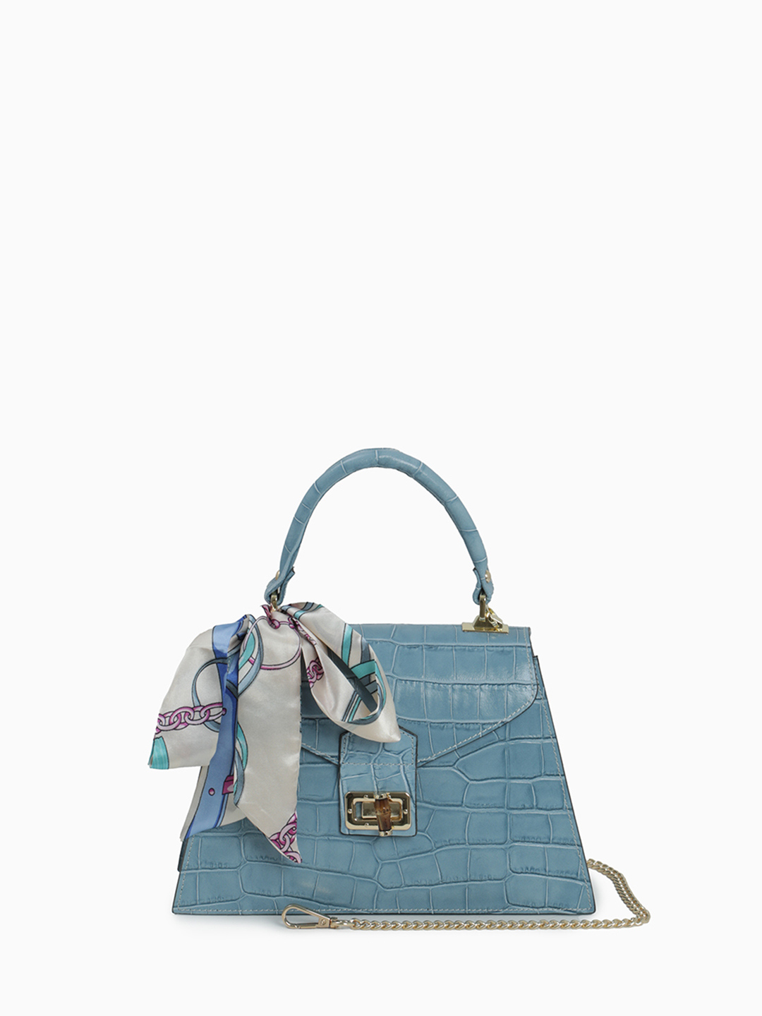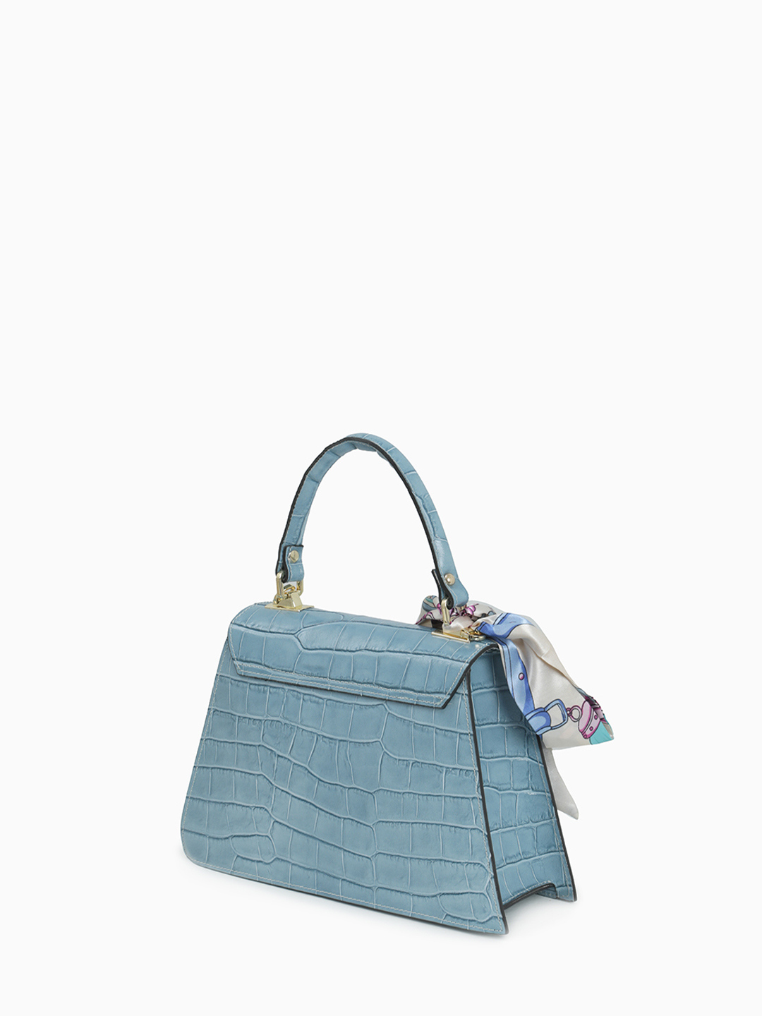 Сумка-сэтчел с поворотной фурнитурой от BE NICE из кожи под крокодила лазурного оттенка