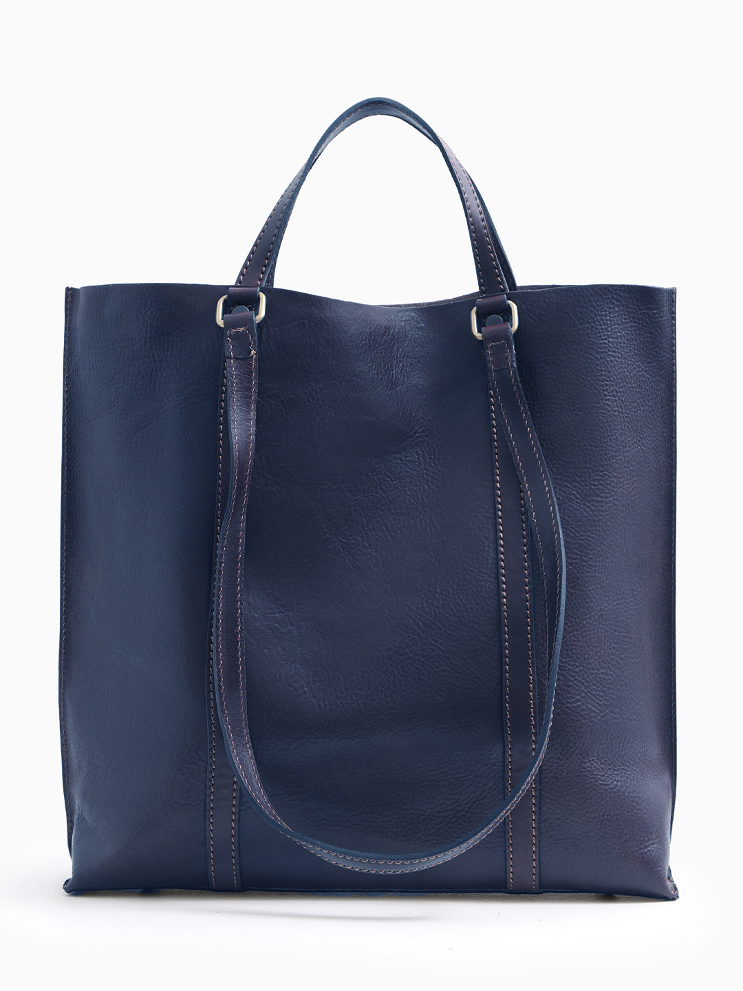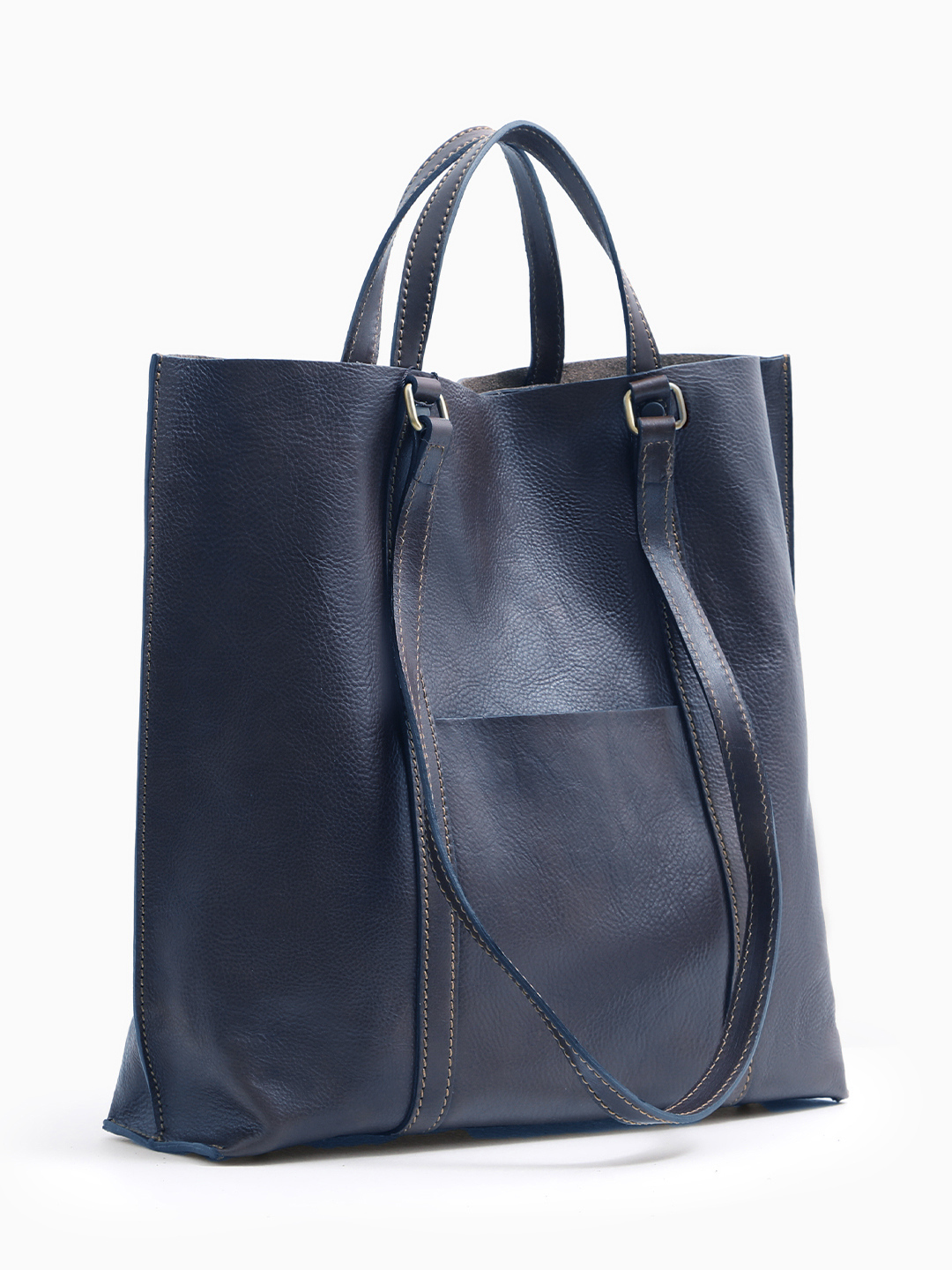 Сумка-шоппер с двумя парами ручек от FOLLE из винтажной кожи vacchetta синего цвета