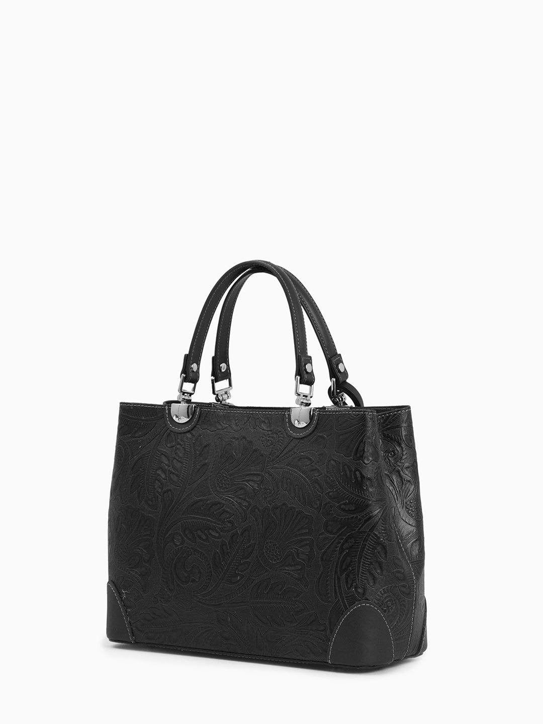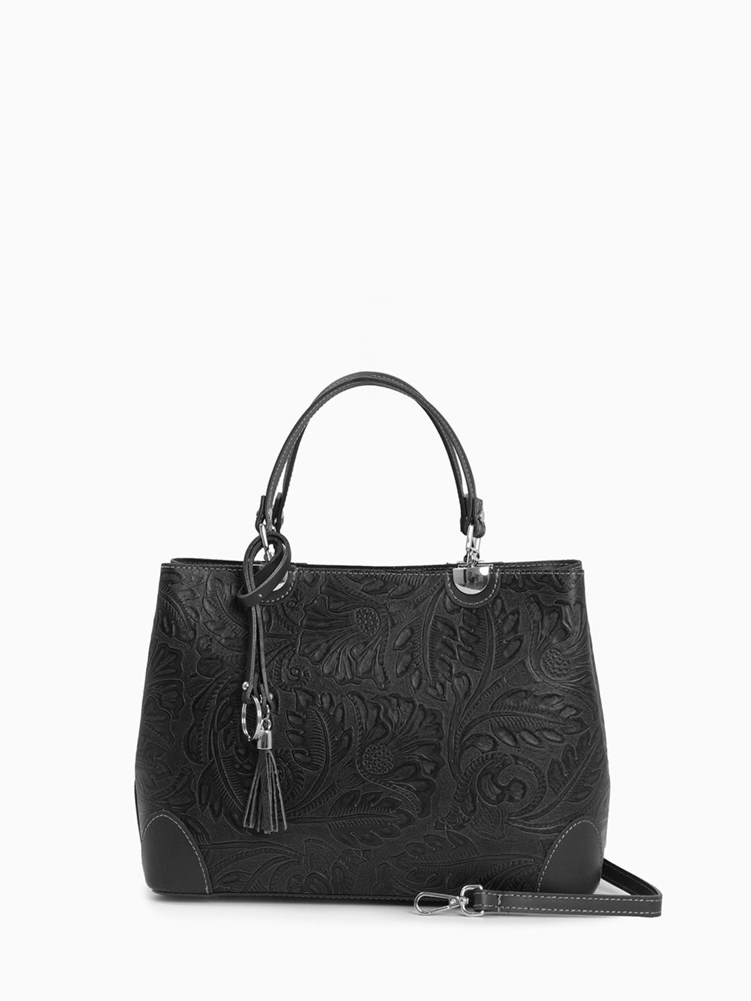 Сумка-тоут с цветочным штампом и длинным ремнём от folle в чёрном цвете