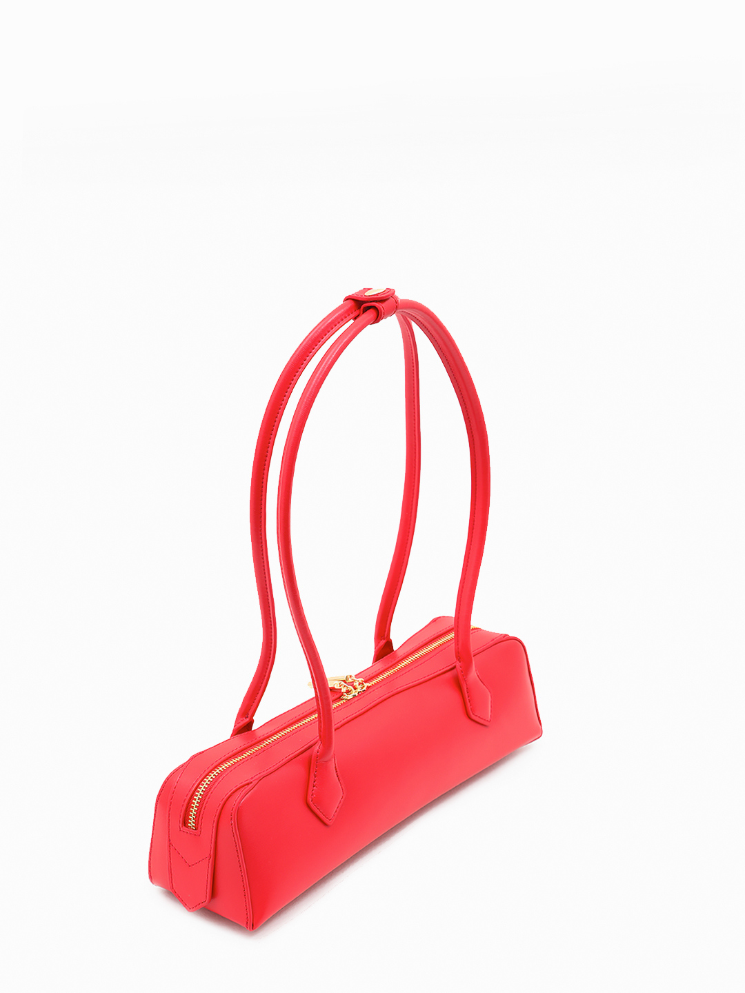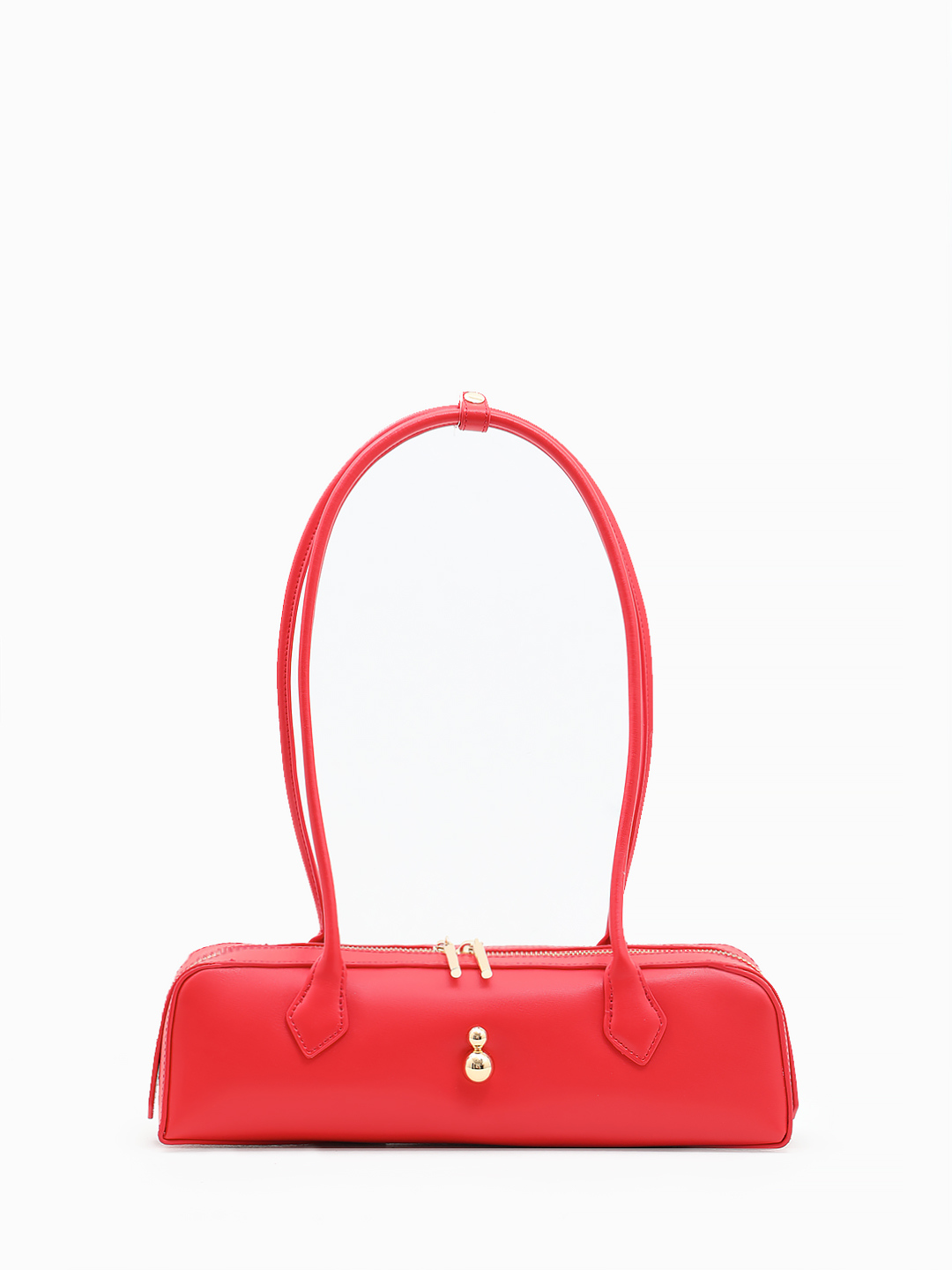Красная сумка-багет с двумя ручками и золотистой фурнитурой от IVORY