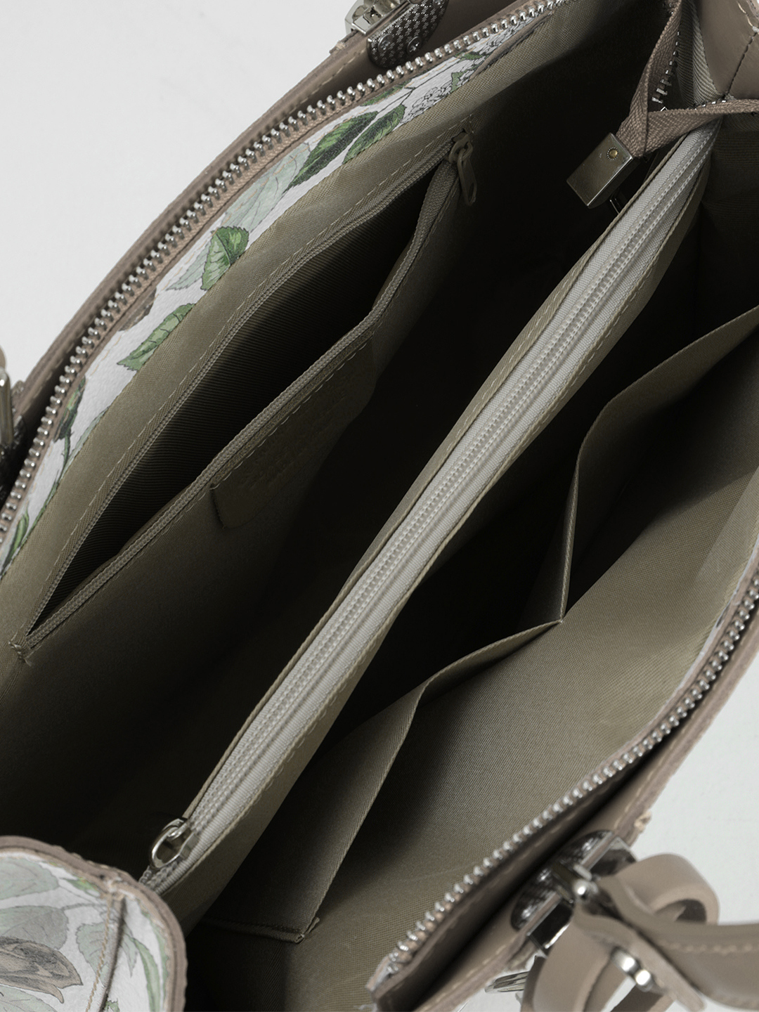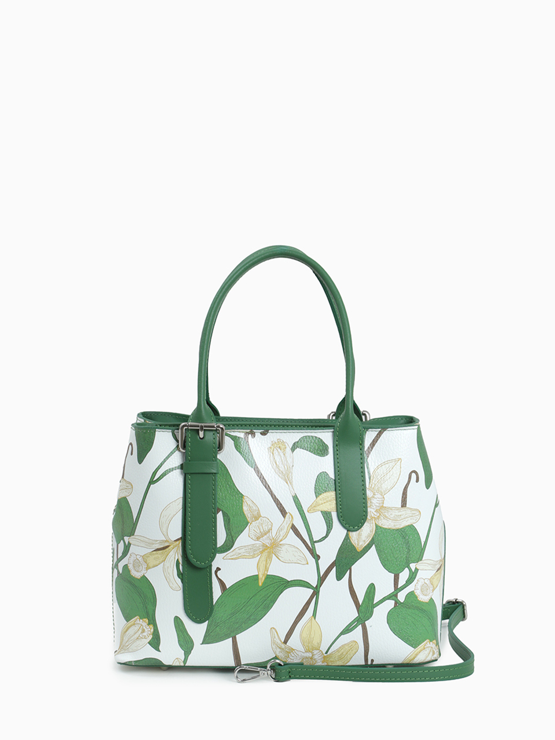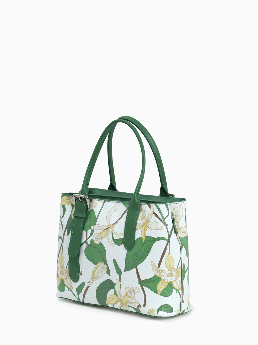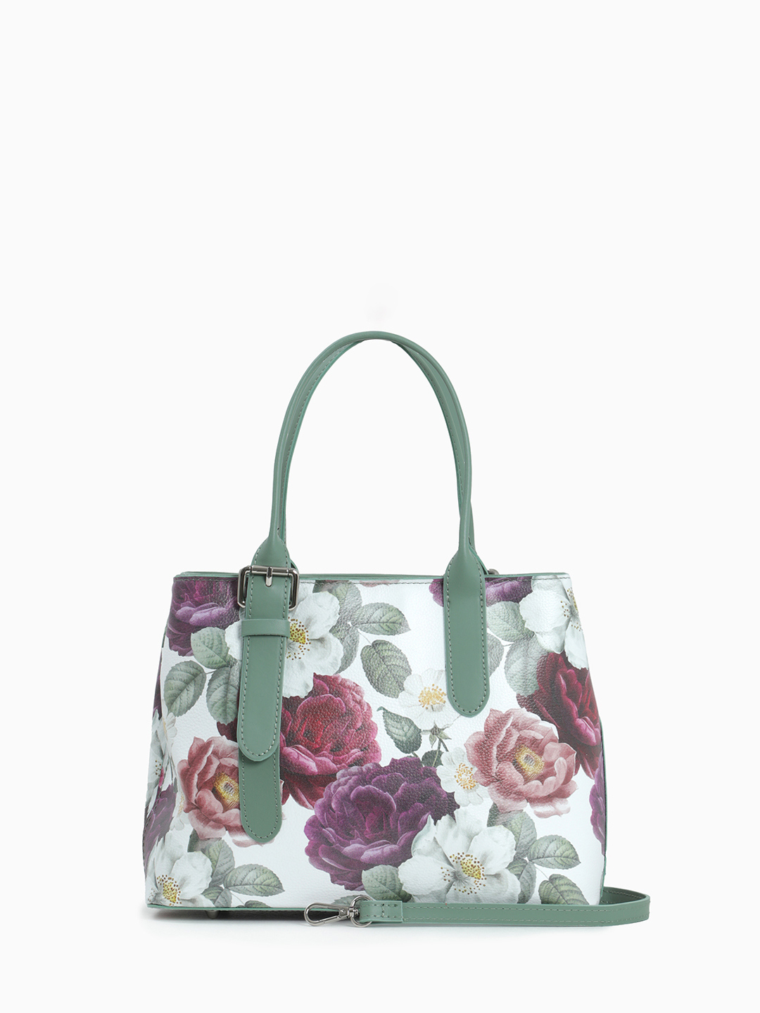Сумка-тоут с цветочным принтом и ручками зелёного оттенка от Folle