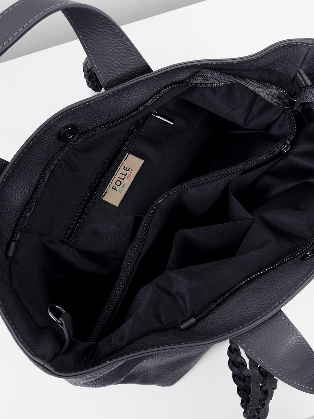 Сумка-трансформер с ручками-косичками от FOLLE в чёрном цвете