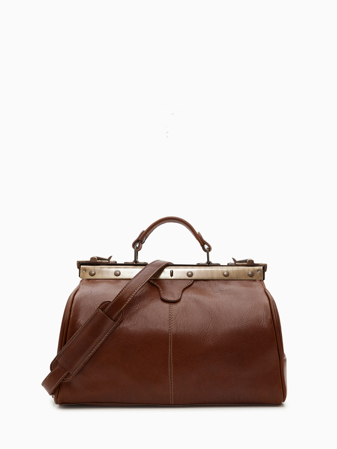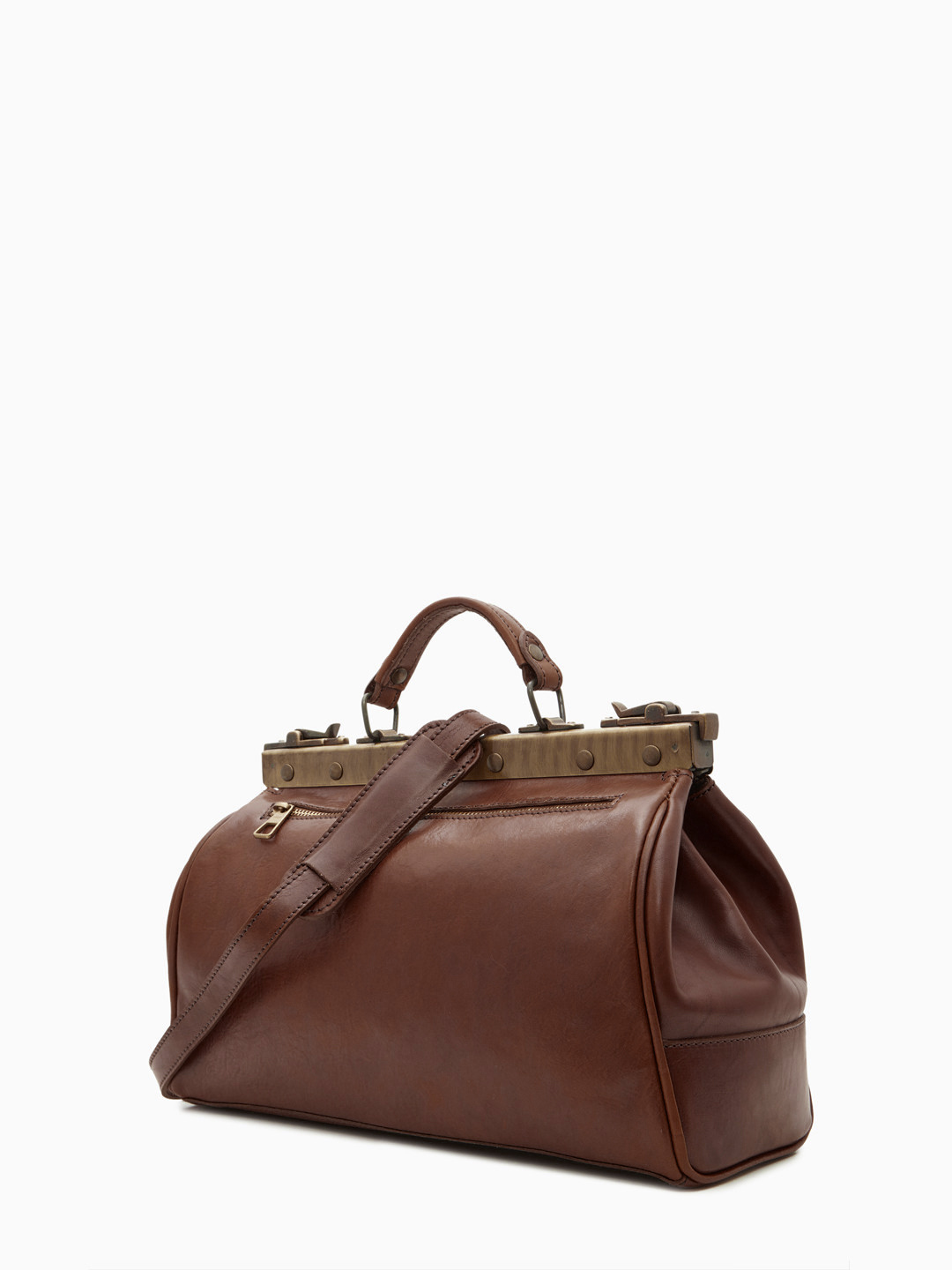 Винтажная сумка-саквояж с фурнитурой под старину от FOLLE в шоколадном оттенке