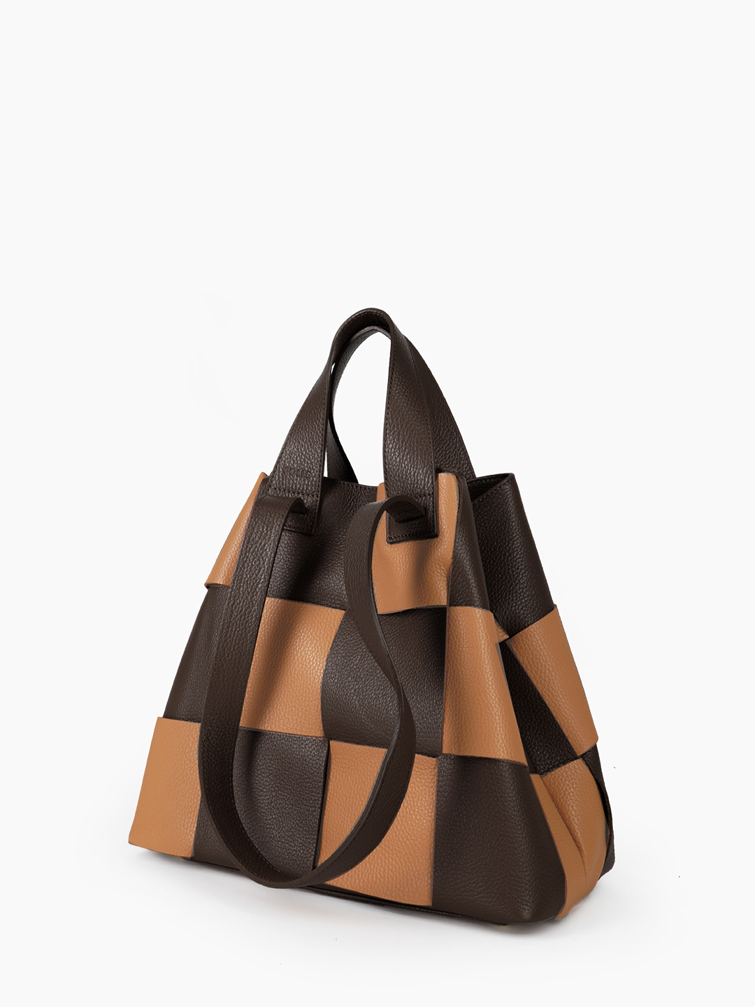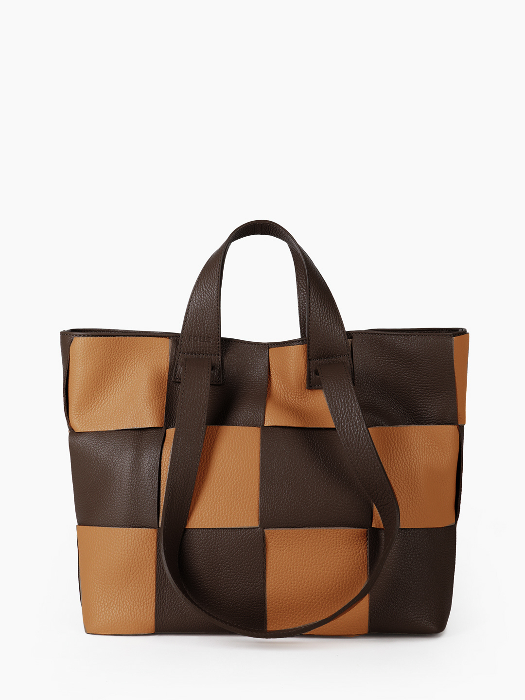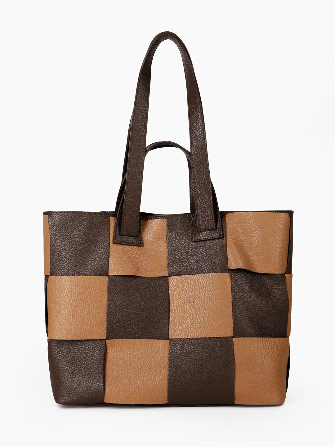 Сумка-шоппер с принтом в шахматную клетку от FOLLE в коричневом оттенке