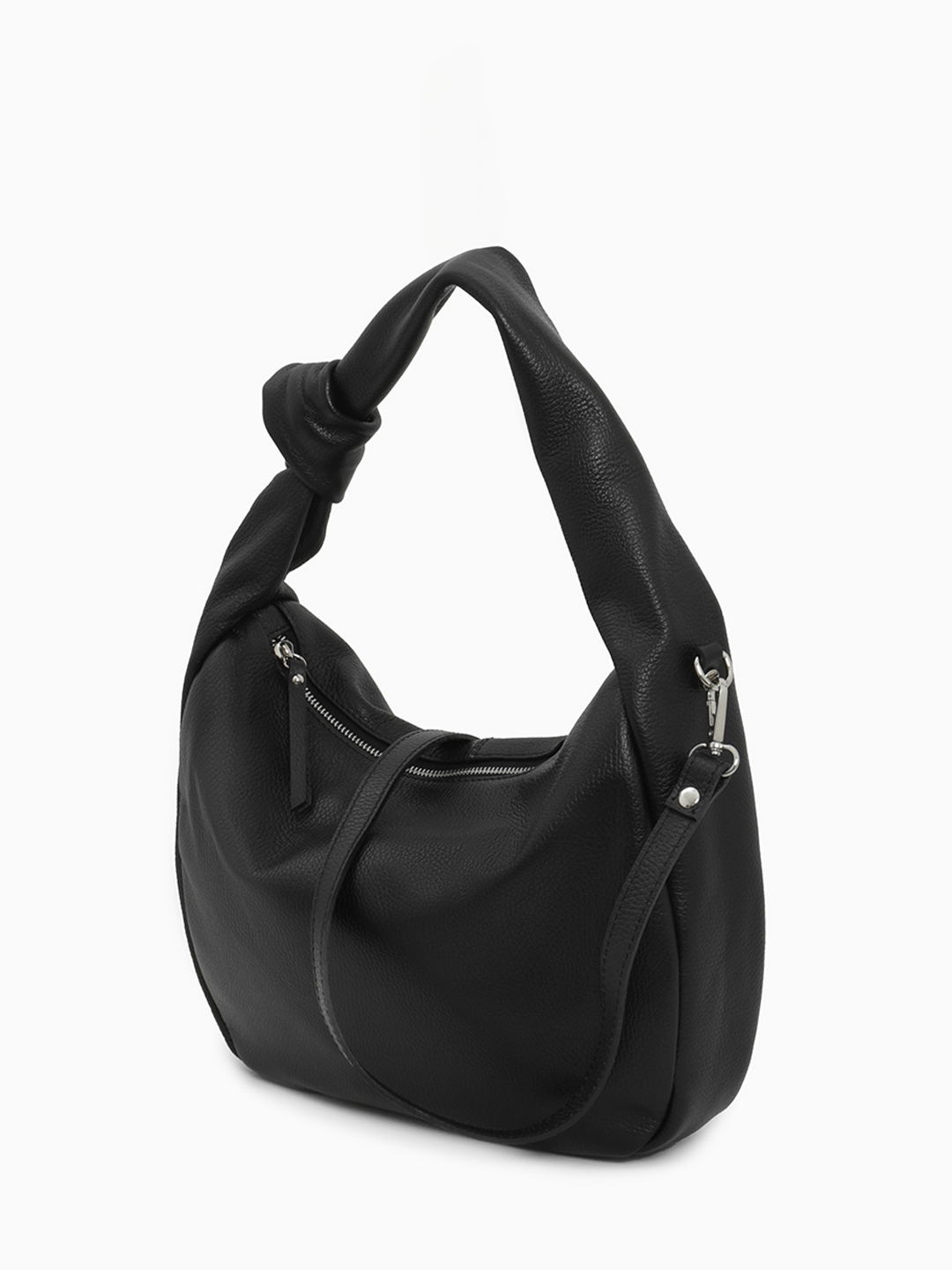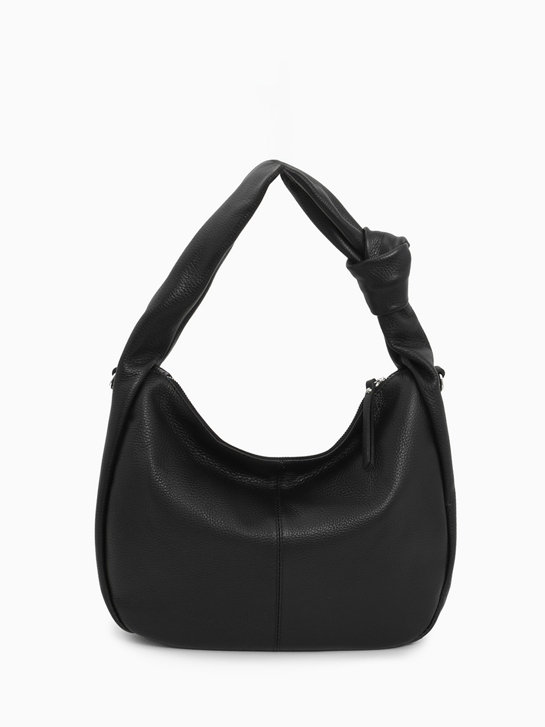 Сумка-хобо с кожаным узлом на ручке от FOLLE в чёрном цвете