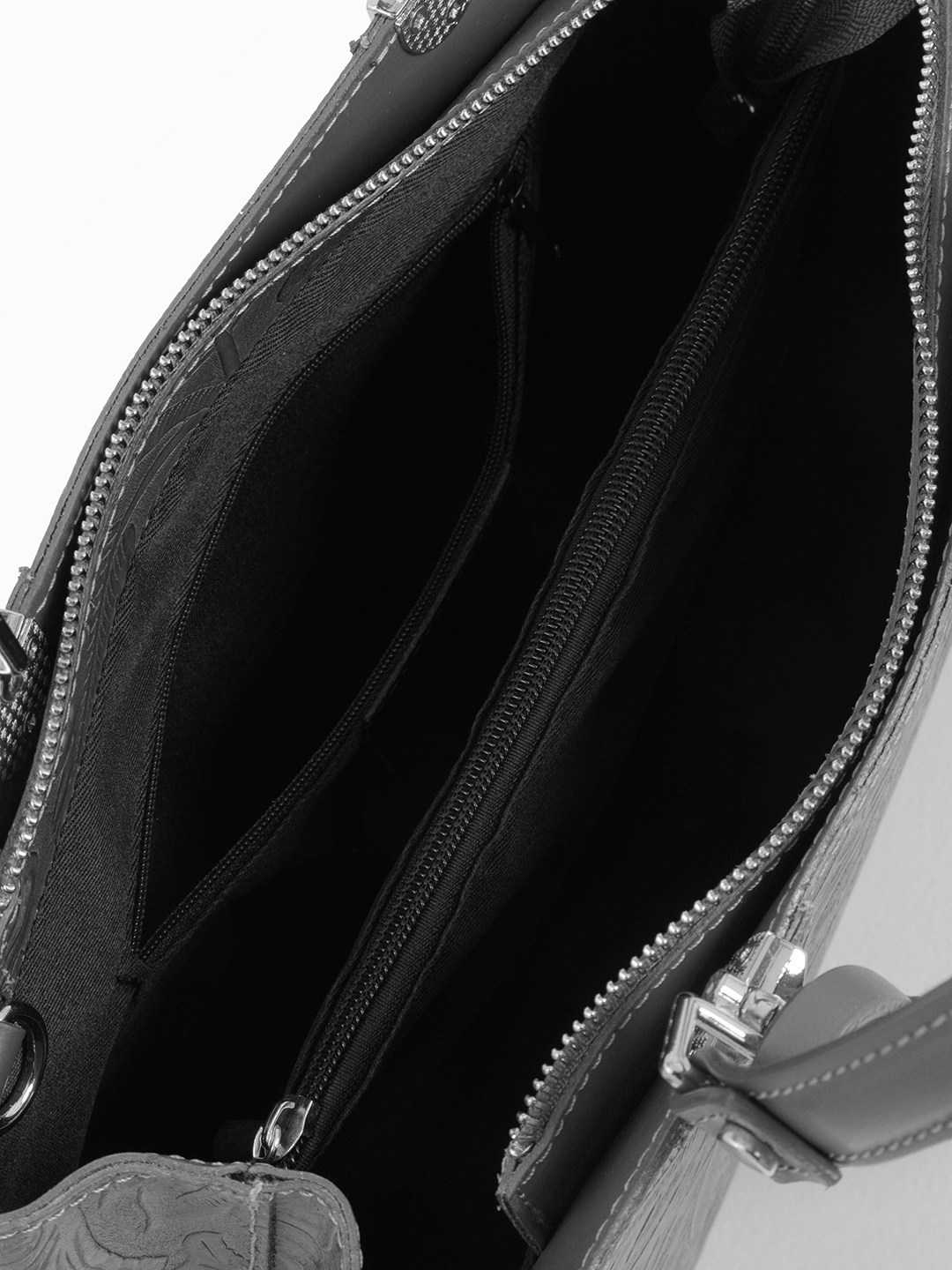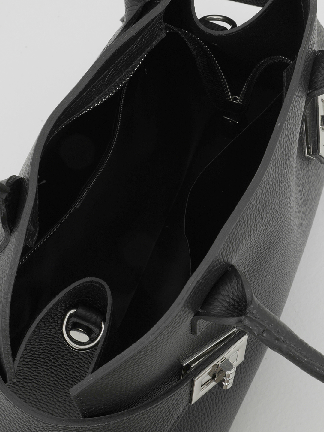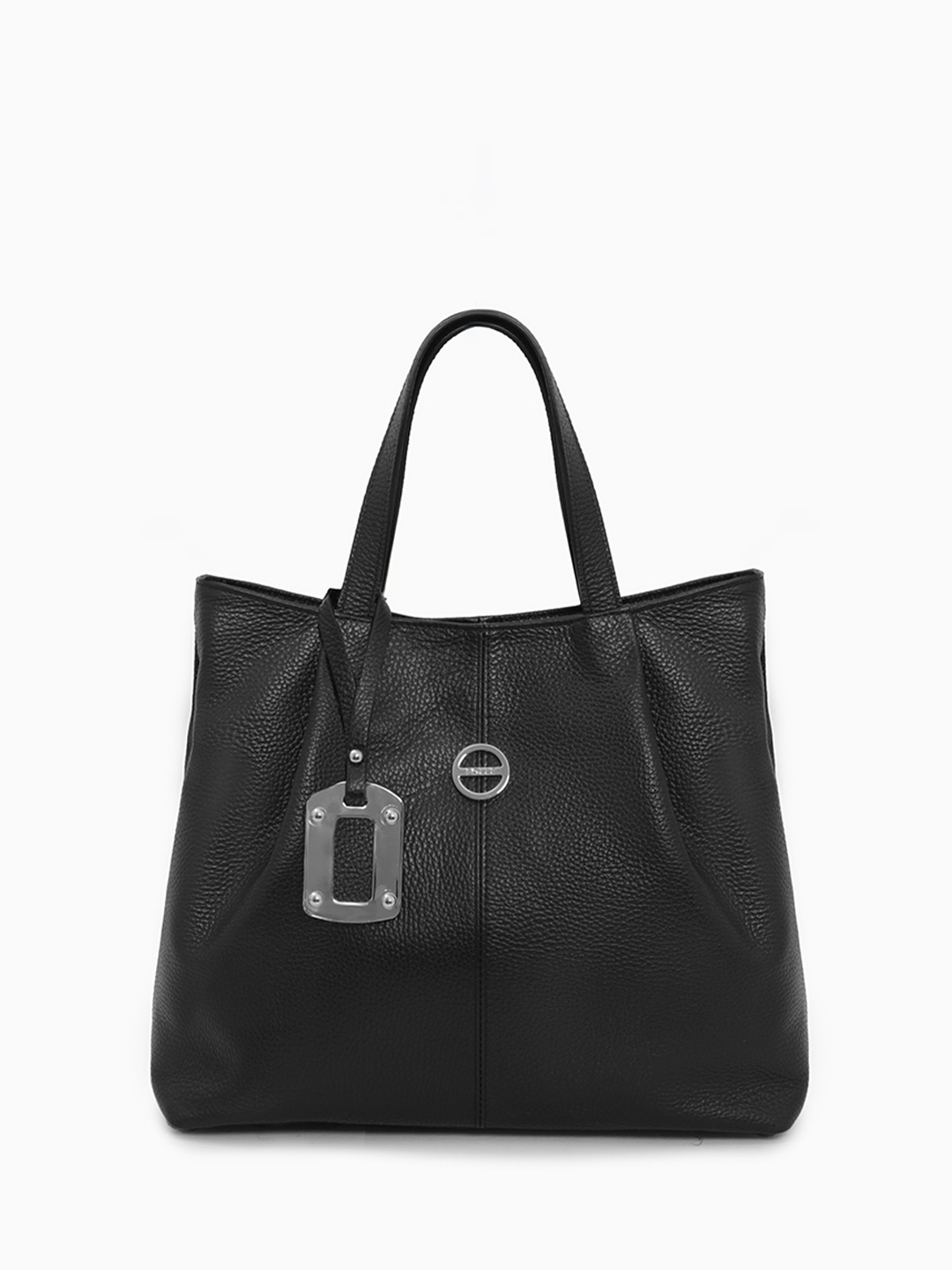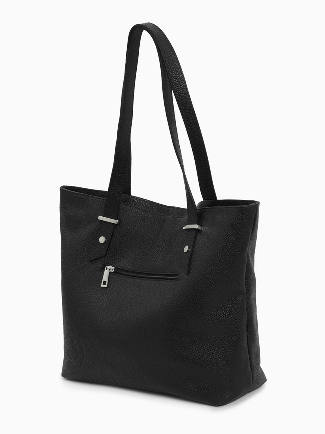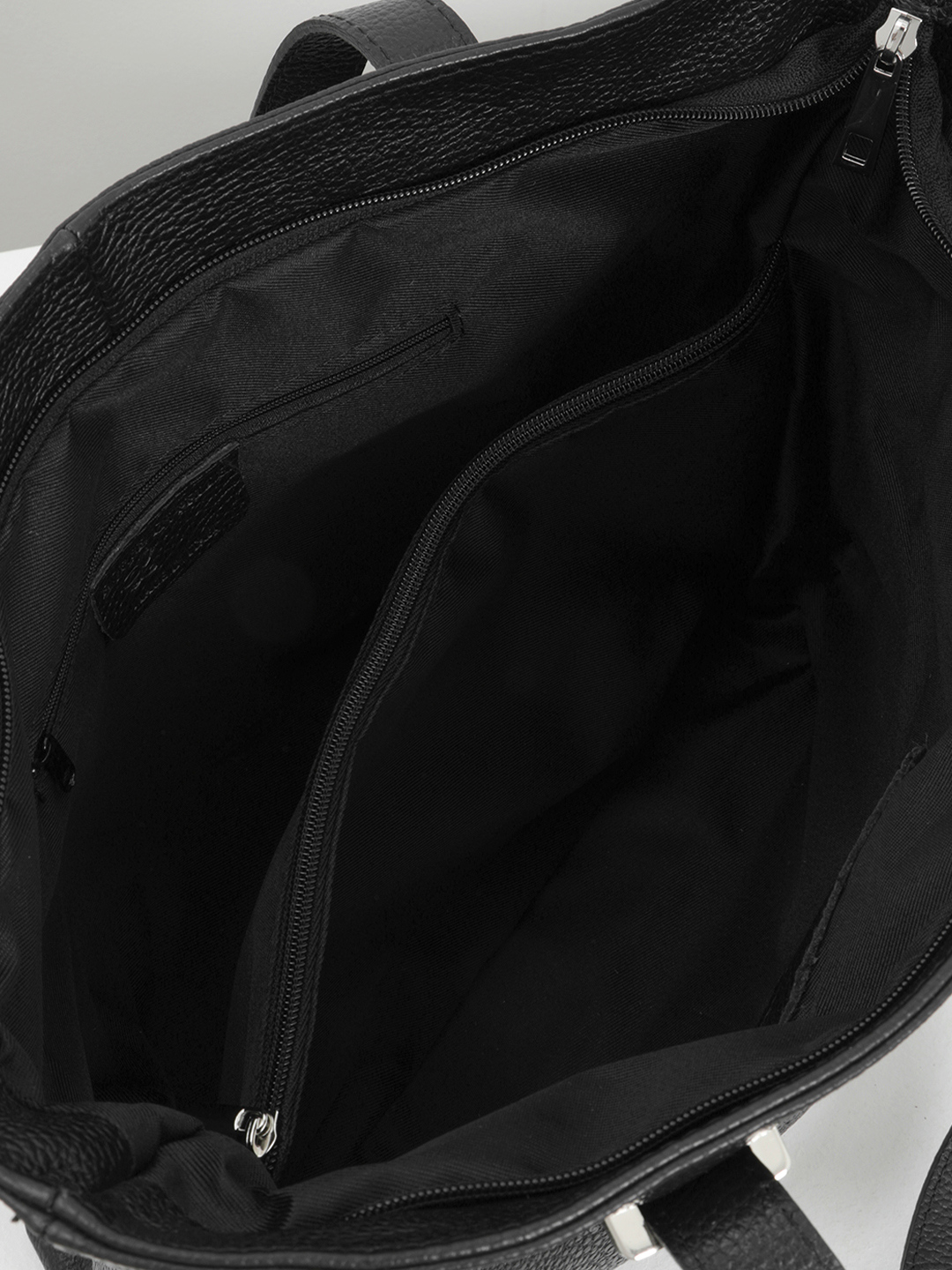 Классический шоппер с серебристой фурнитурой от FOLLE в чёрном цвете