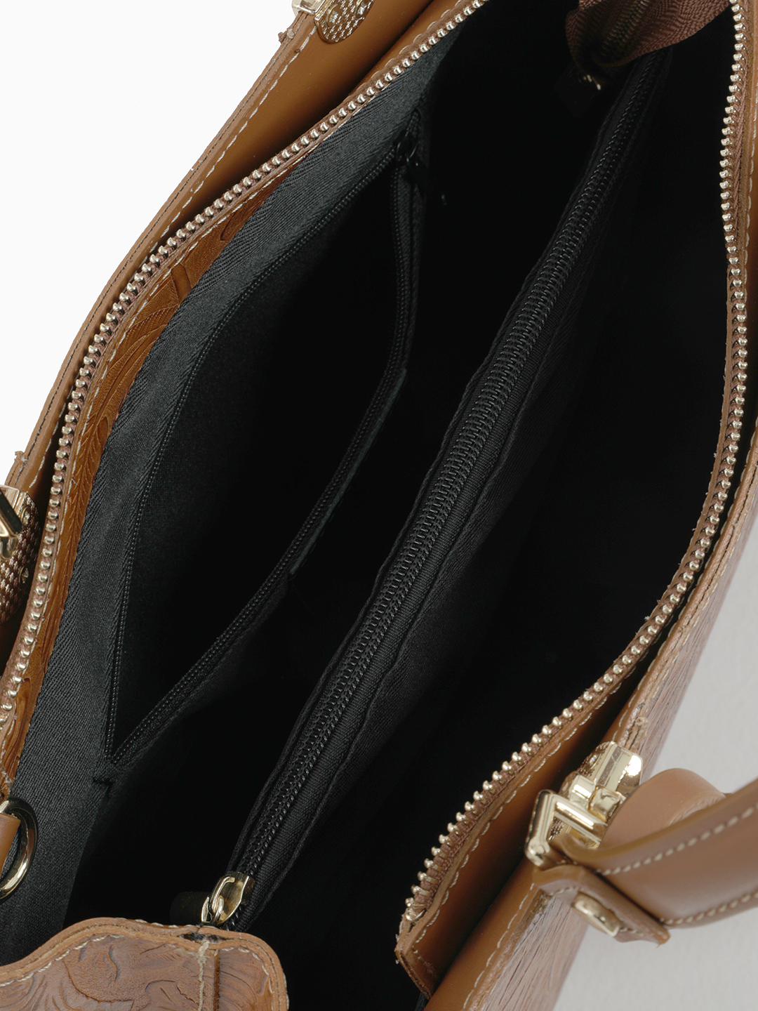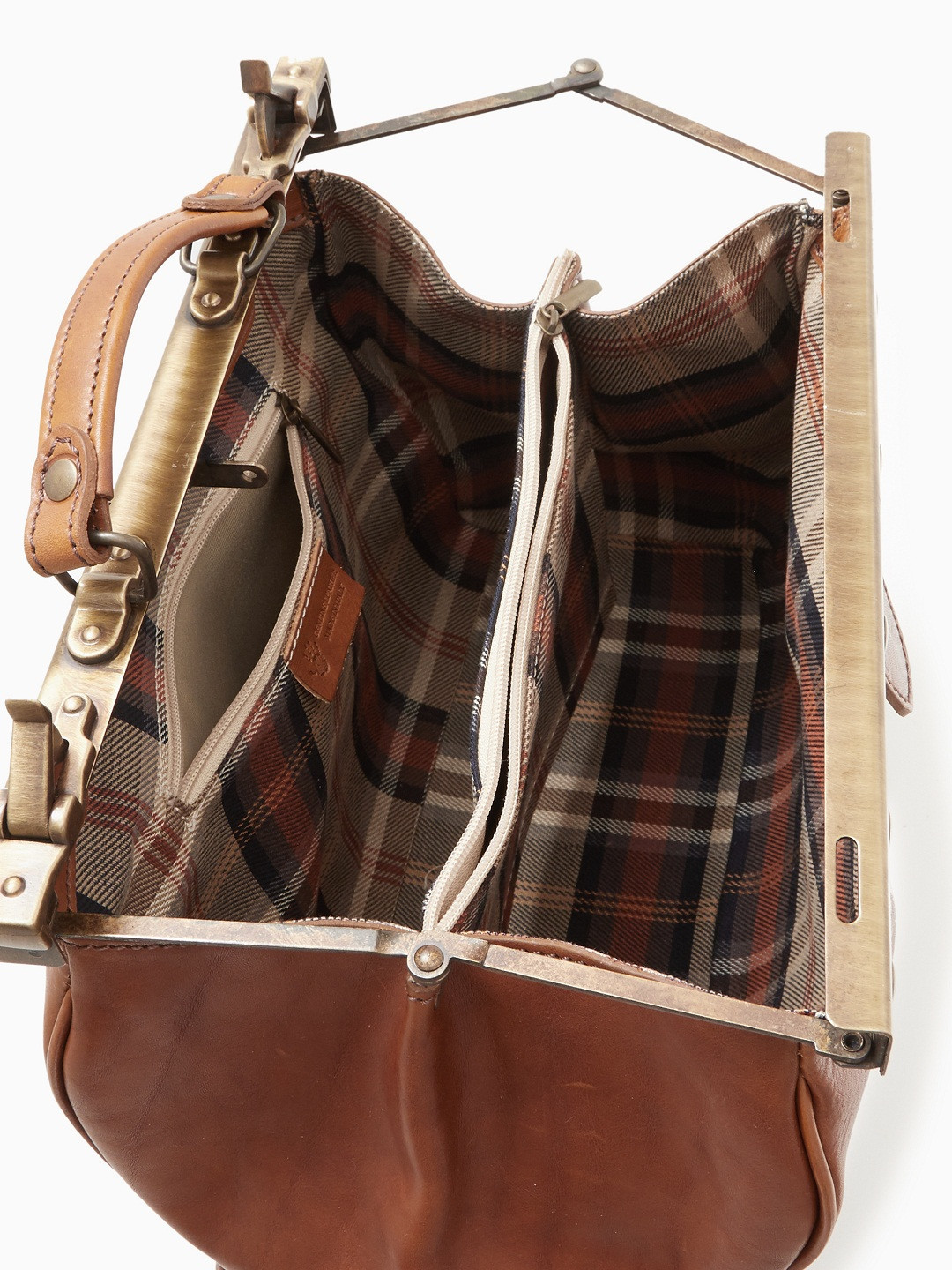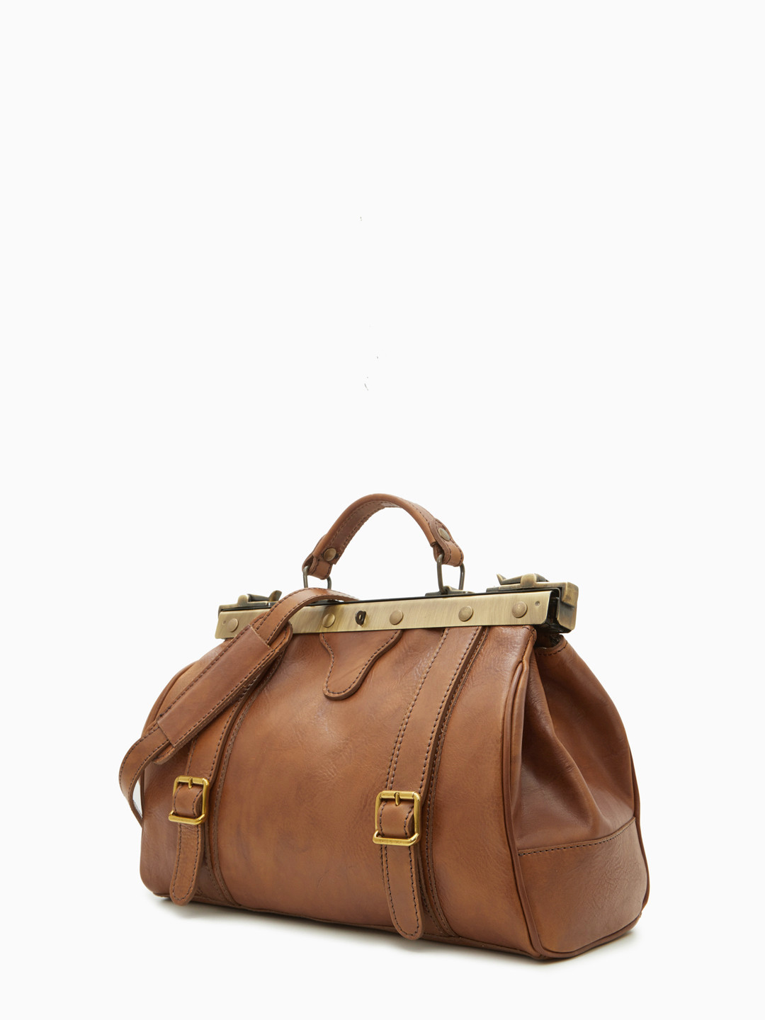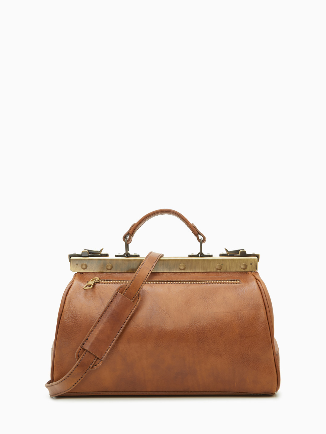 Винтажная сумка-саквояж с фурнитурой под старину от FOLLE в светло-рыжем оттенке