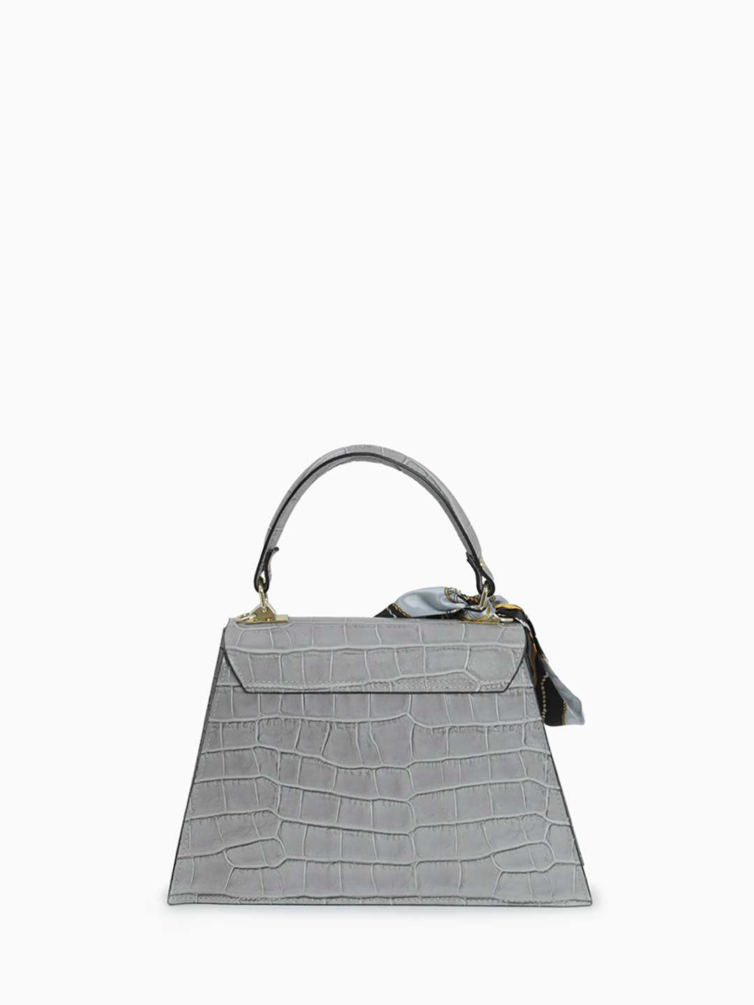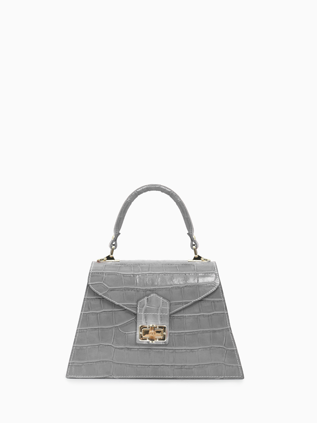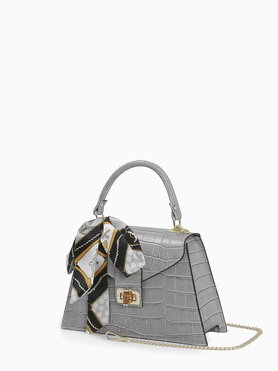 Сумка-сэтчел с поворотной фурнитурой от BE NICE из кожи под крокодила серого оттенка