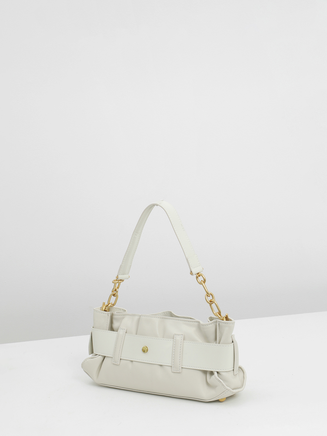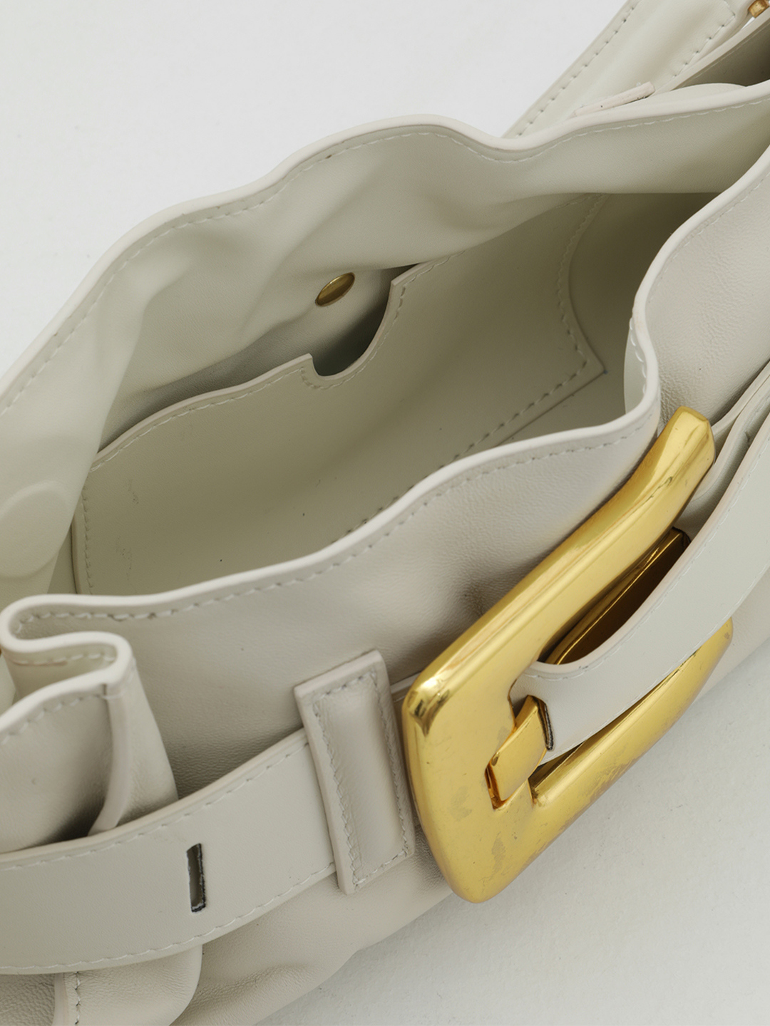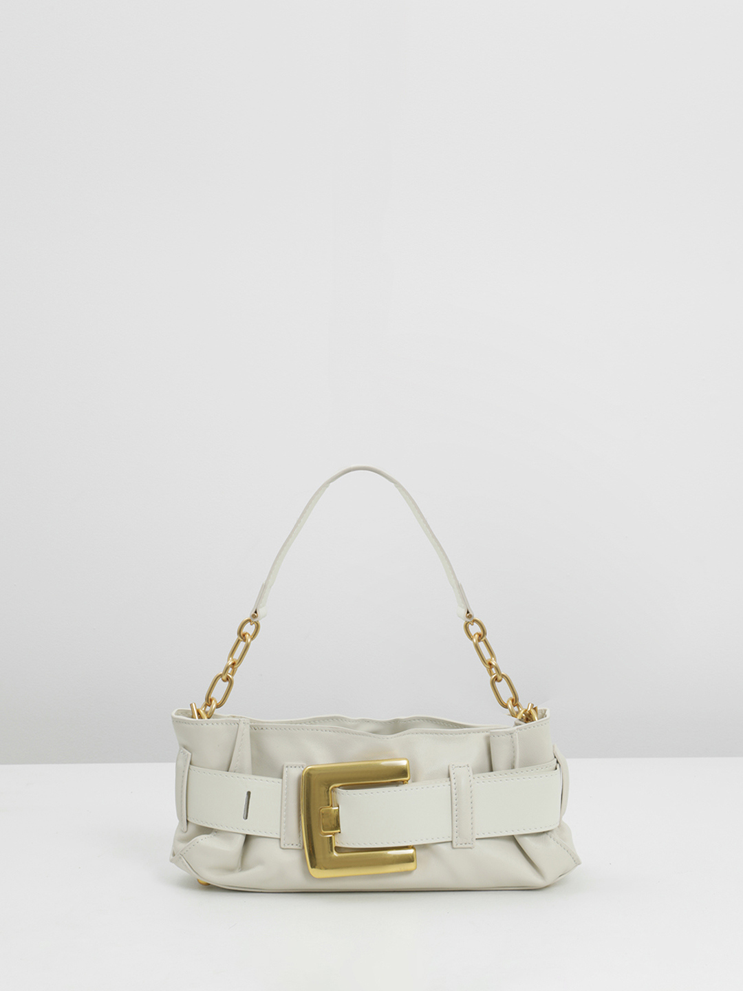 Бежевый багет со складками и широкой пряжкой от IVORY