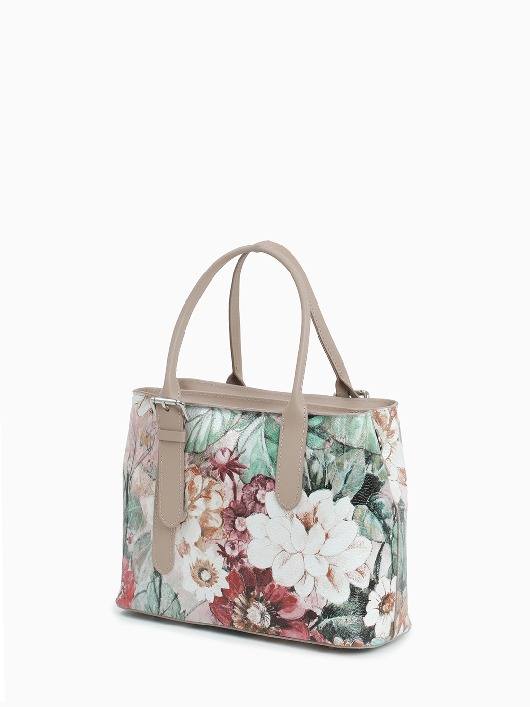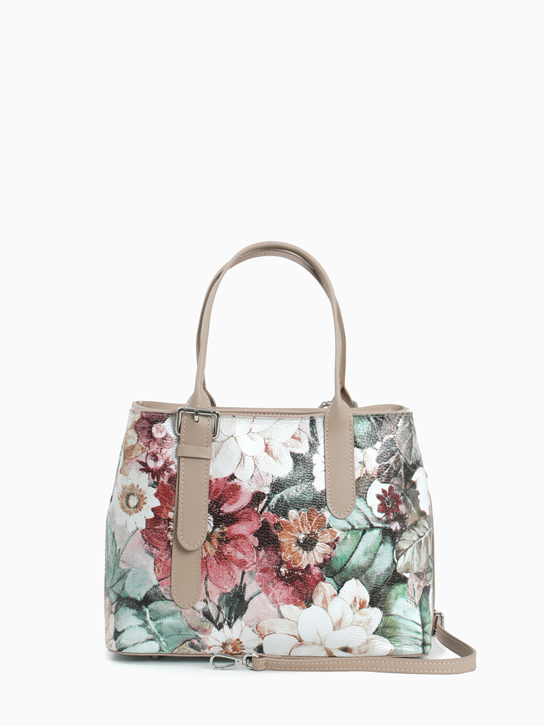 Сумка-тоут с цветочным принтом и ручками бежевого оттенка от Folle