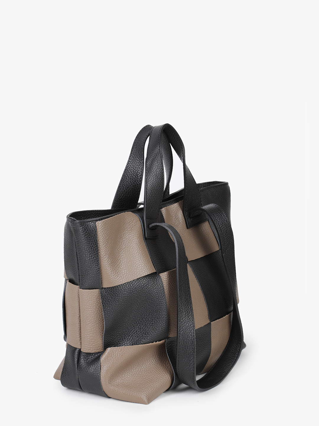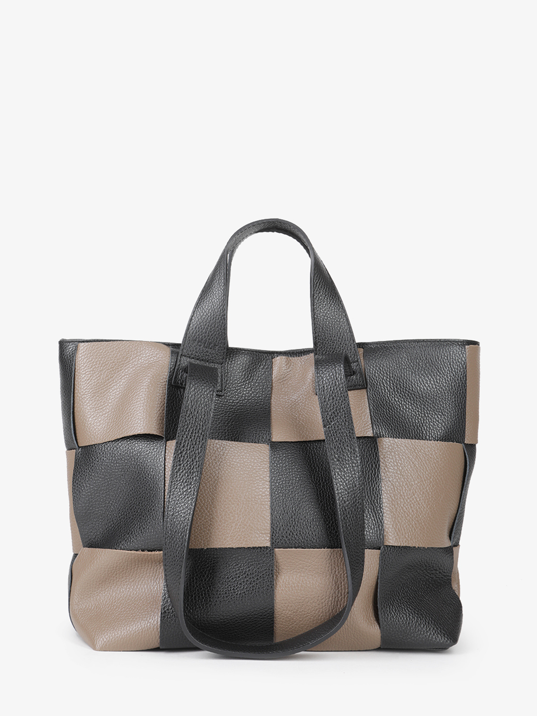 Сумка-шоппер с принтом в шахматную клетку от FOLLE в чёрном цвете