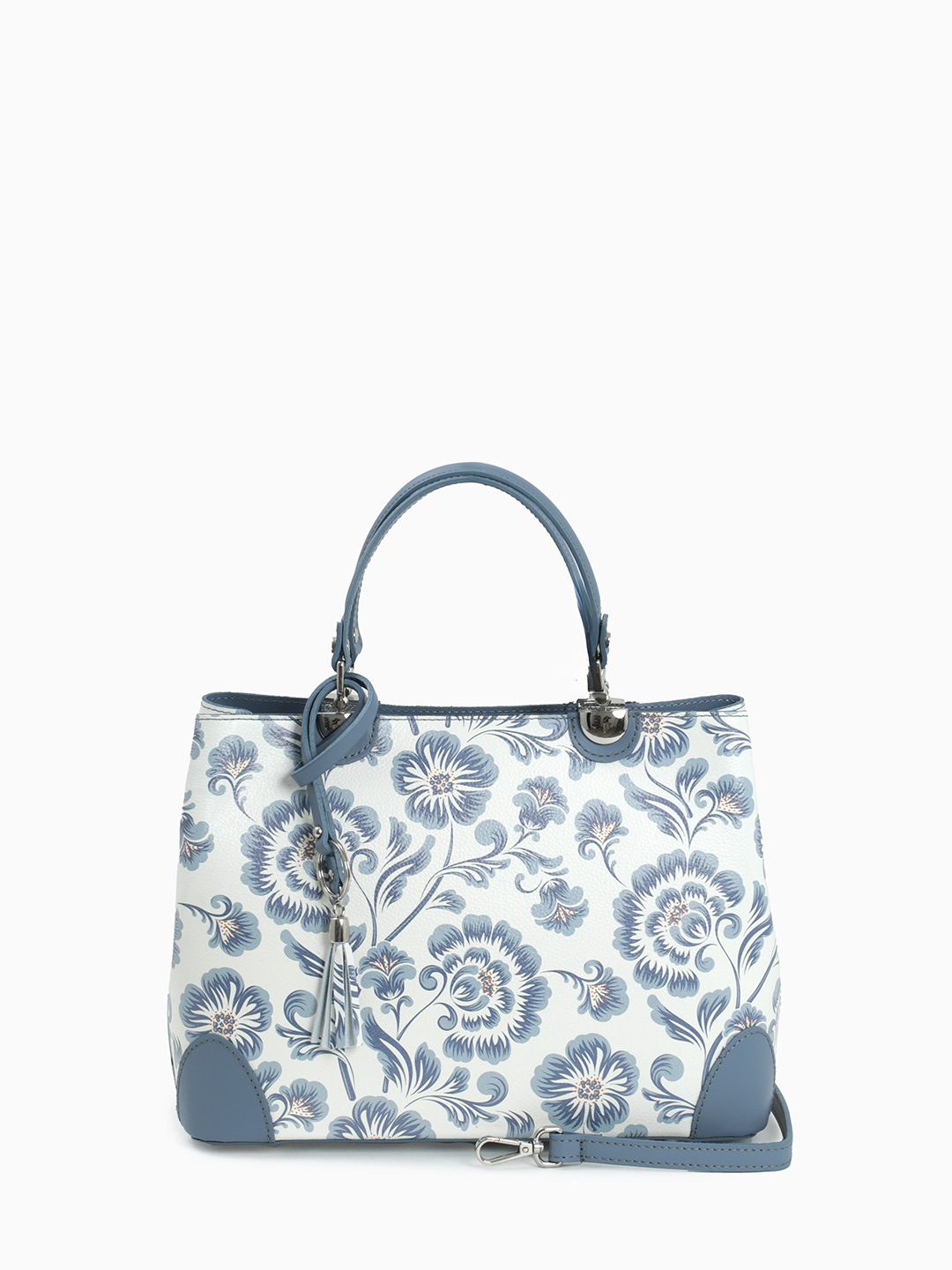 Сумка-тоут с цветочным принтом и кисточкой в голубом оттенке от Folle