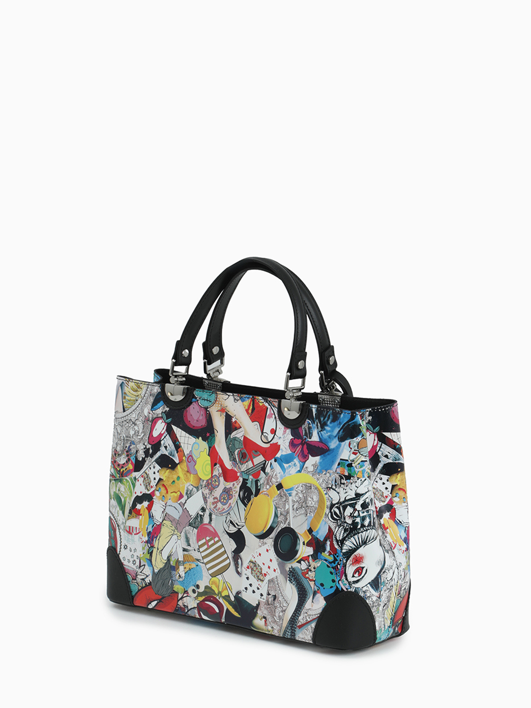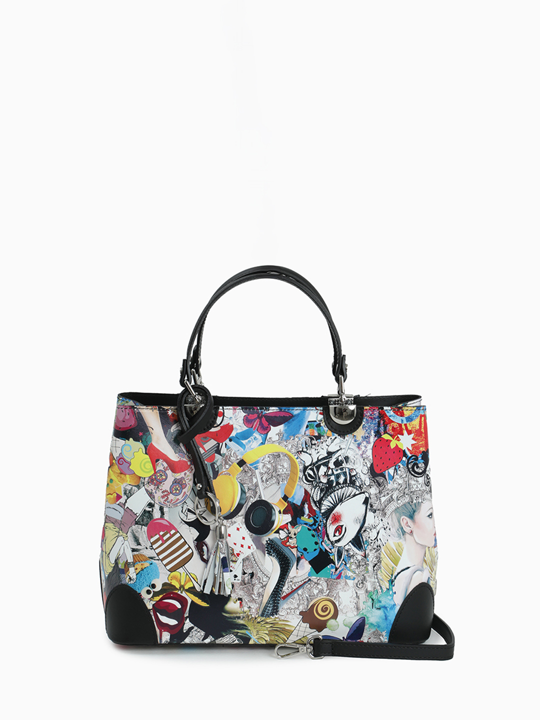 Сумка-тоут чёрного цвета с ярким принтом от Folle