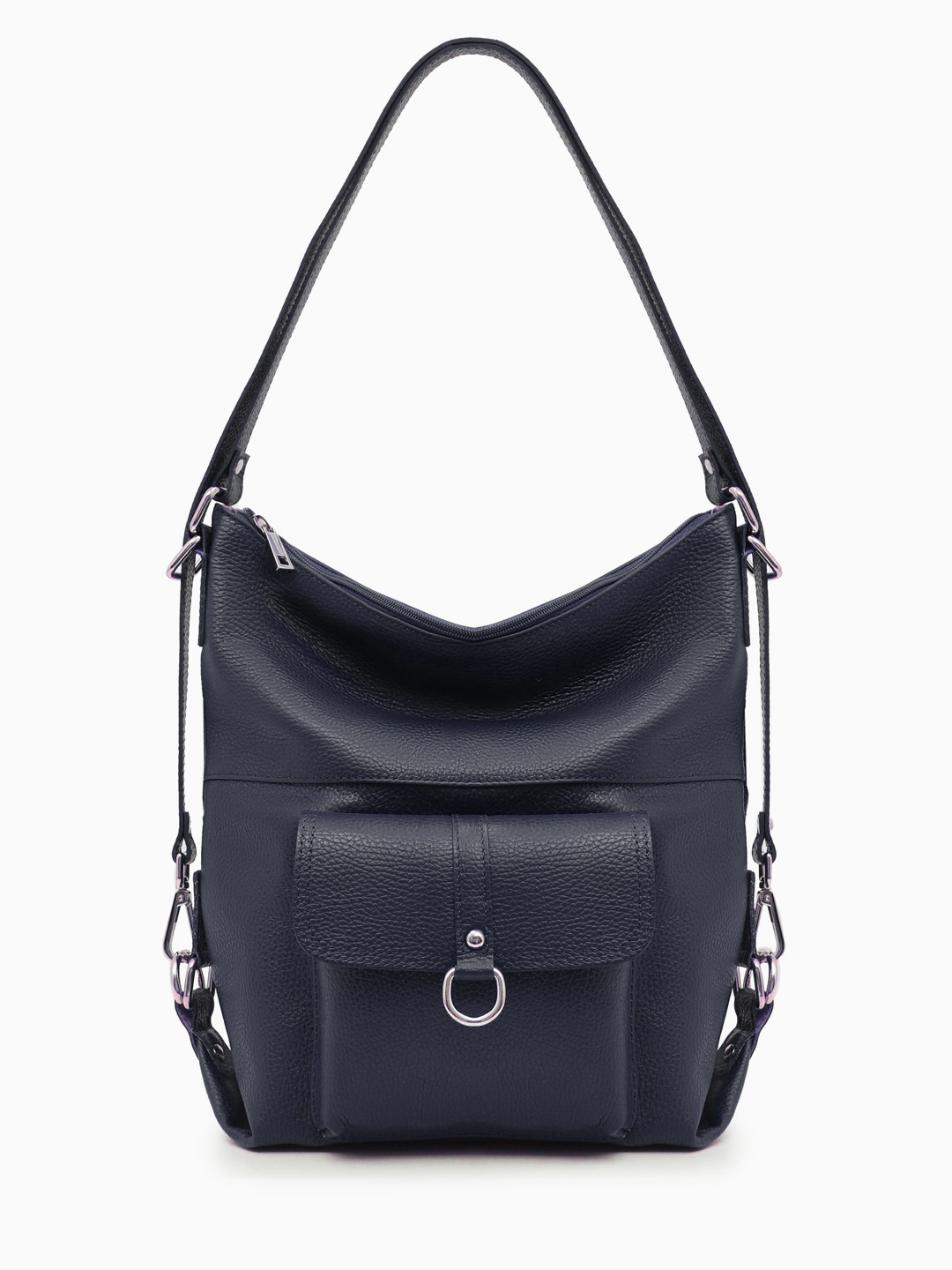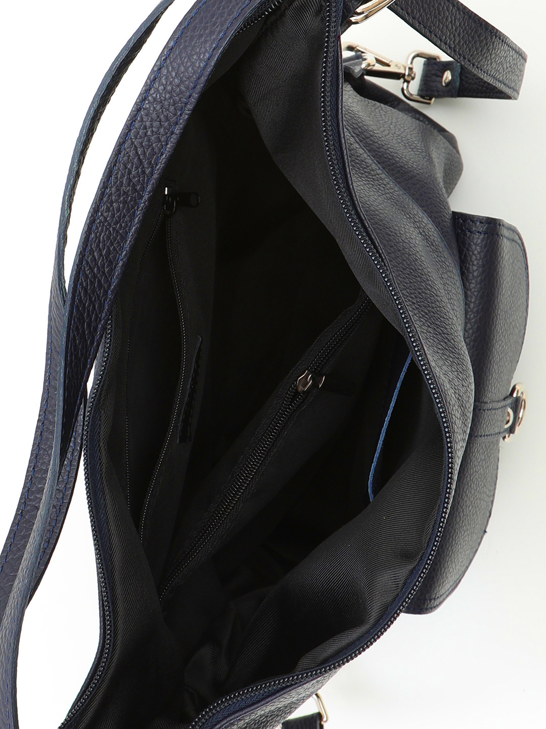 Синяя сумка-рюкзак с пряжкой на внешнем кармане от FOLLE