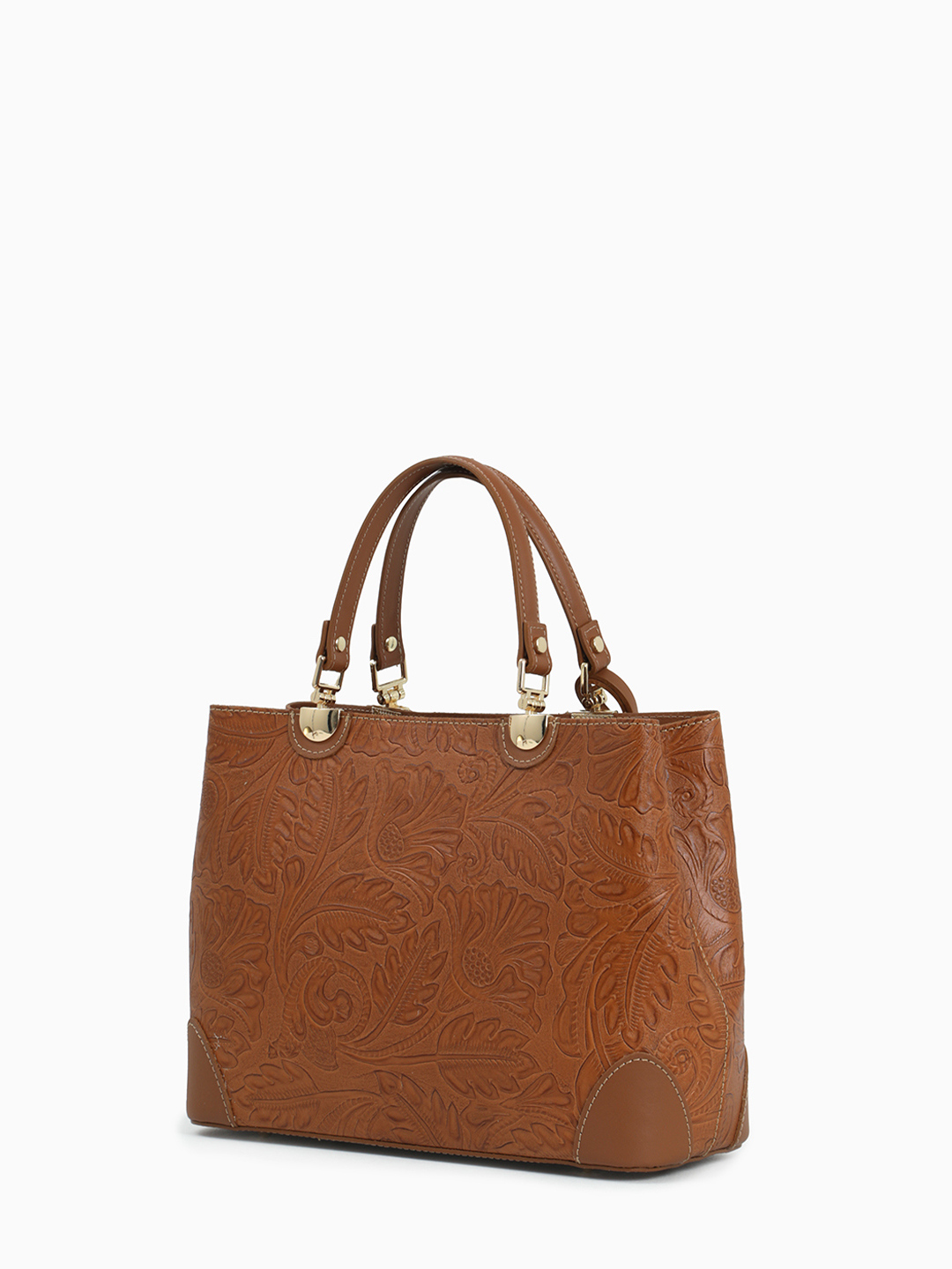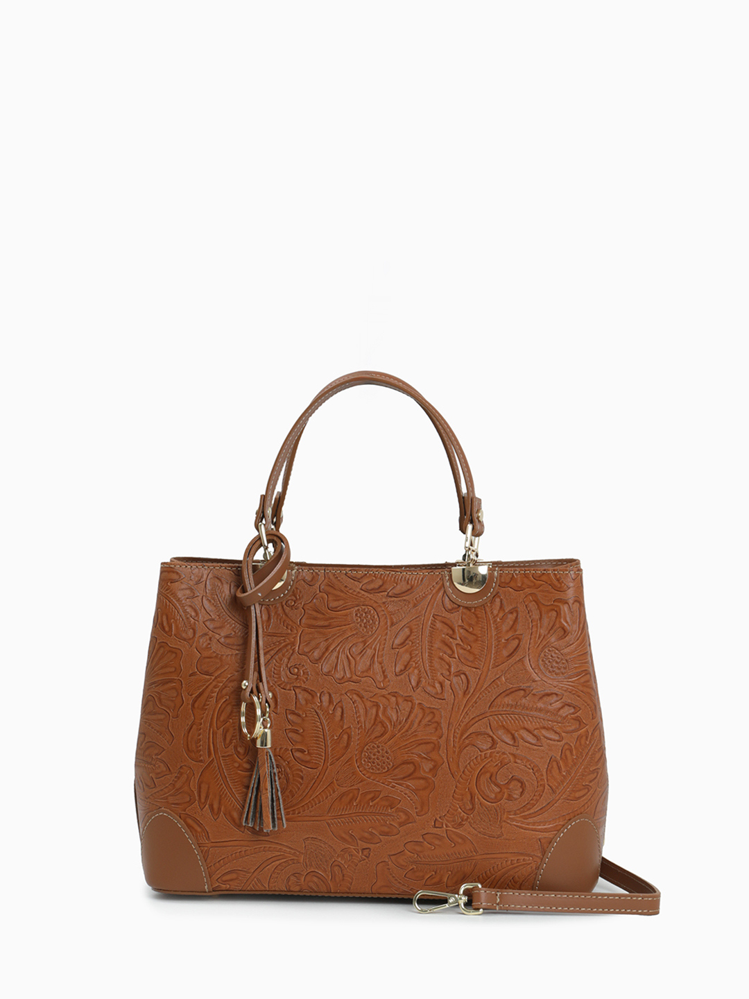 Сумка-тоут с цветочным штампом и длинным ремнём от folle в рыжем цвете