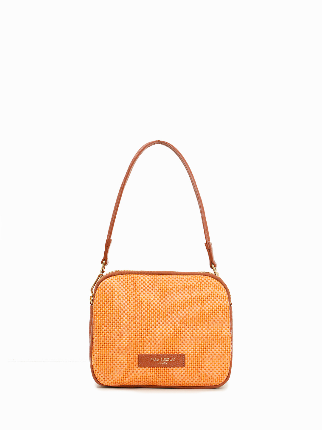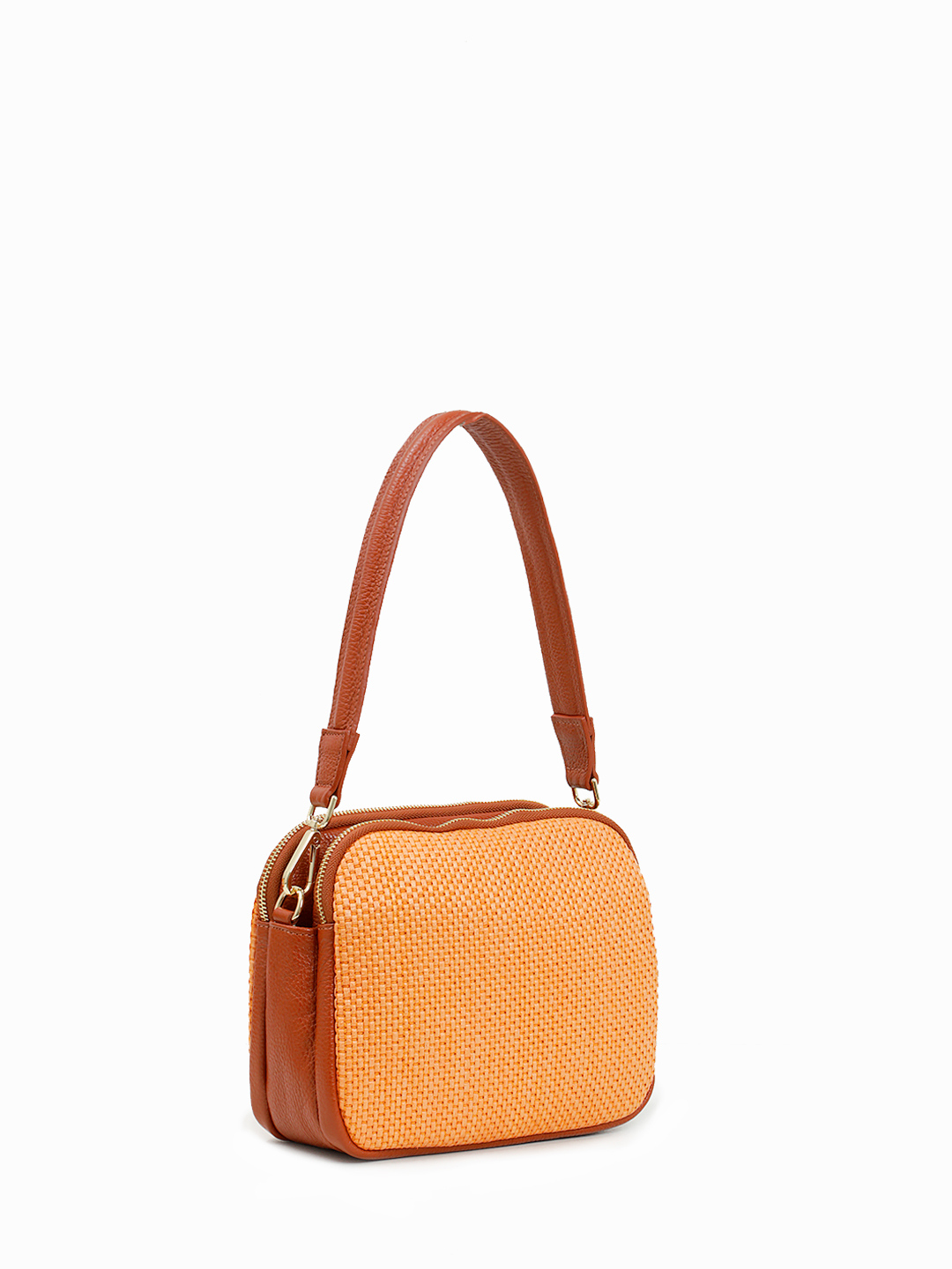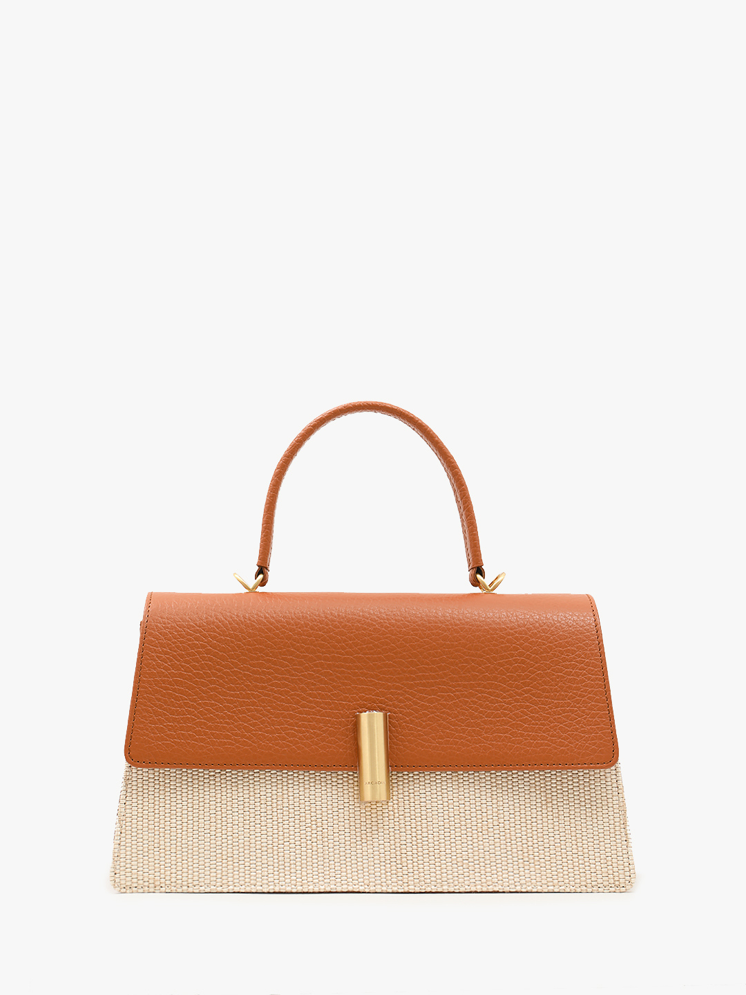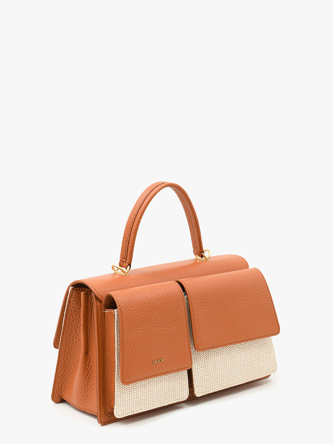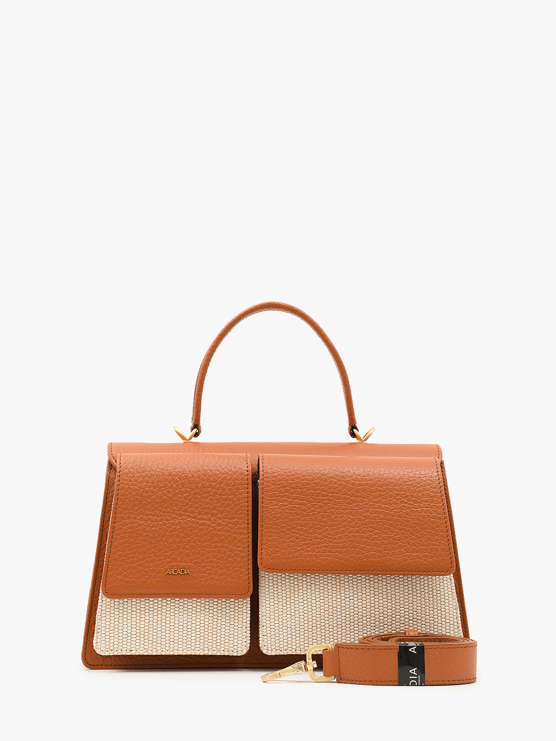 Сумка-портфель с цилиндрическим замком от ARCADIA из рафии и натуральной кожи рыжего оттенка