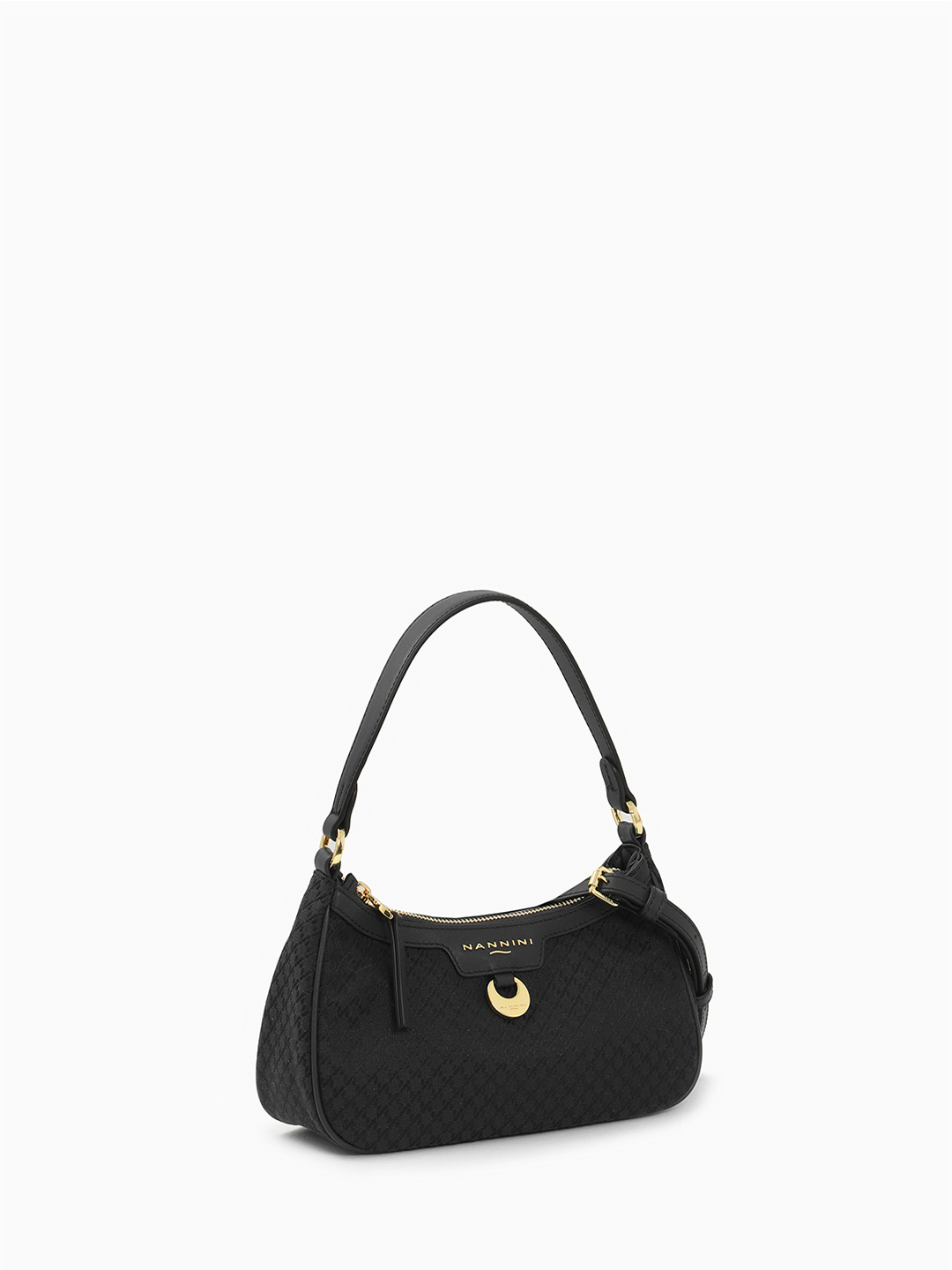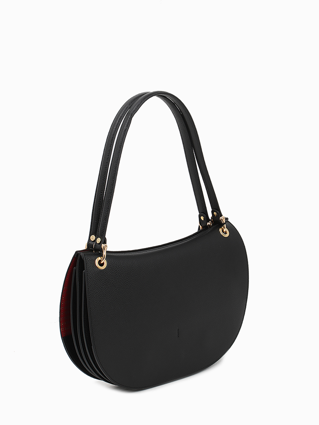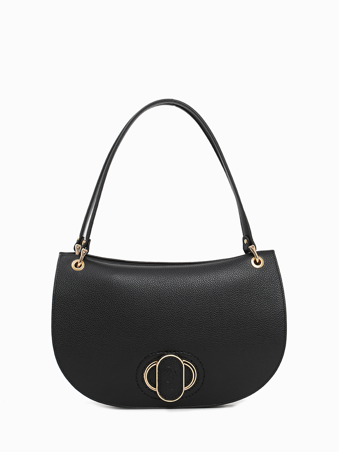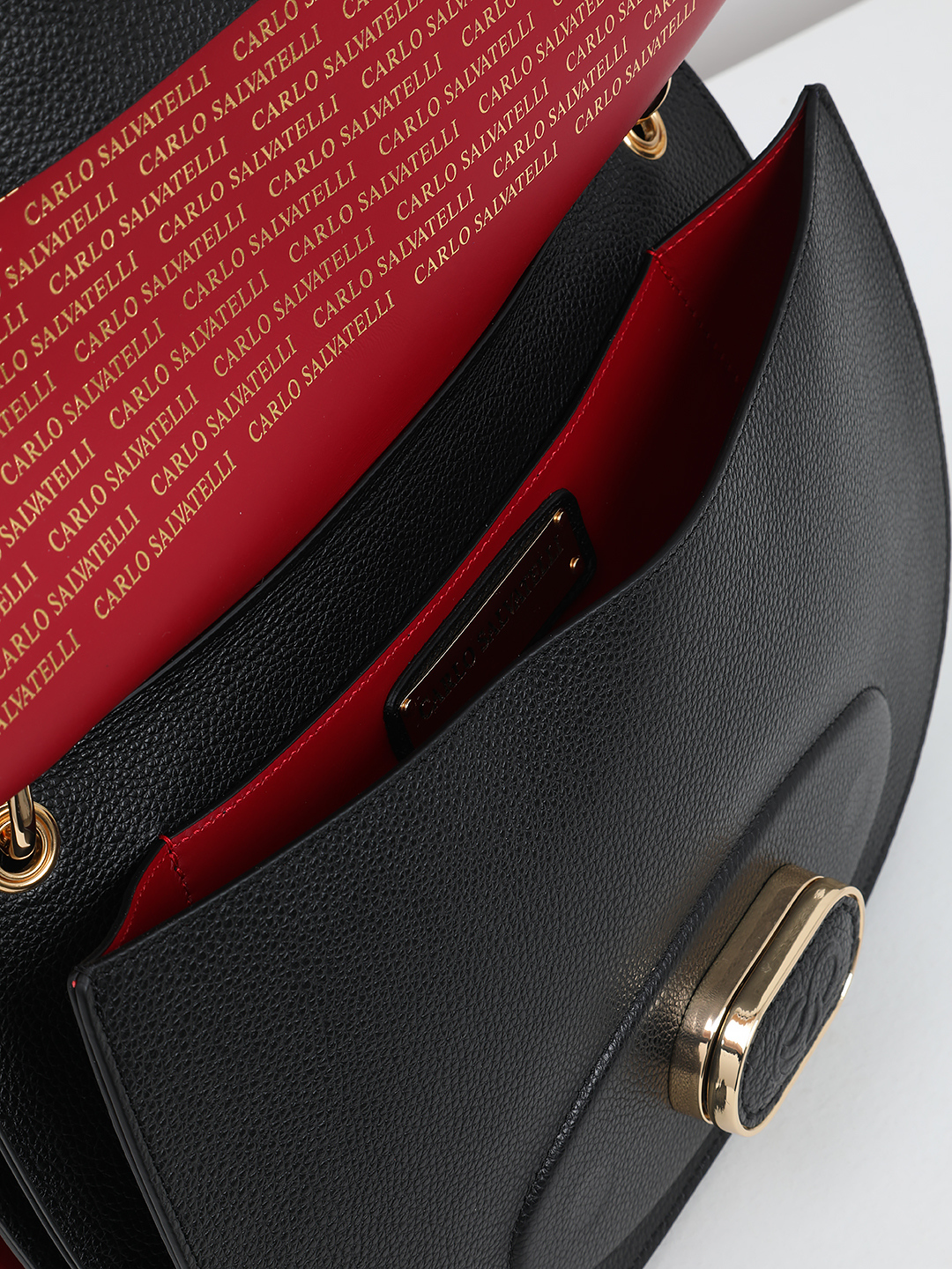Полукруглая сумка с металлическим внутренним штампом Carlo Salvatelli в чёрном цвете