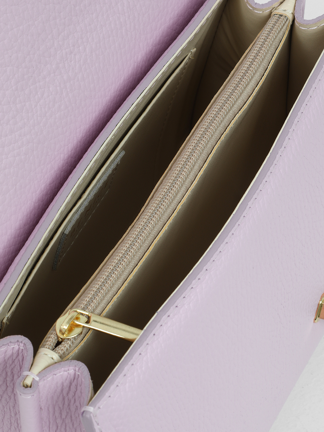 Сумка-сэтчел с треугольным клапаном от BE NICE из натуральной кожи лавандового цвета iris