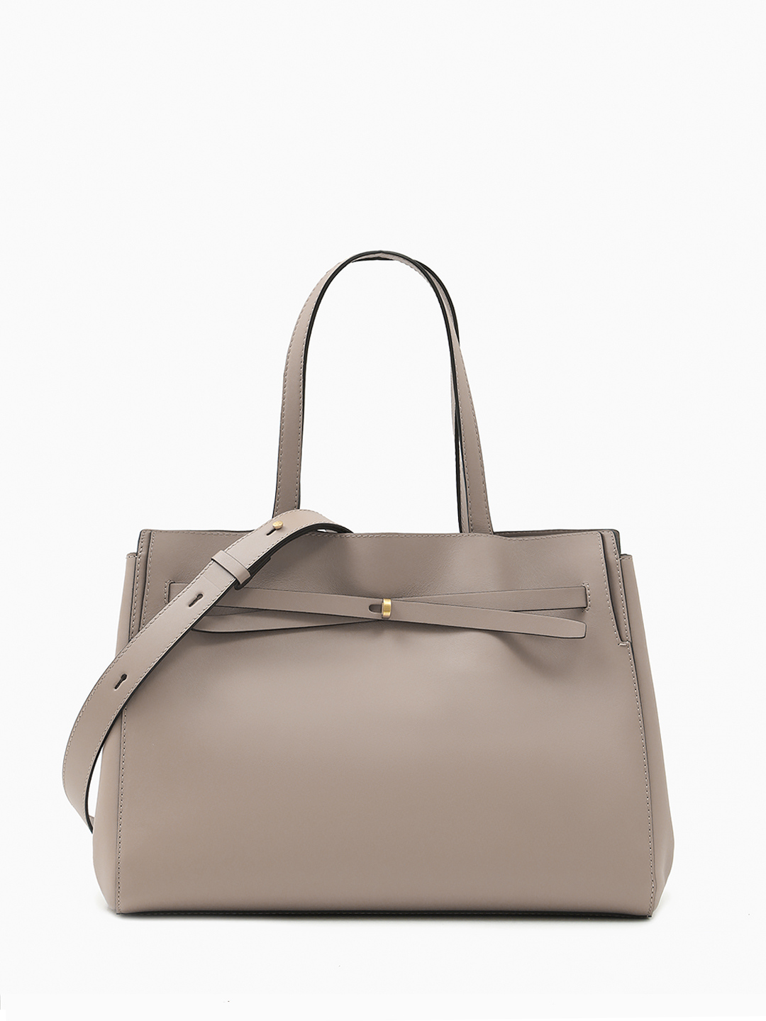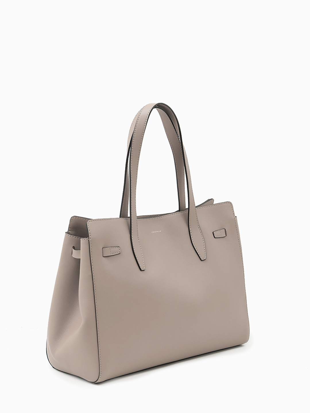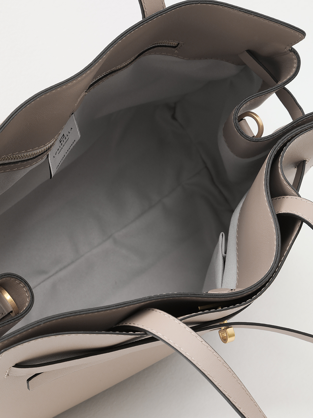 Сумка-тоут с золотистой поворотной фурнитурой от Loristella оттенка тауп